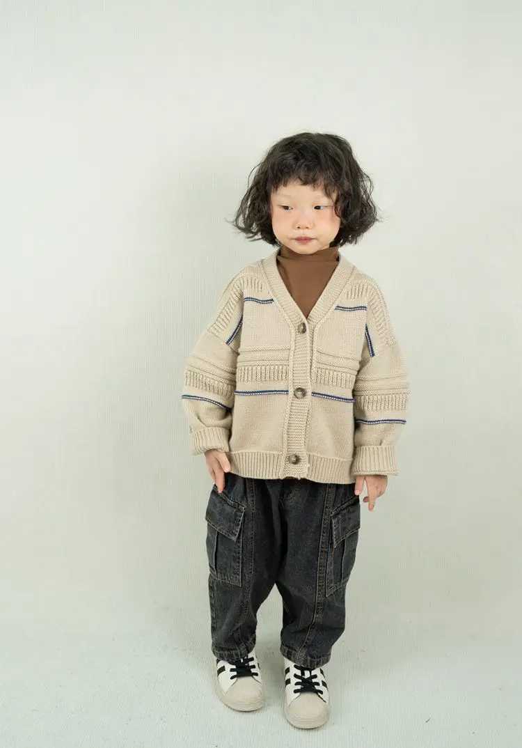 キッズ用のデニムカーゴロングパンツです。実用的なポケットが特徴のカーゴデザインで、トレンド感と機能性を兼ね備えたアイテムです。ゆったりとしたシルエットが動きやすさをサポートし、アクティブな子どもたちにぴったりです。丈夫なデニム素材を使用しており、日常の遊びやお出かけに適した耐久性があります。カジュアルなスタイルはもちろん、トップスを選ばずさまざまなコーディネートに活用可能です。おしゃれさと実用性を両立したパンツで、子どもの毎日をもっと快適に彩ります。