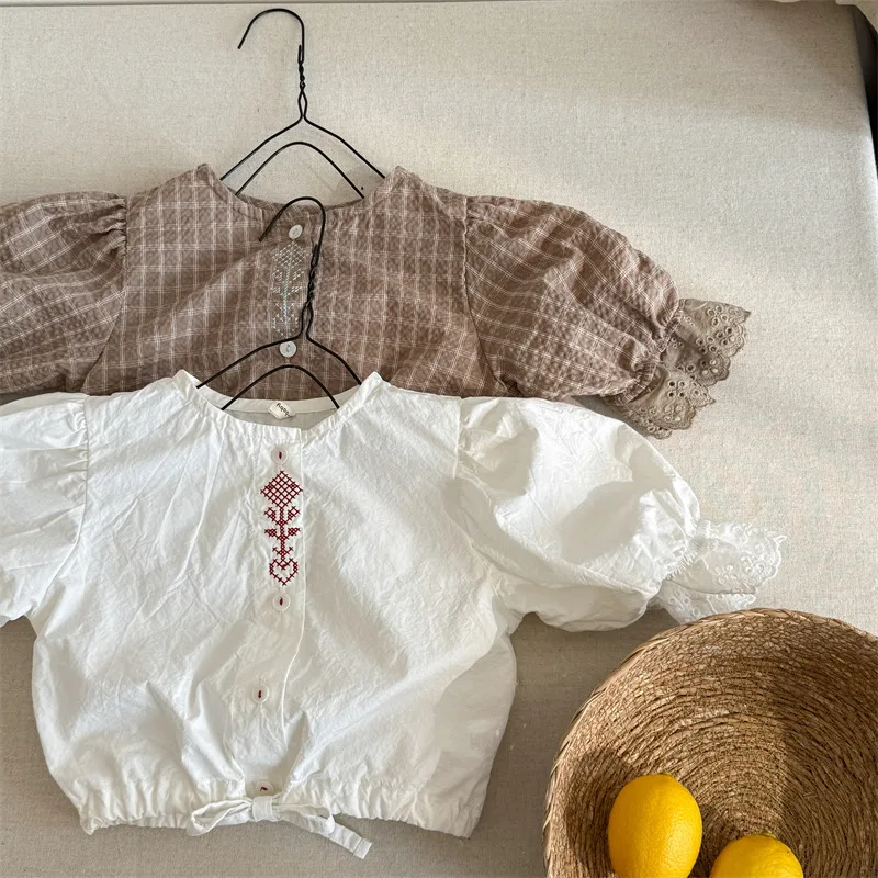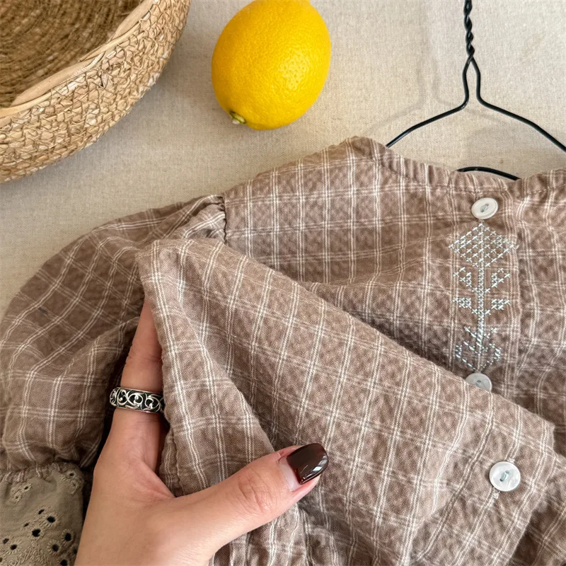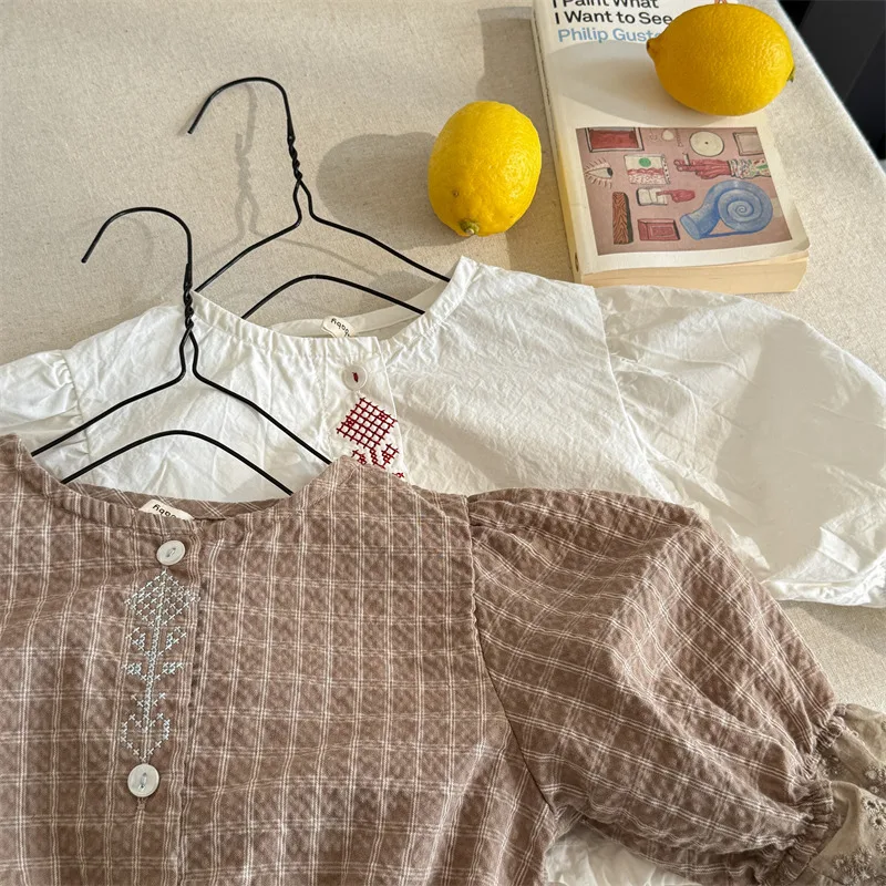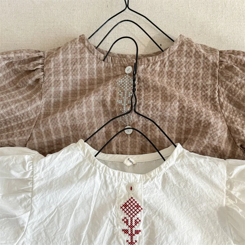 #キッズトップス #パフスリーブ #刺繍ブラウス #チェック柄 #子ども服