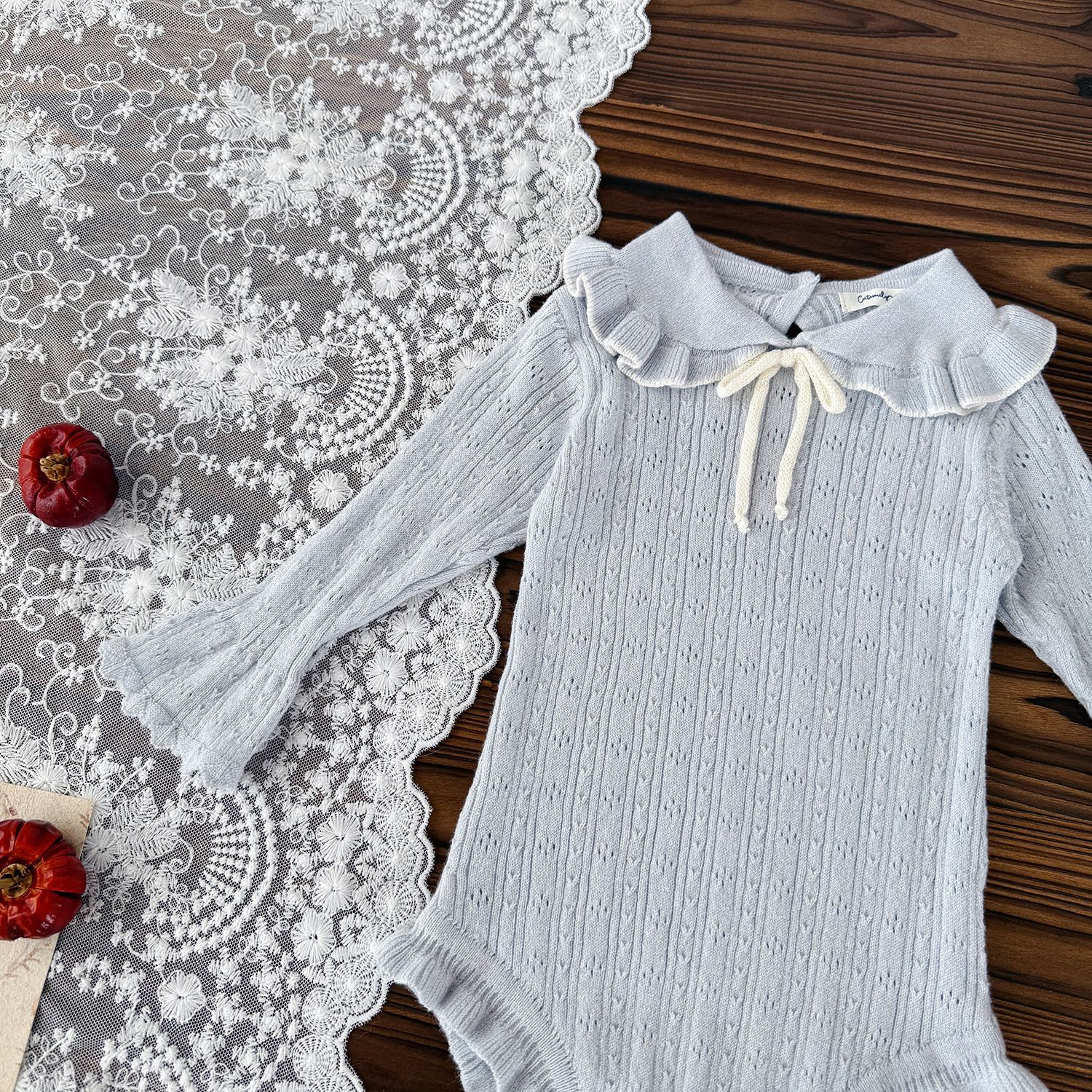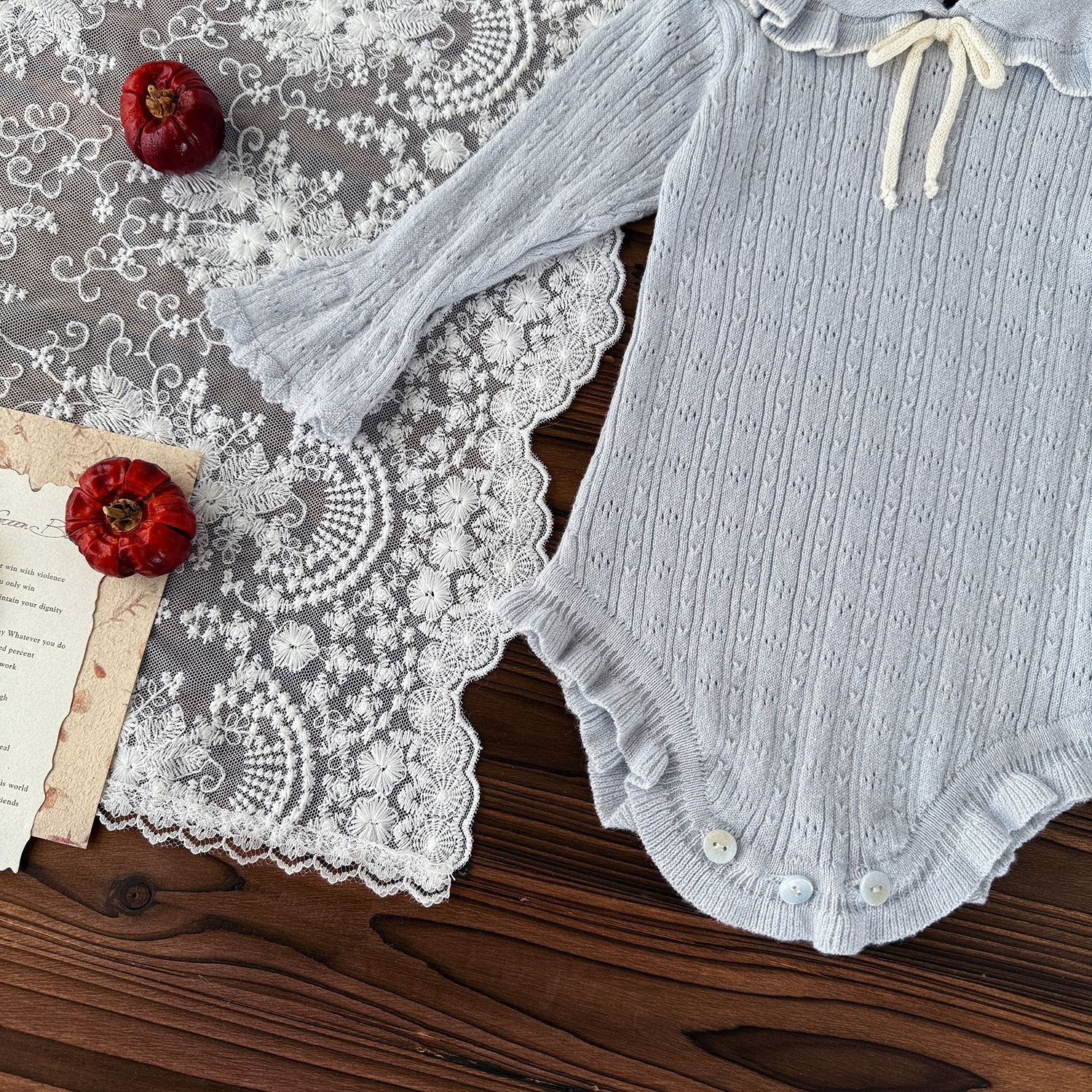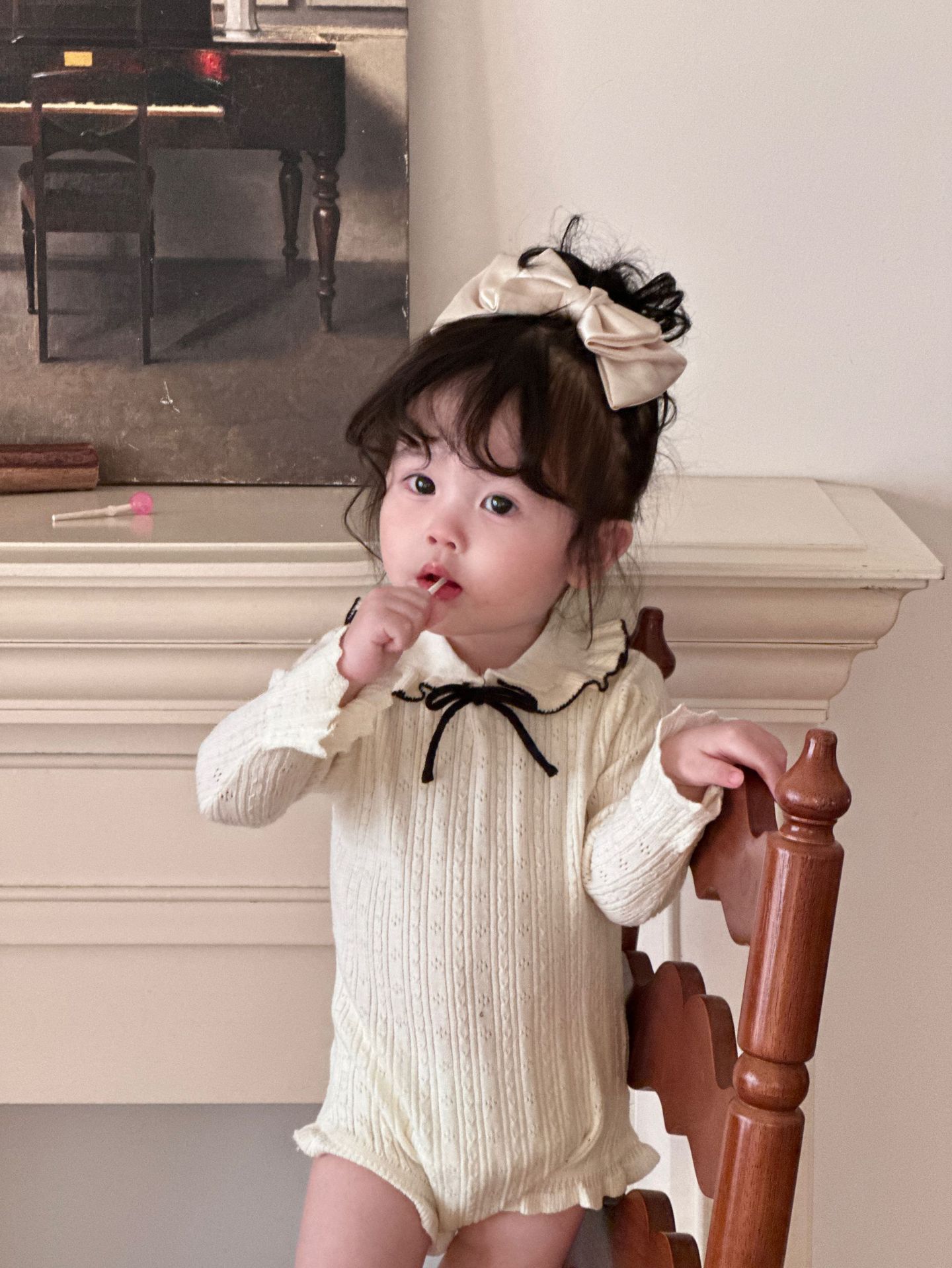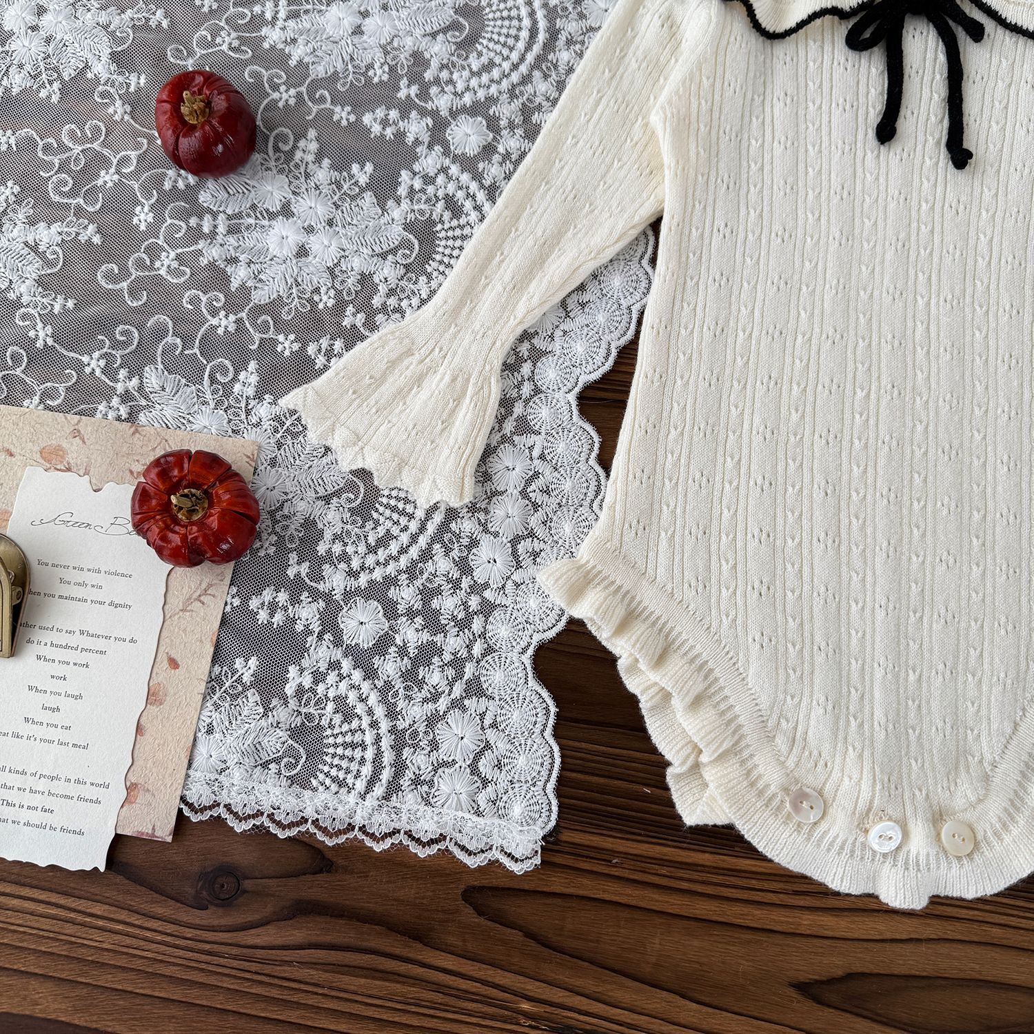 ベビーロンパース フリル襟リボンニット長袖ボディスーツ【mh0009114】