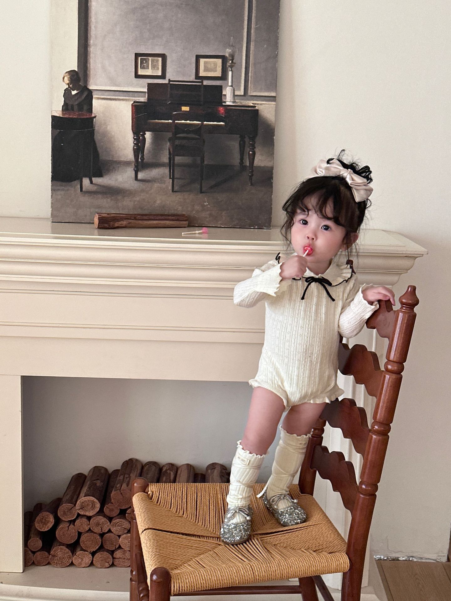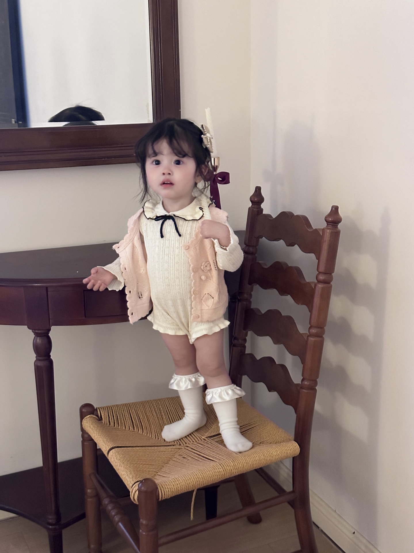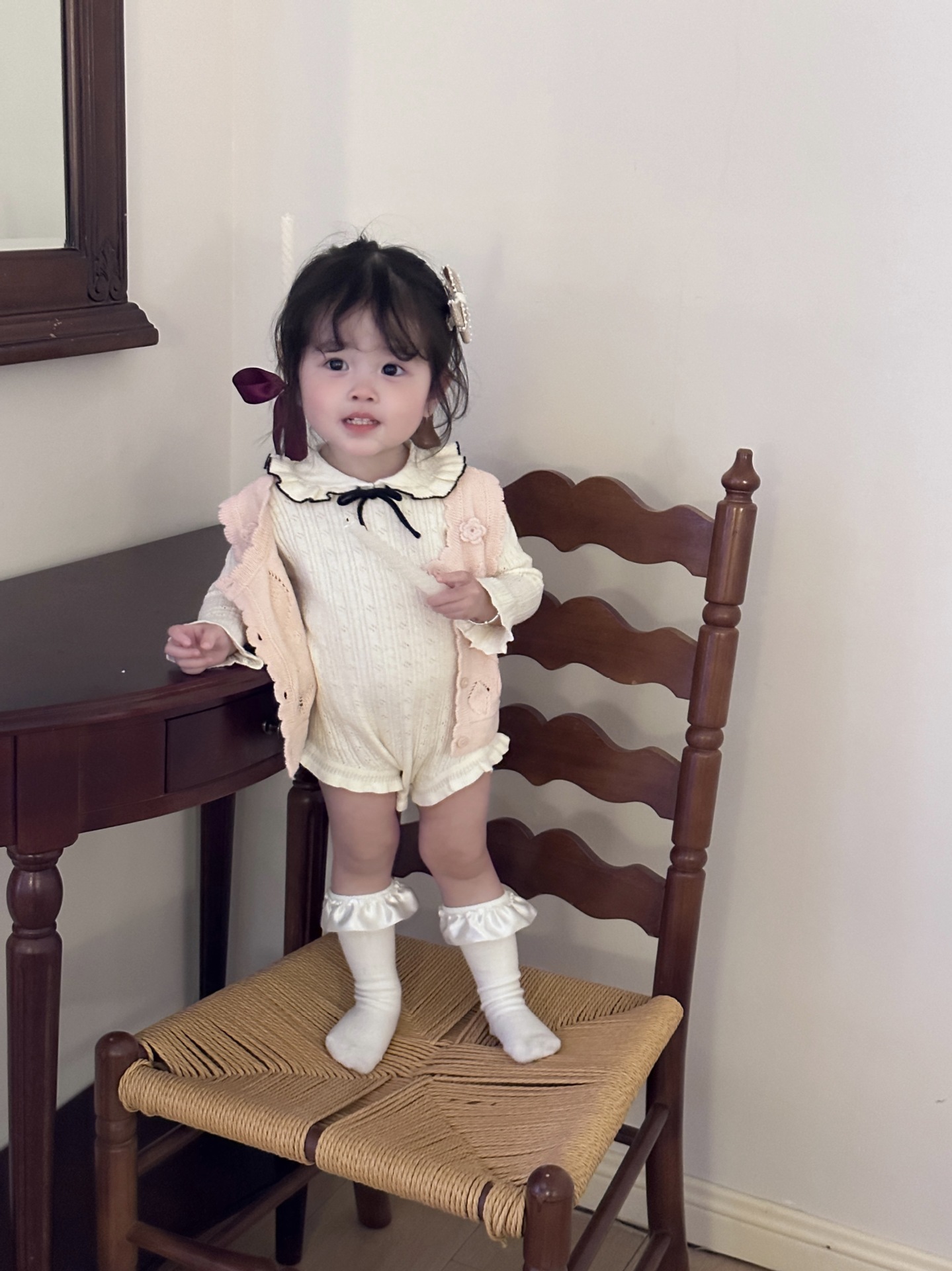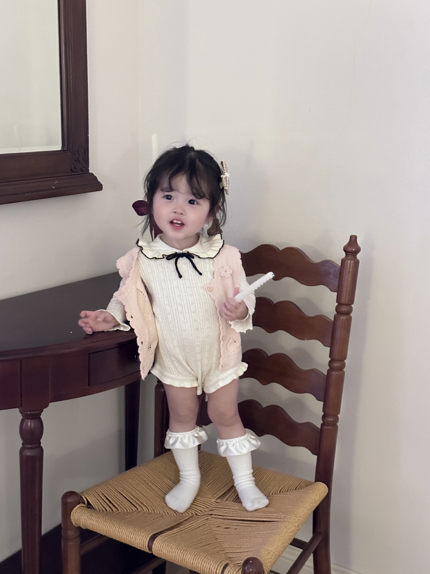 ベビーロンパース フリル襟リボンニット長袖ボディスーツ【mh0009114】