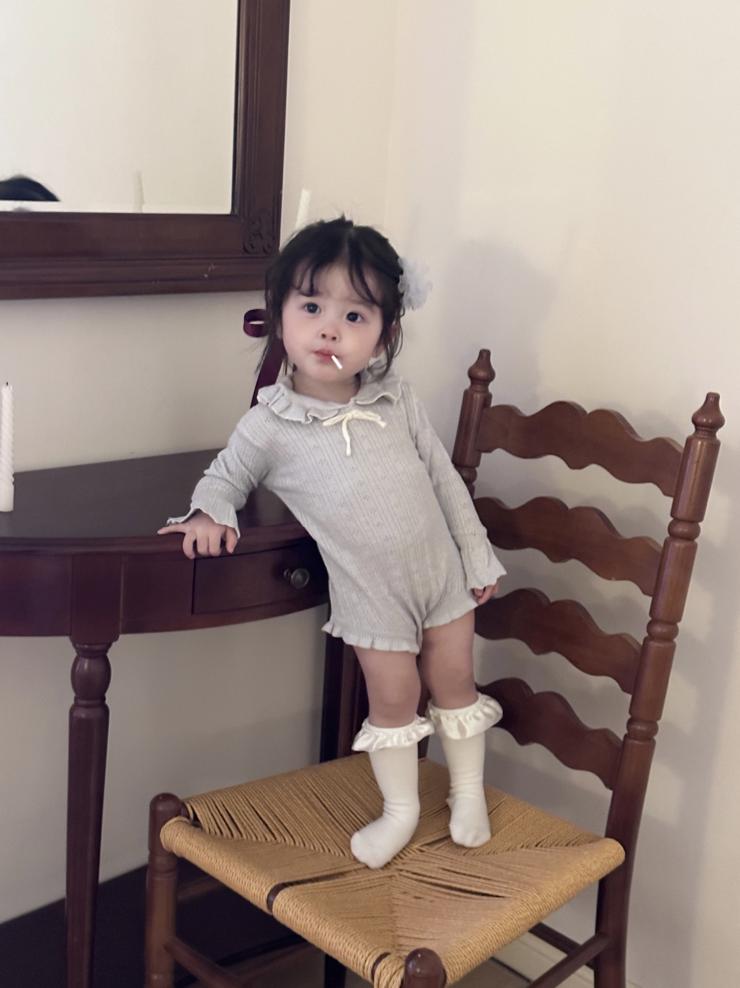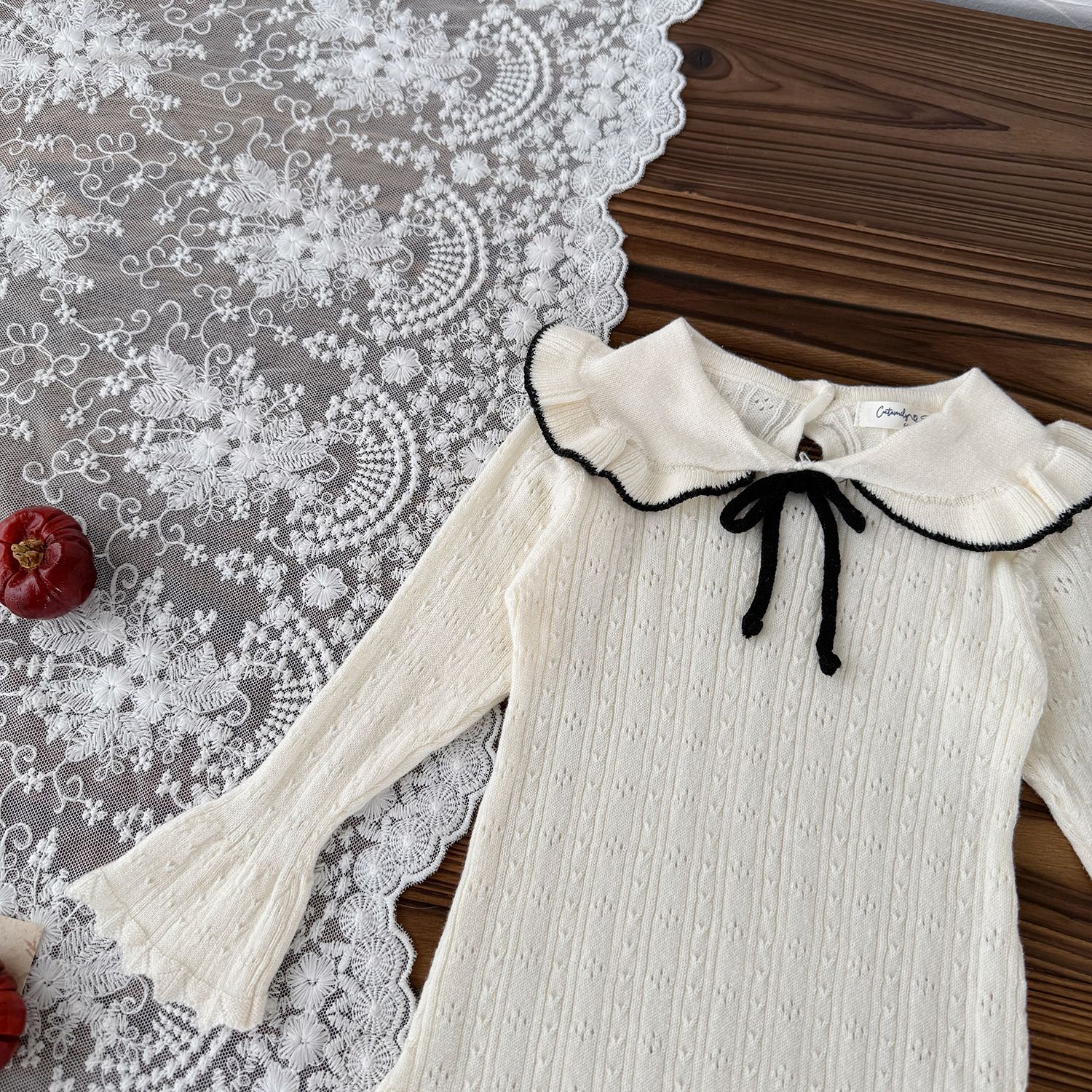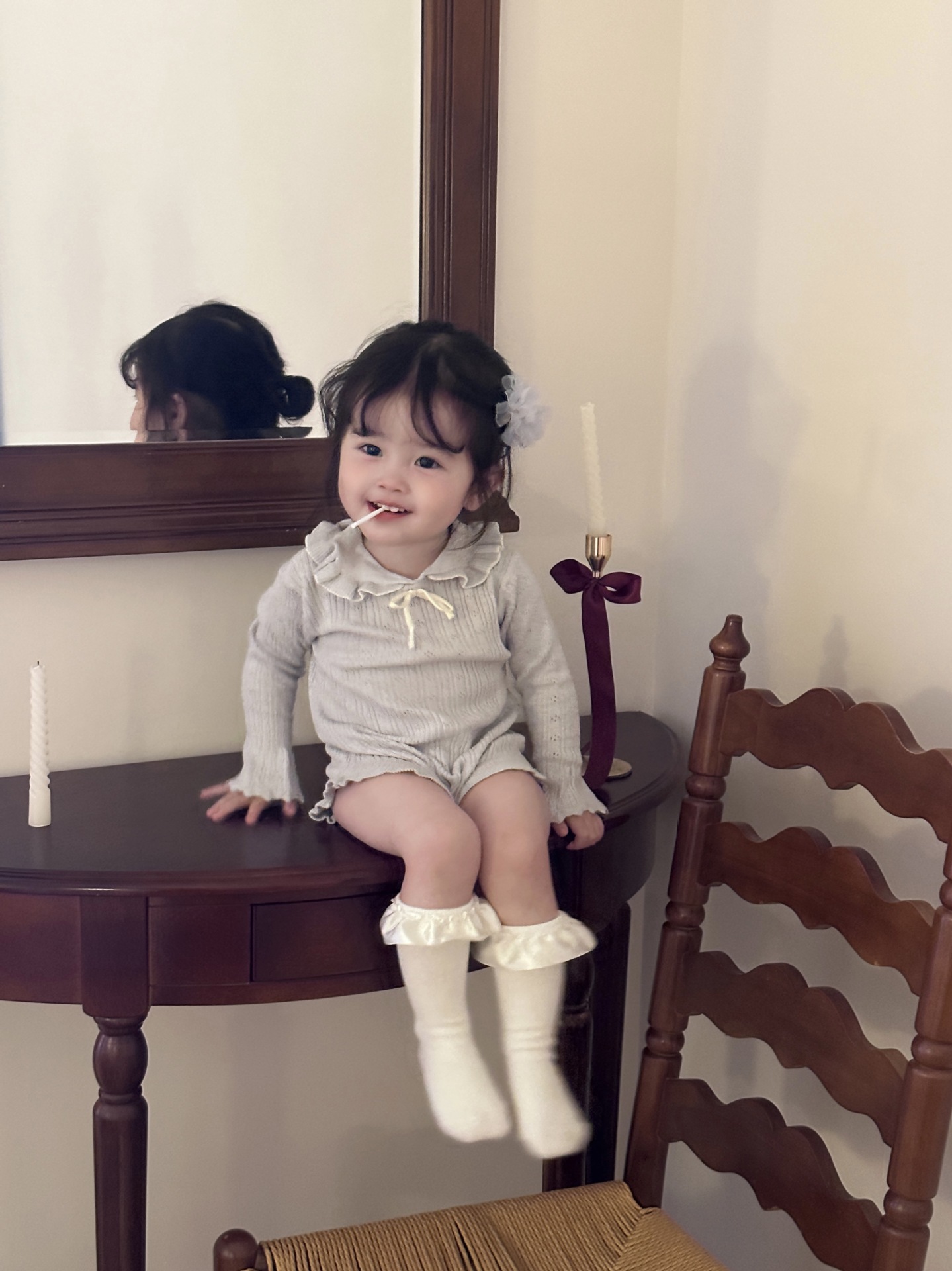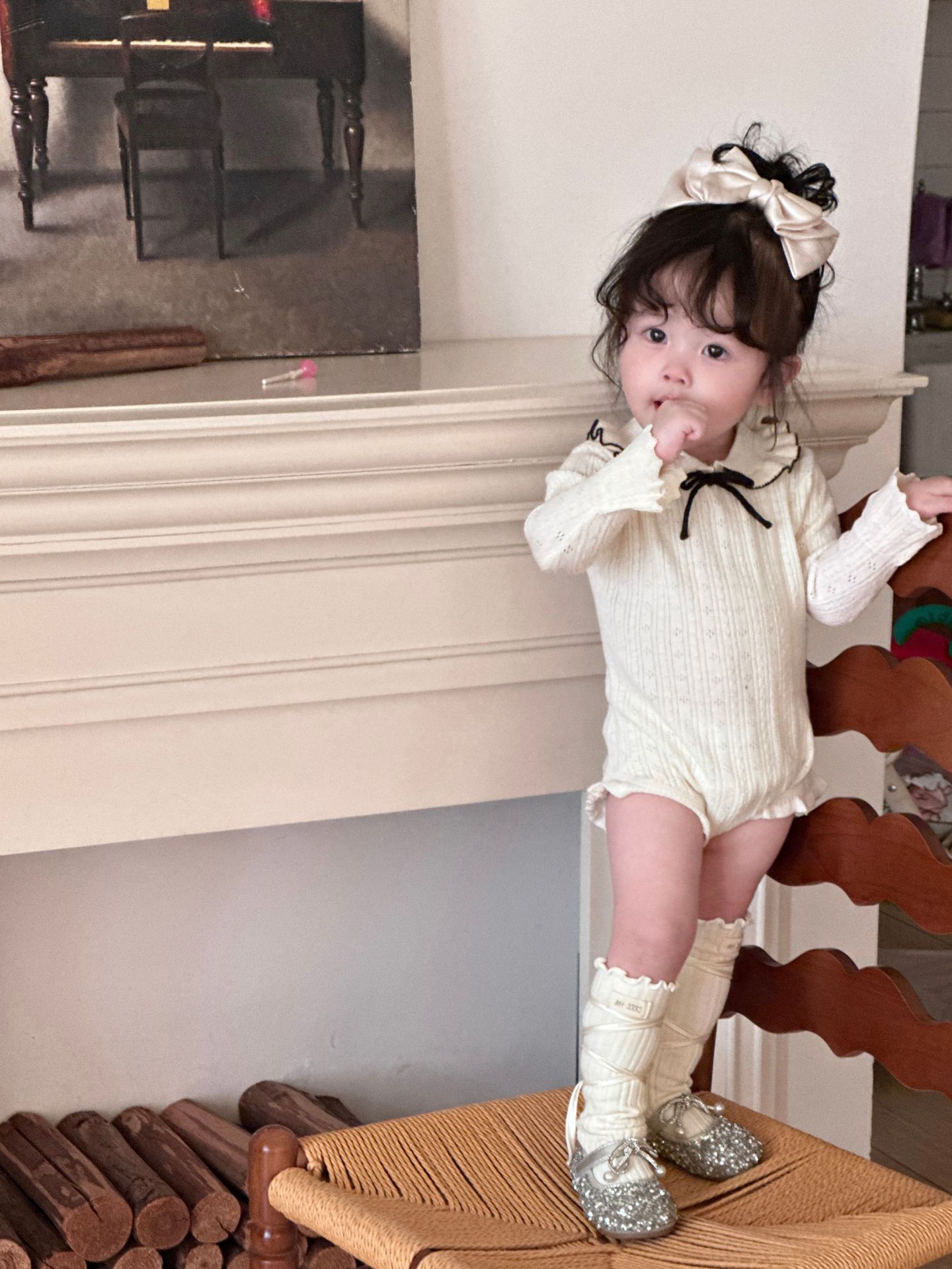 ベビーロンパース フリル襟リボンニット長袖ボディスーツ【mh0009114】