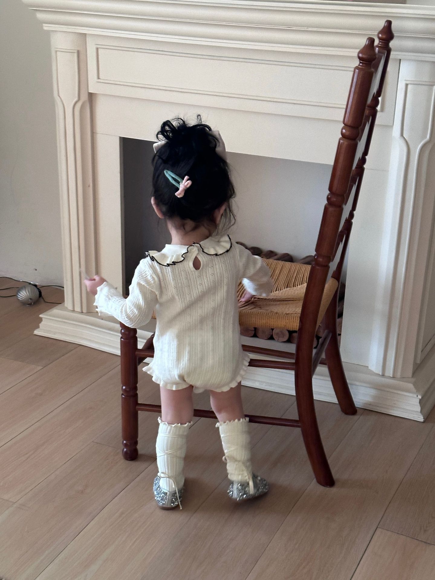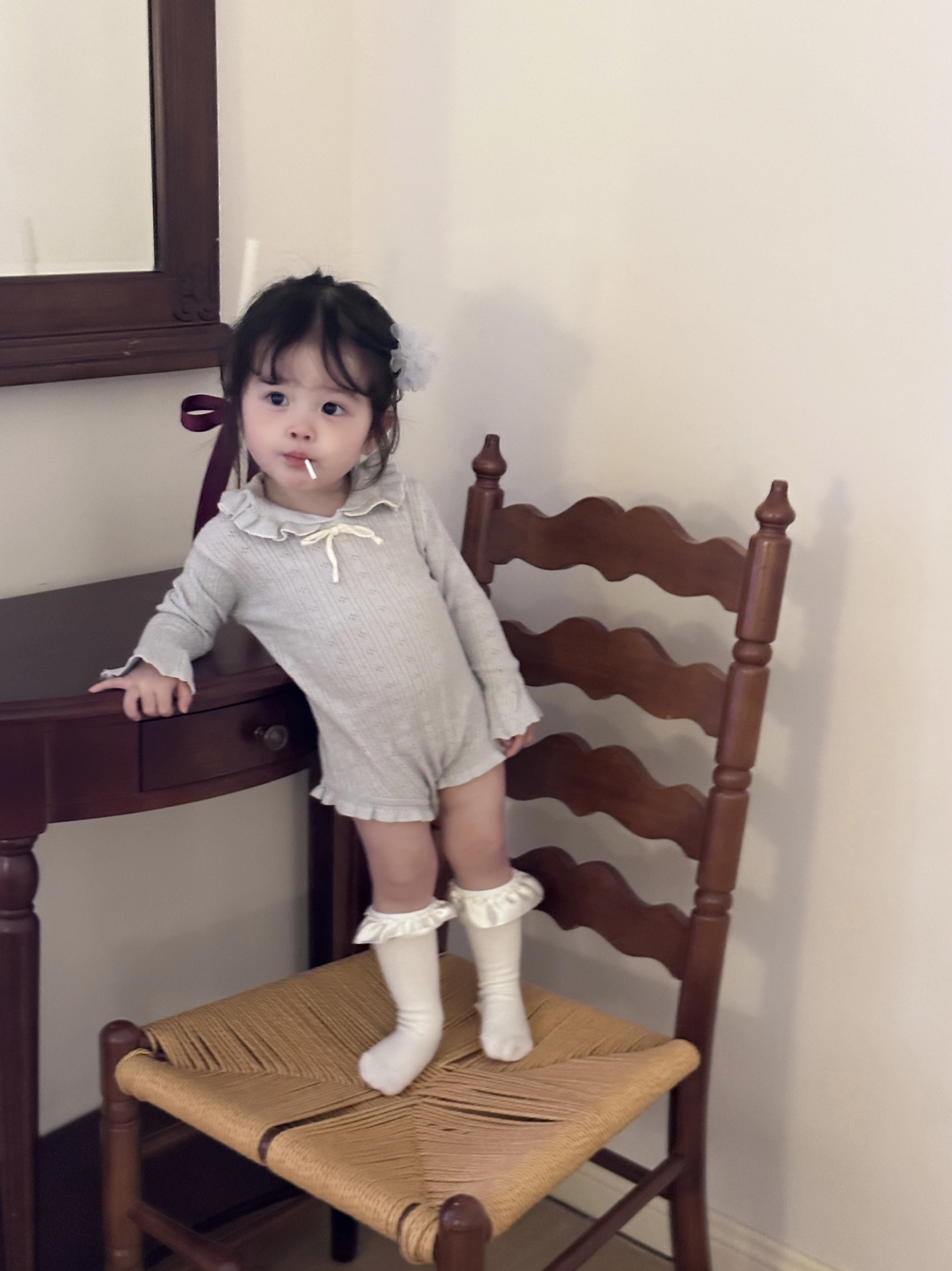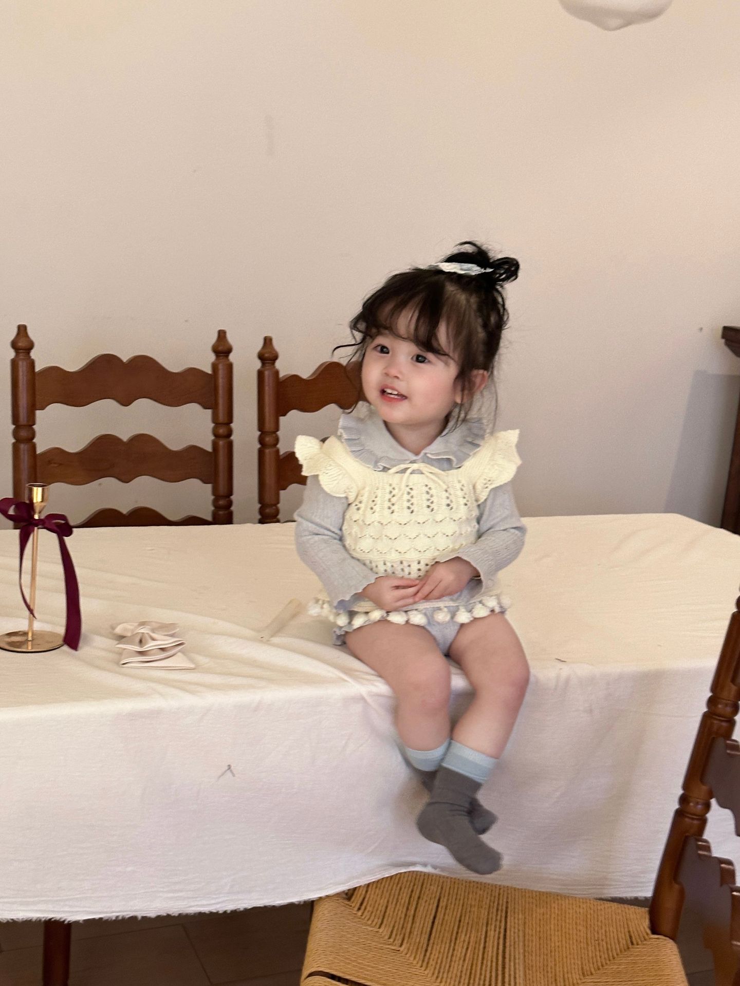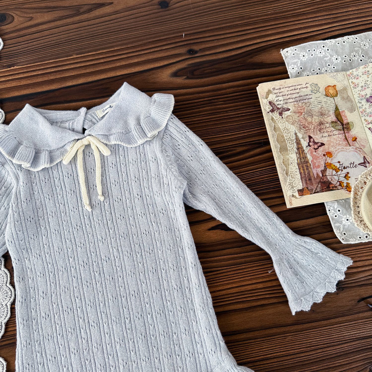 ベビーロンパース フリル襟リボンニット長袖ボディスーツ【mh0009114】