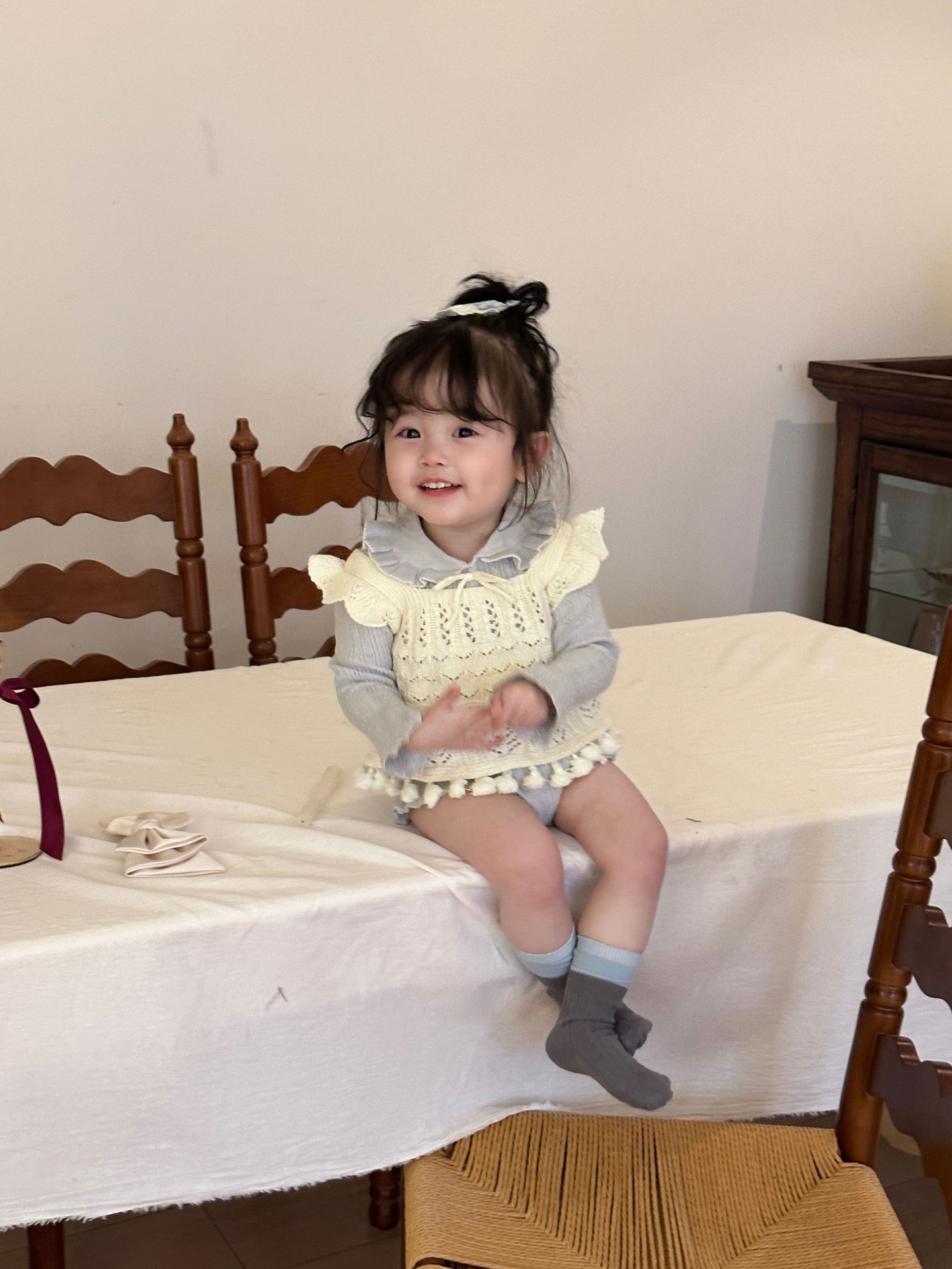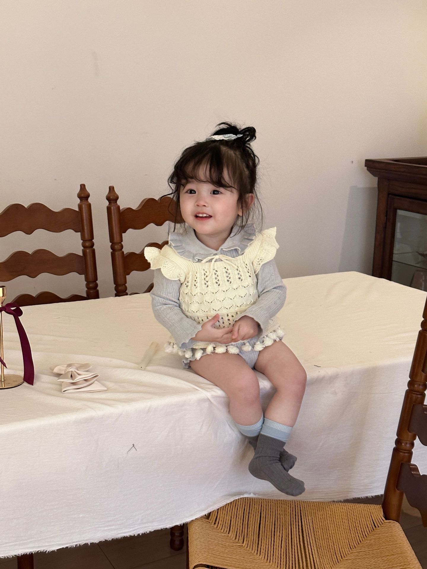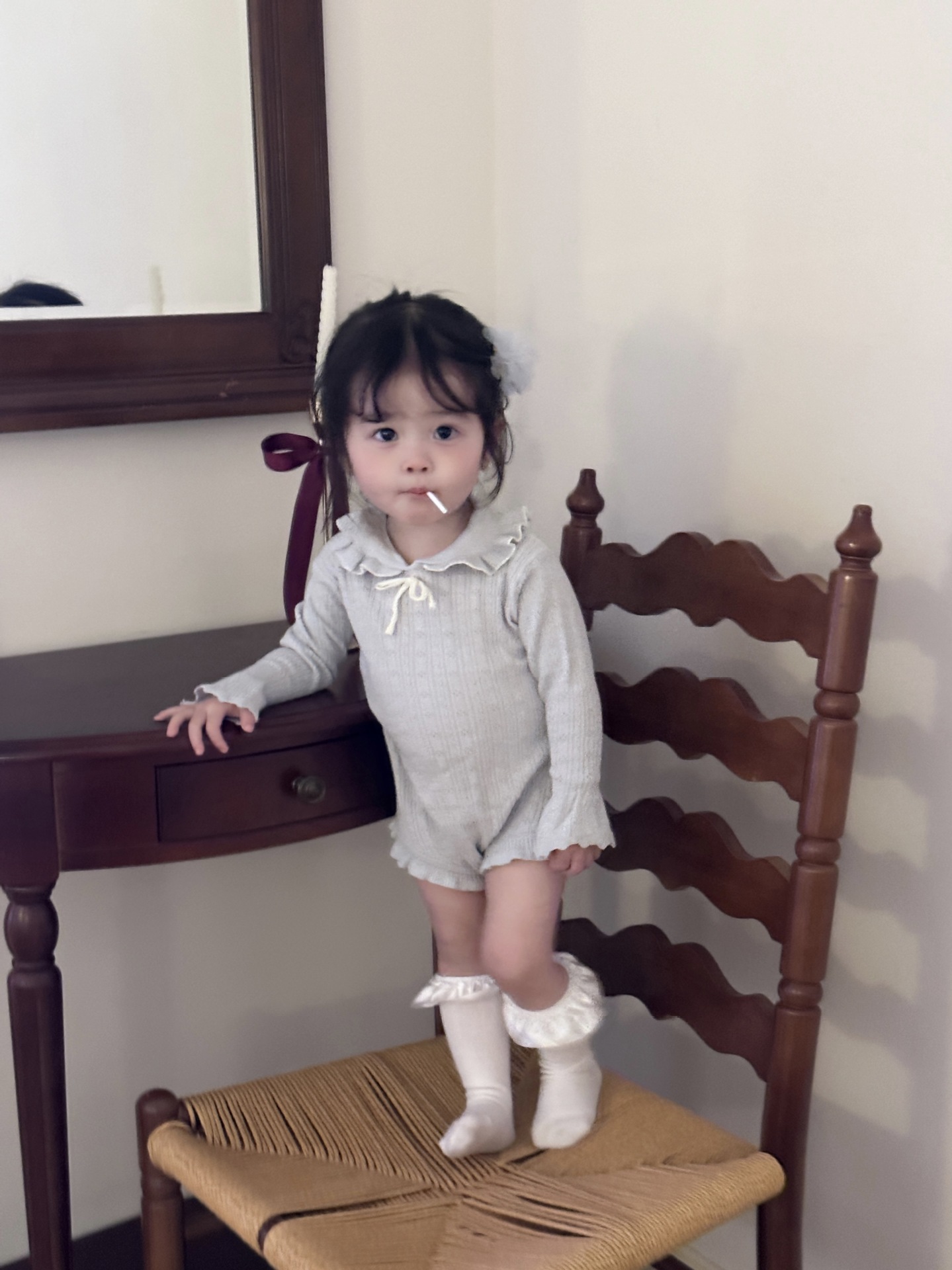 #ベビーロンパース #フリル襟 #リボンデザイン #ニットボディスーツ #おしゃれベビー #快適な着心地