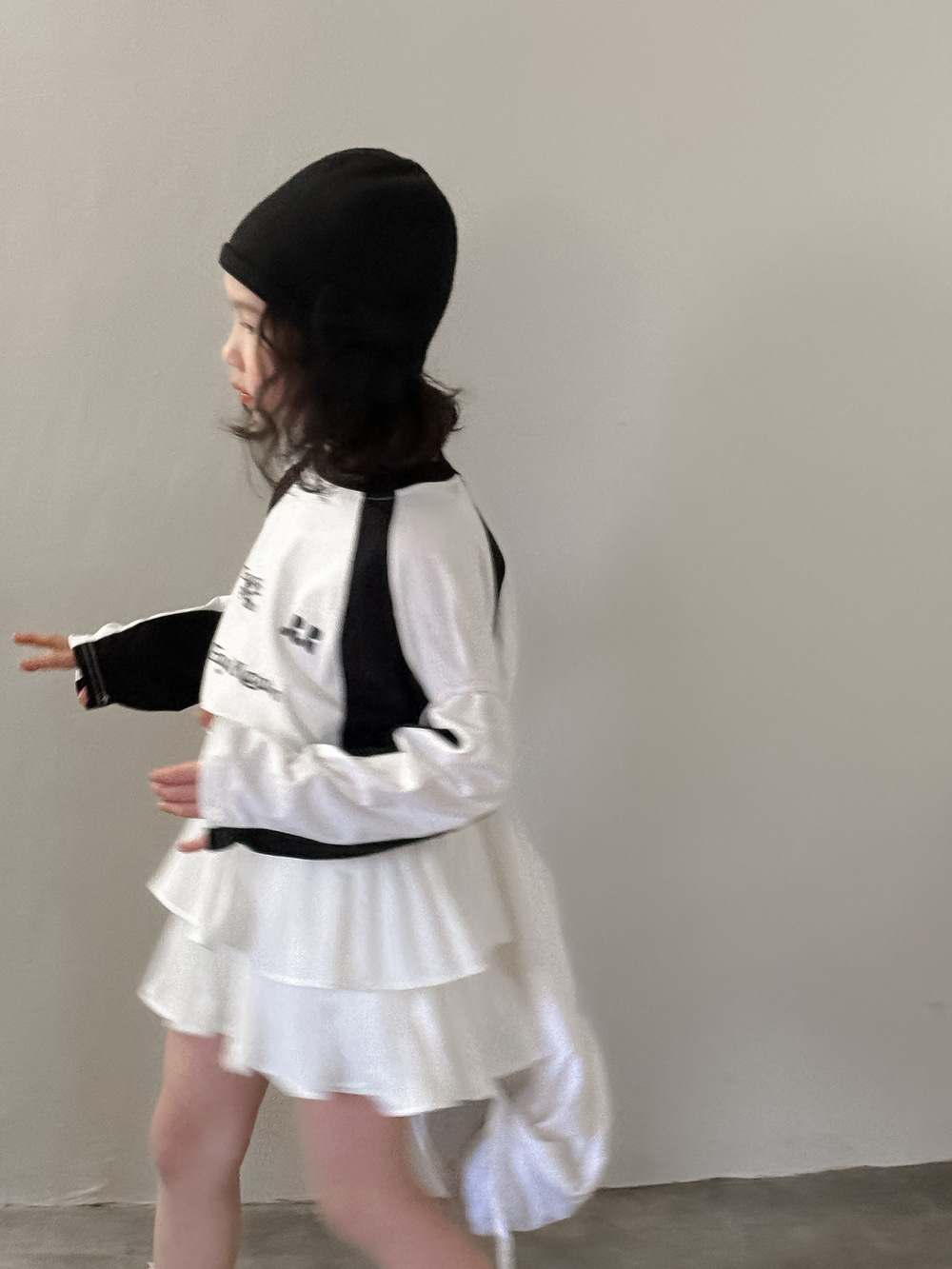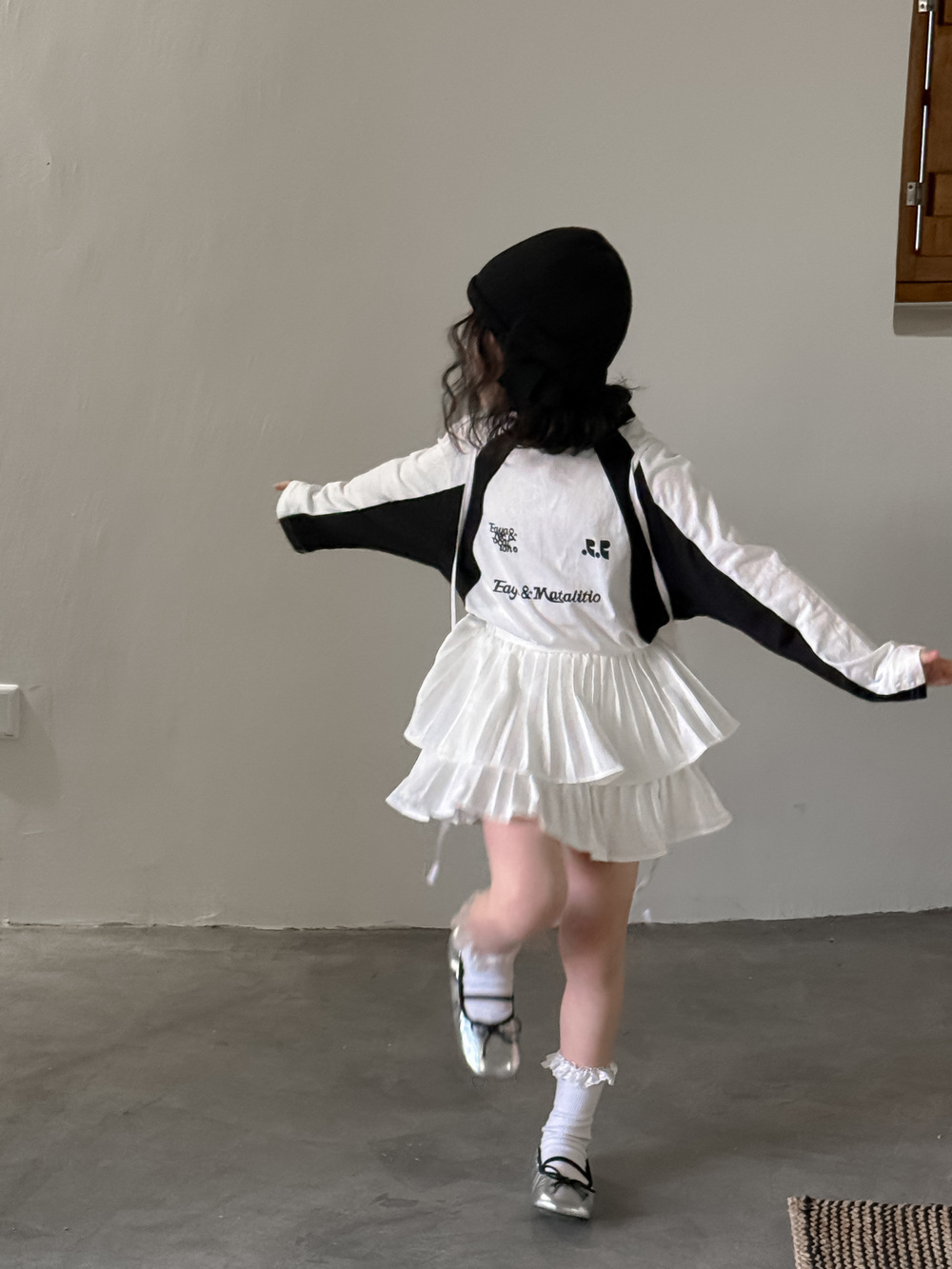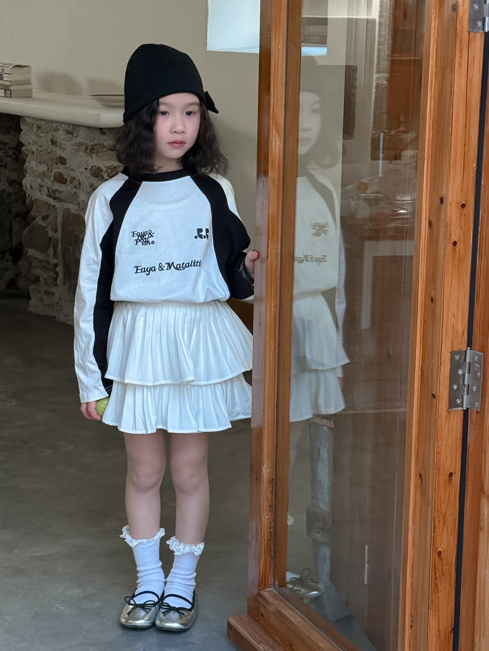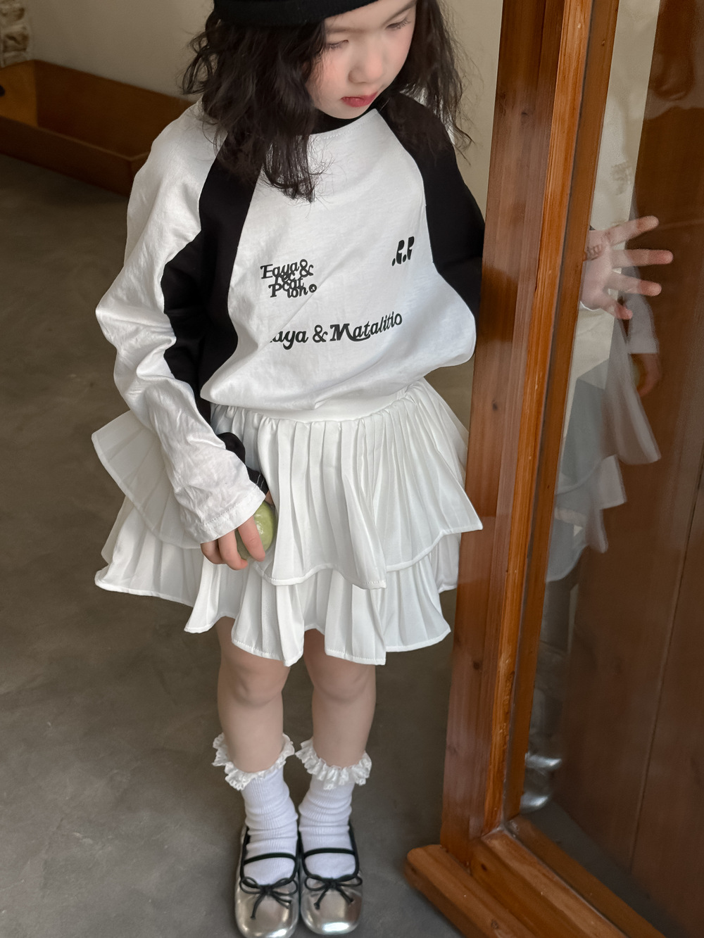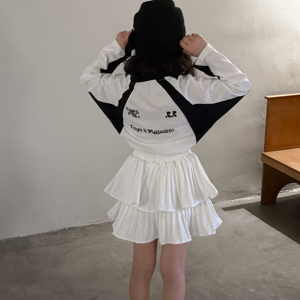 ロゴプリント長袖ラグランTシャツ/プリーツティアードフレアミニスカート【mh0009684】