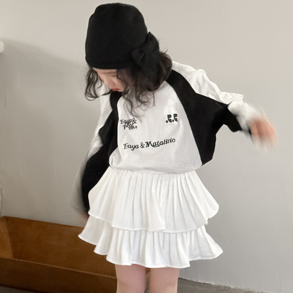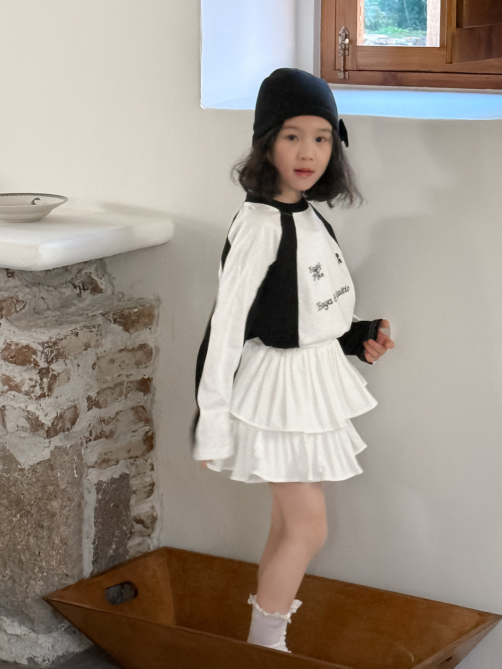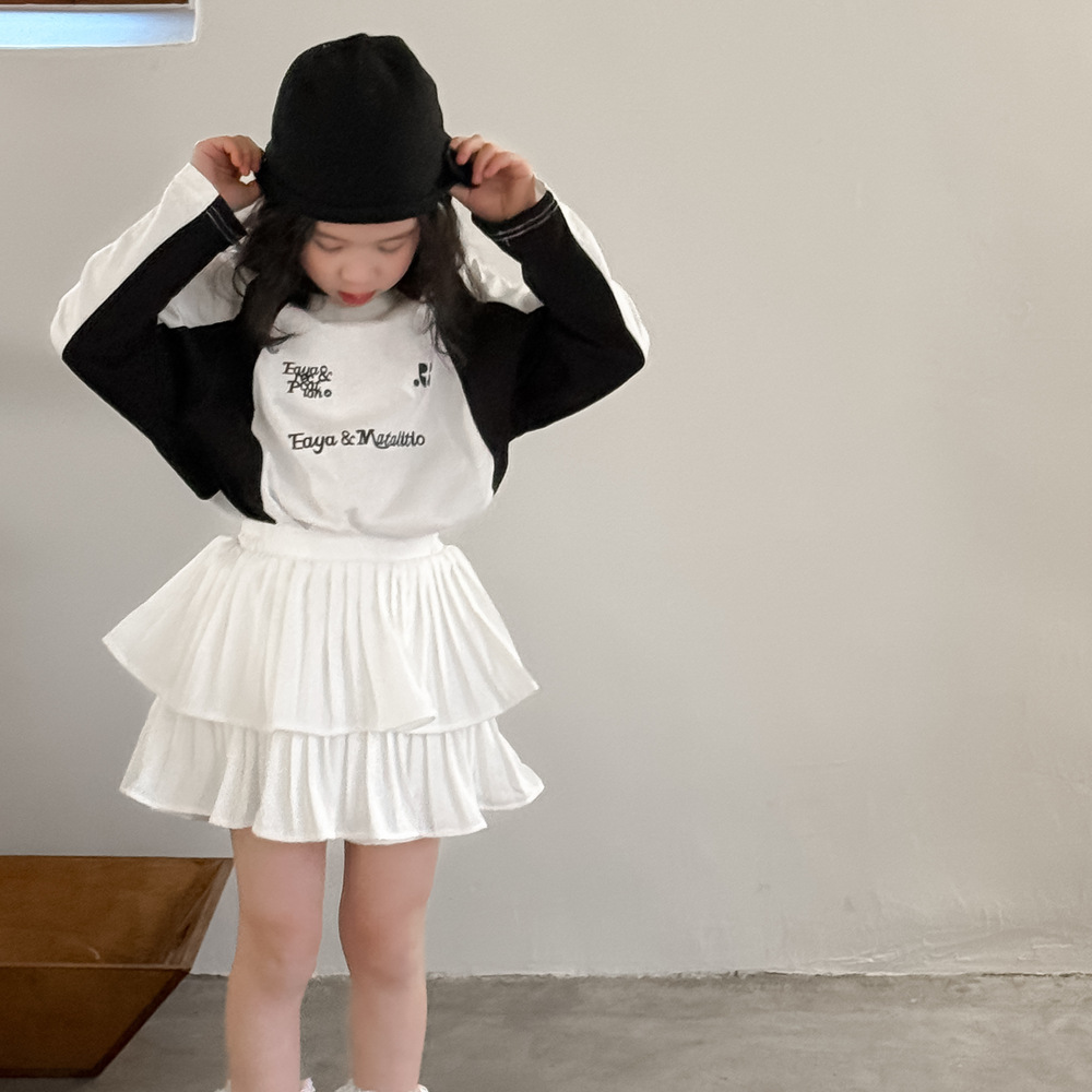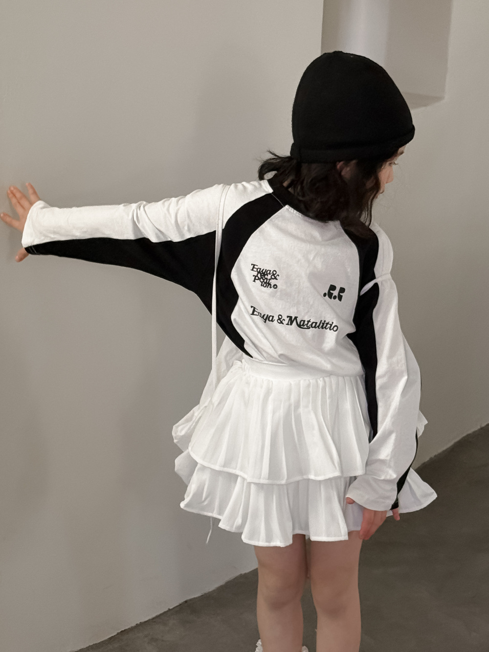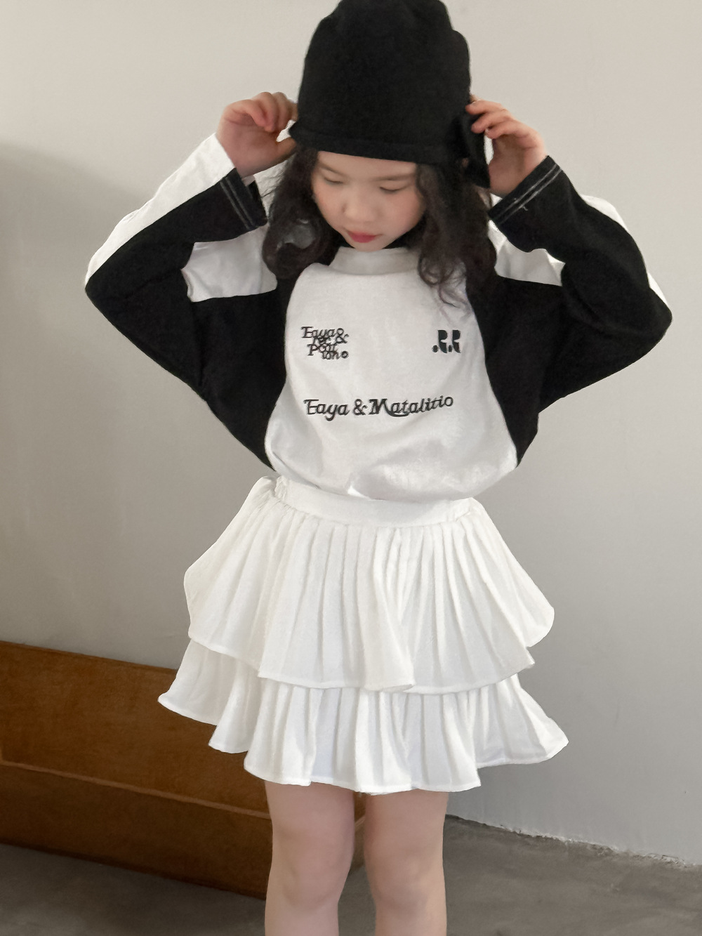 #キッズセットアップ #子供服 #女の子 #長袖Tシャツ #ミニスカート #ロゴプリント #プリーツスカート