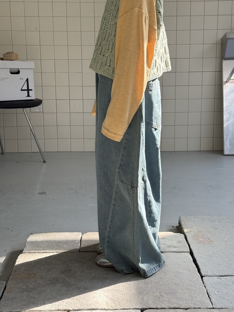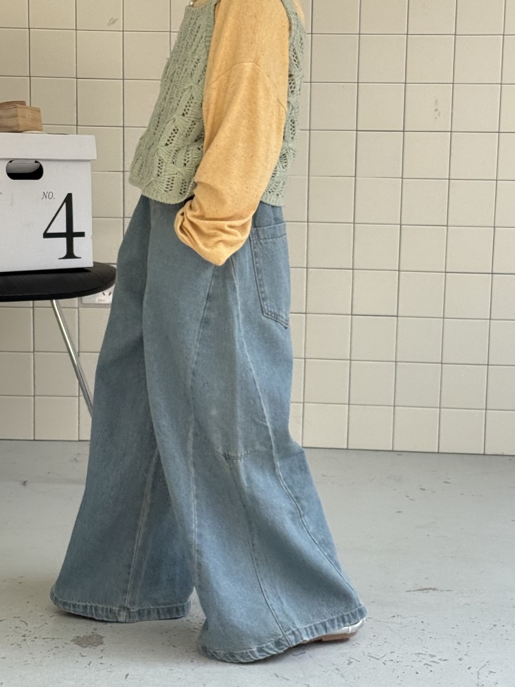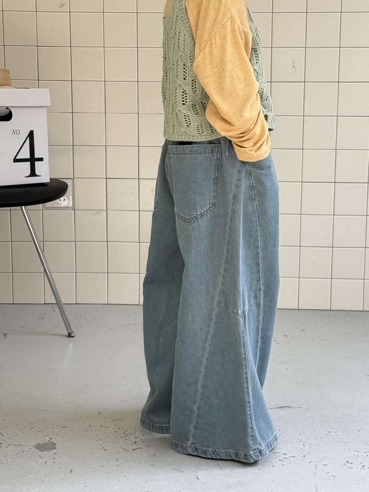 ワイドフレアバギーデニムパンツジーンズ【mh0009689】