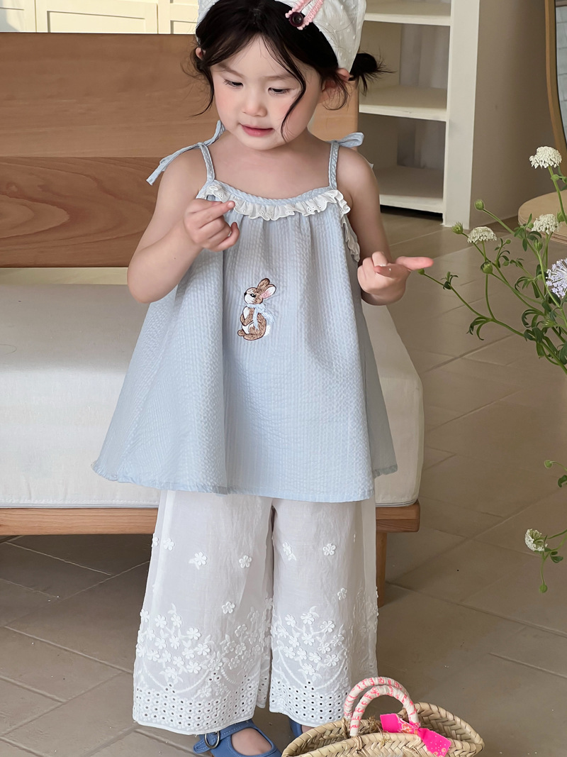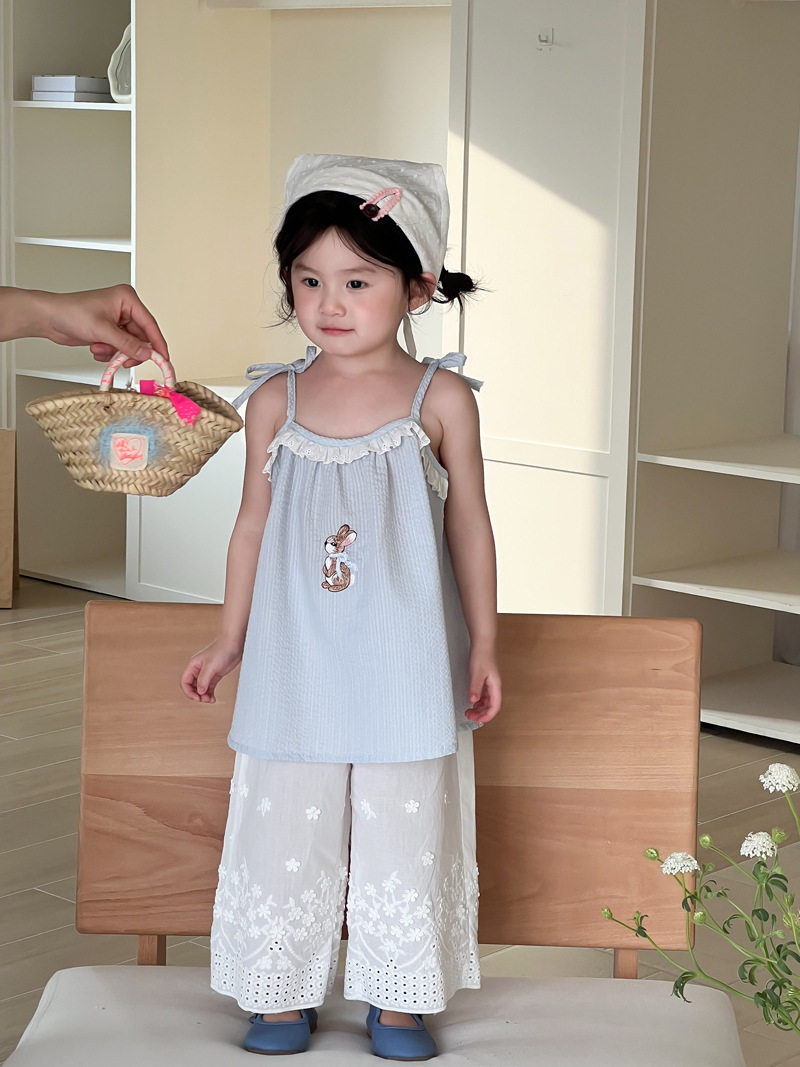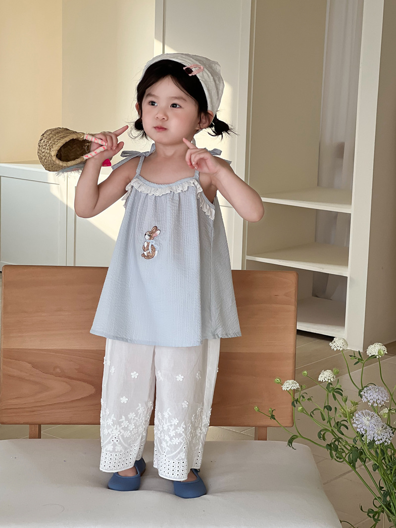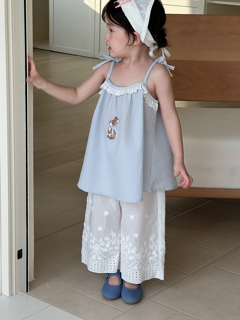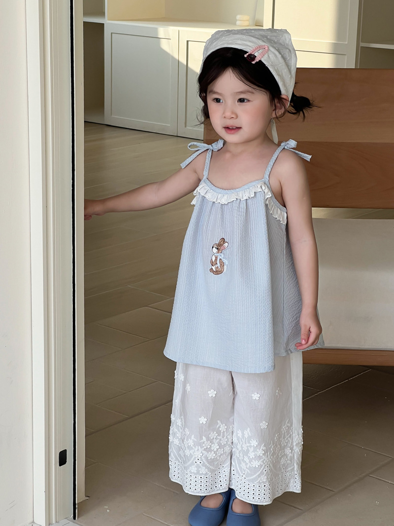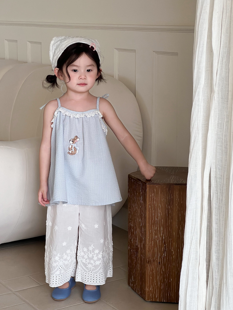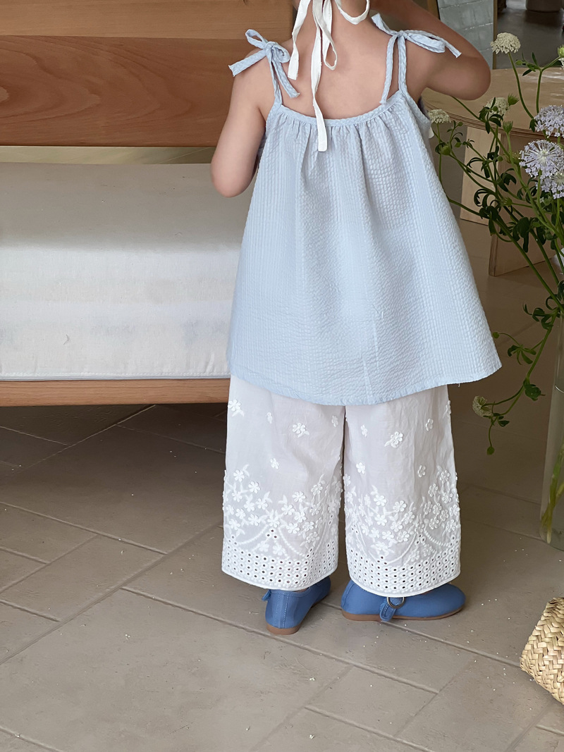#キッズパンツ #子供服 #女の子 #ワイドパンツ #ルーズパンツ #フラワー刺繍 #レース #夏物子供服 #イージーパンツ #虫除け