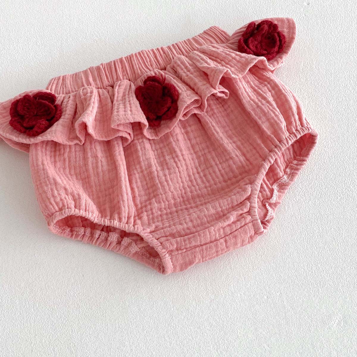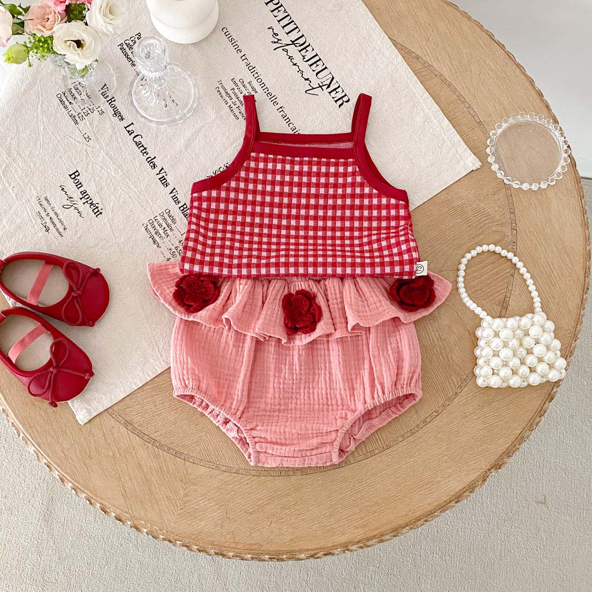 #ベビー服 #女の子ベビー #キャミソール #ブルマパンツ #チェック柄 #フラワーアップリケ #フリル #夏物ベビー #お誕生日 #ベビーコーデ