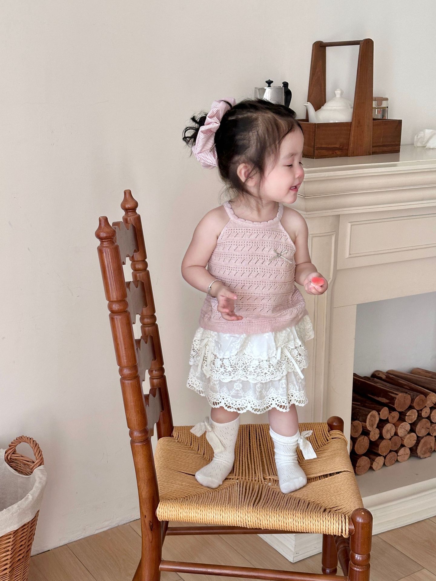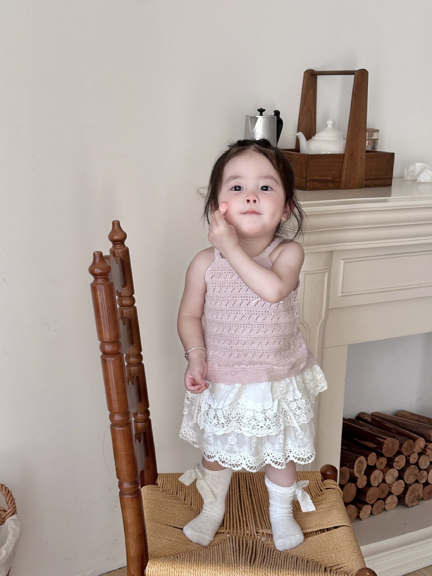#キッズキャミソール #子供服 #女の子 #ニットトップス #レースニット #夏物子供服 #重ね着アイテム #タンクトップ