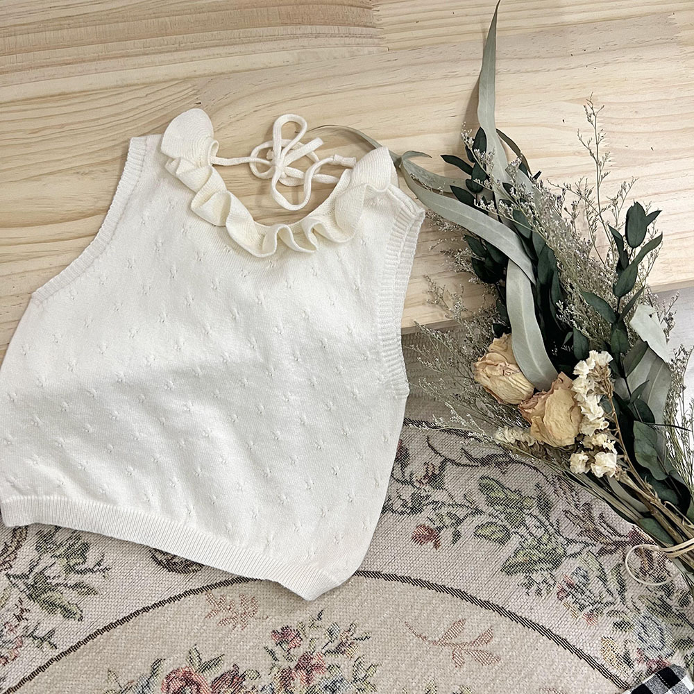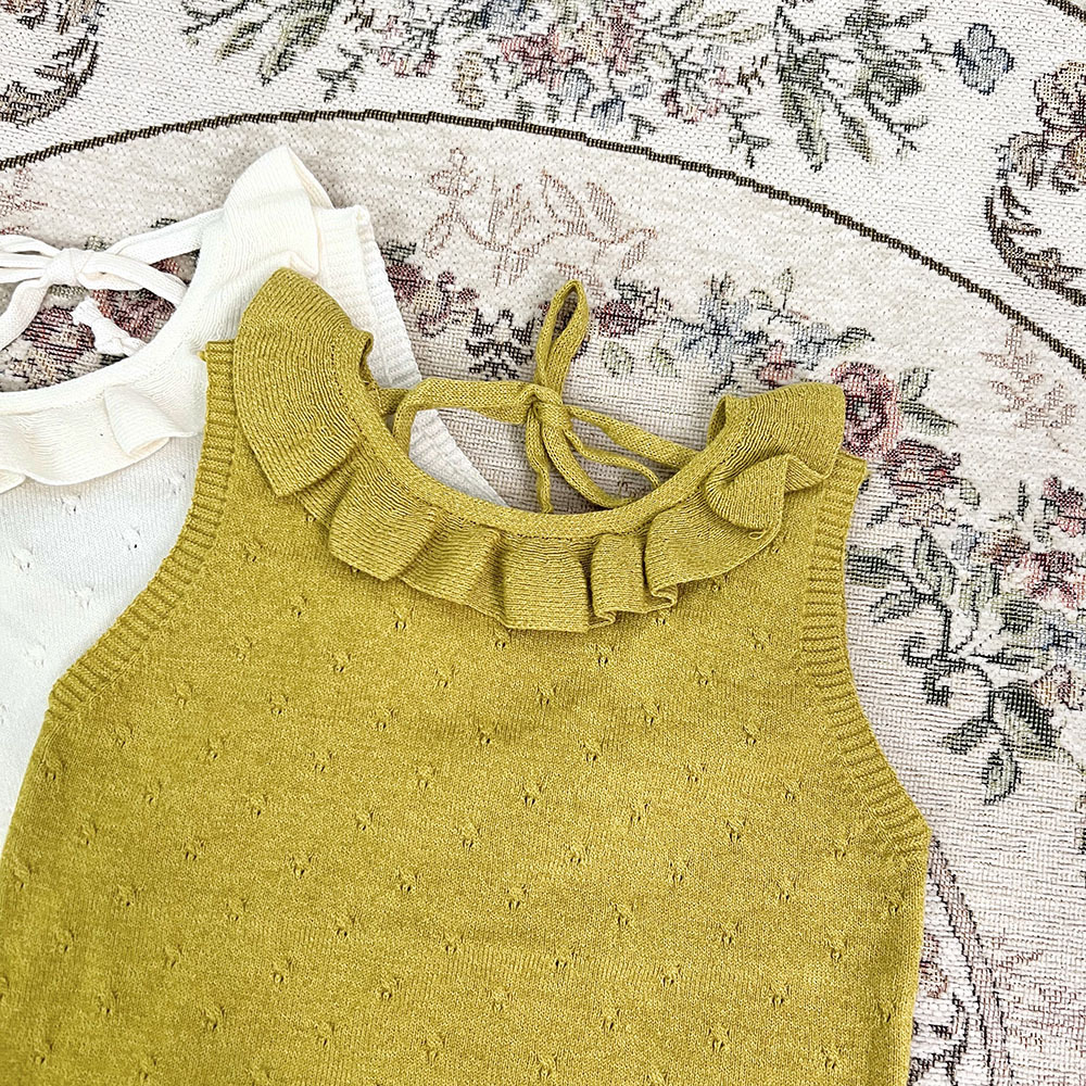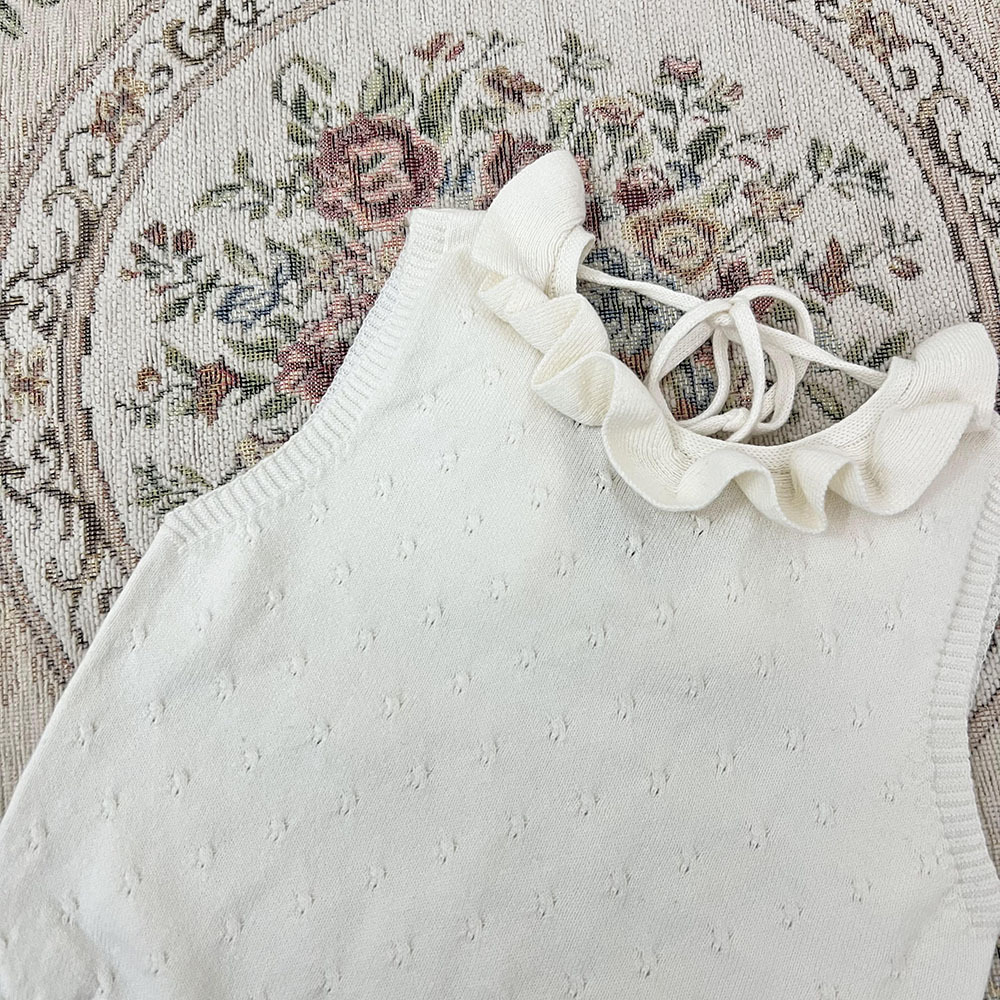 #キッズトップス #子供服 #女の子 #ノースリーブ #ニットトップス #ラッフルフリル #バックオープン #夏物子供服 #おしゃれキッズ