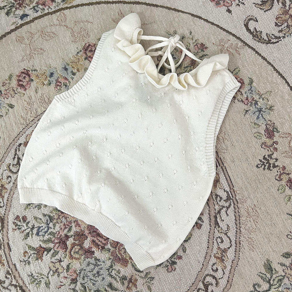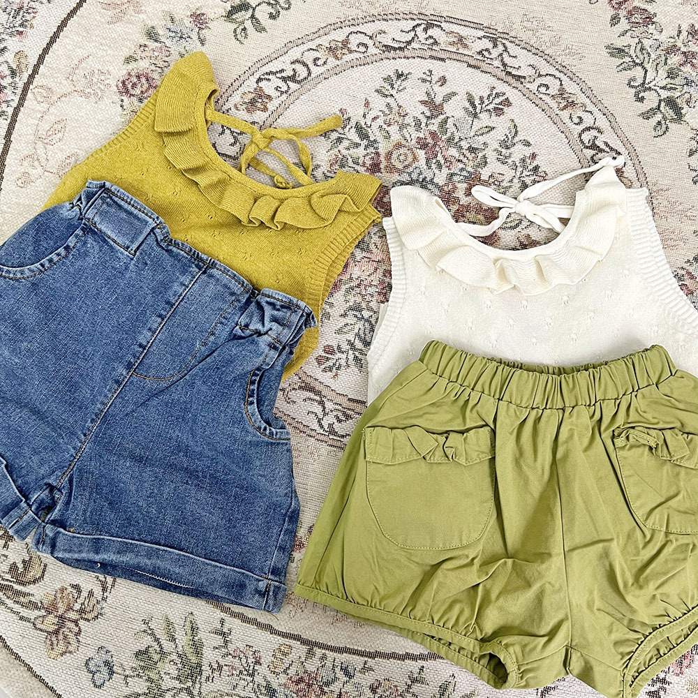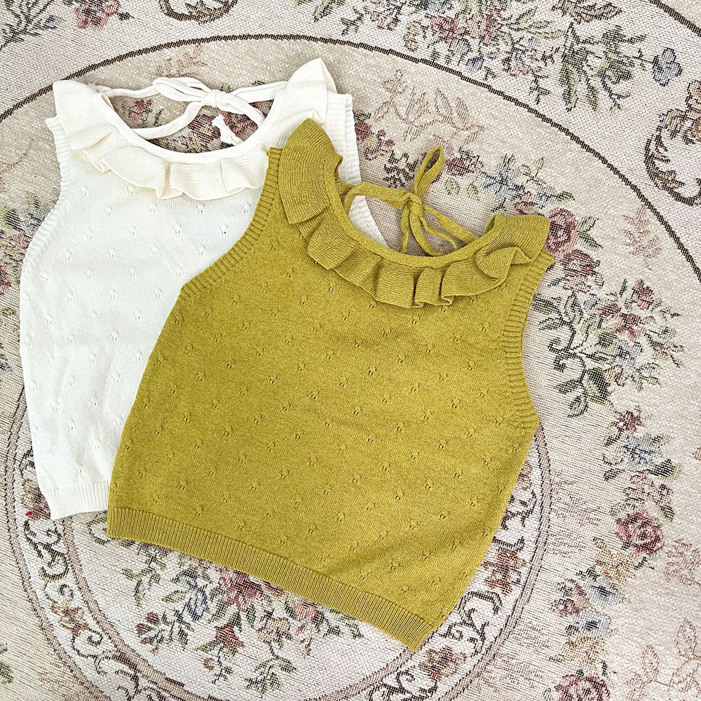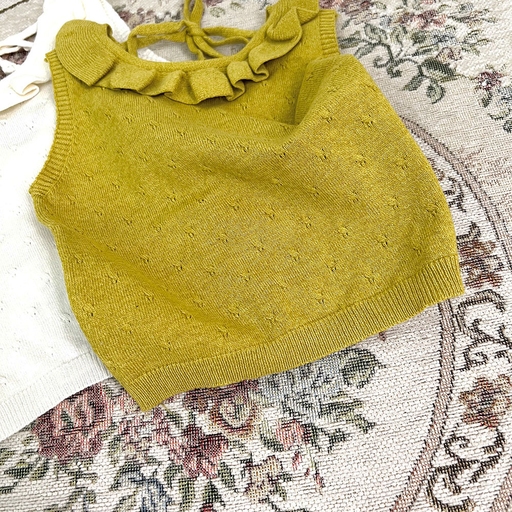 #キッズトップス #子供服 #女の子 #ノースリーブ #ニットトップス #ラッフルフリル #バックオープン #夏物子供服 #おしゃれキッズ