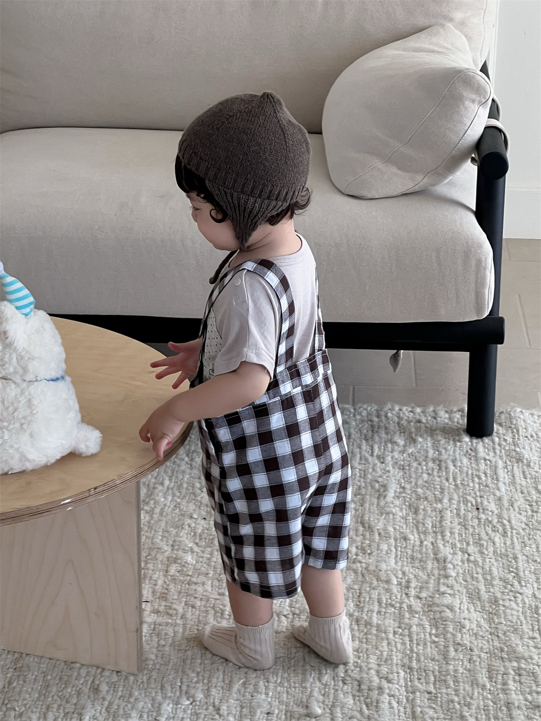半袖Tシャツ/ブロックチェックサスペンダーパンツサロペット【mh0009925】