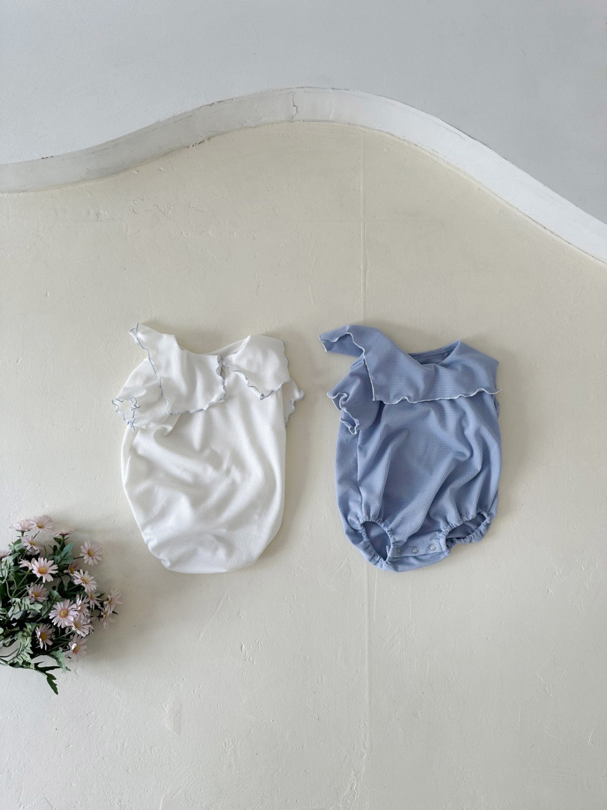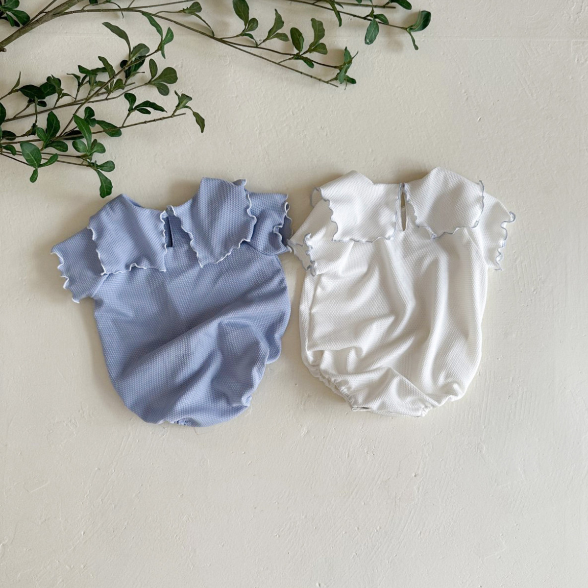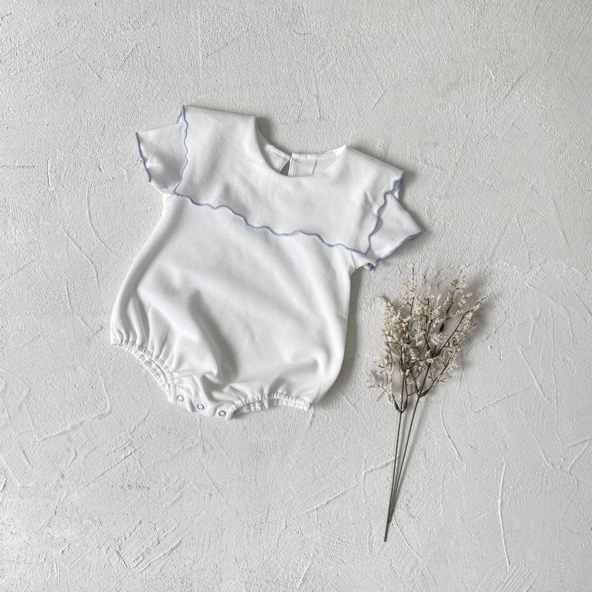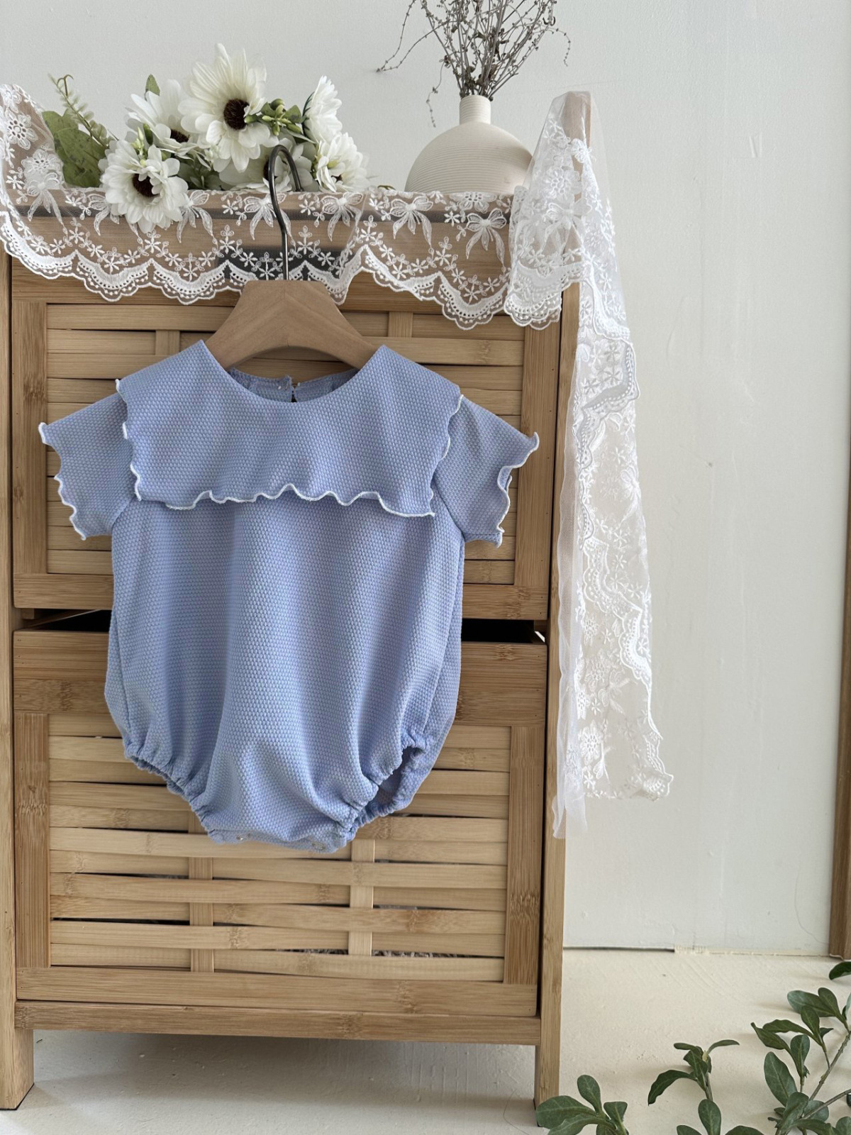 #ベビー服 #ロンパース #フリルロンパース #ショールカラー #夏服 #ベビーファッション #新生児服