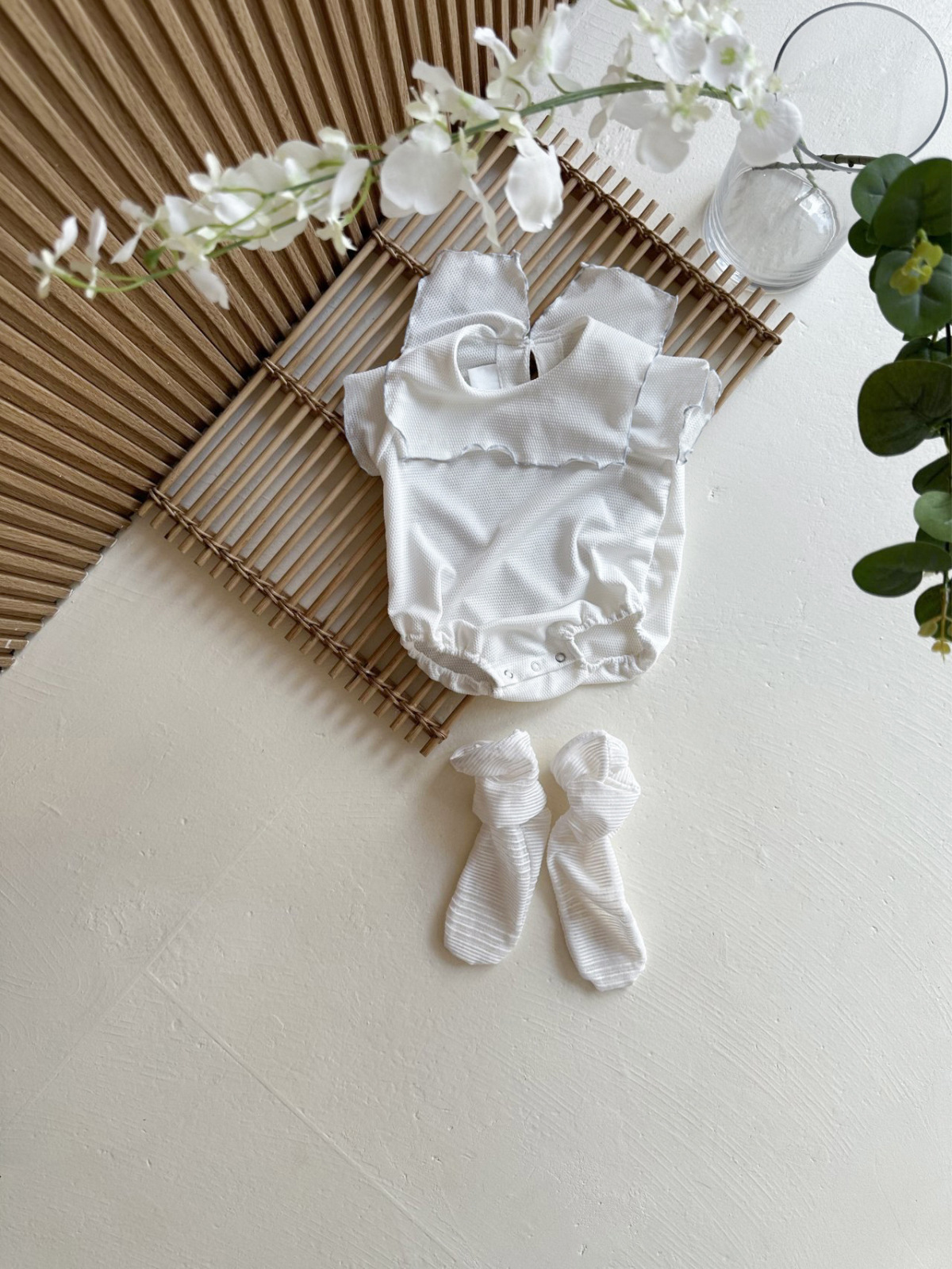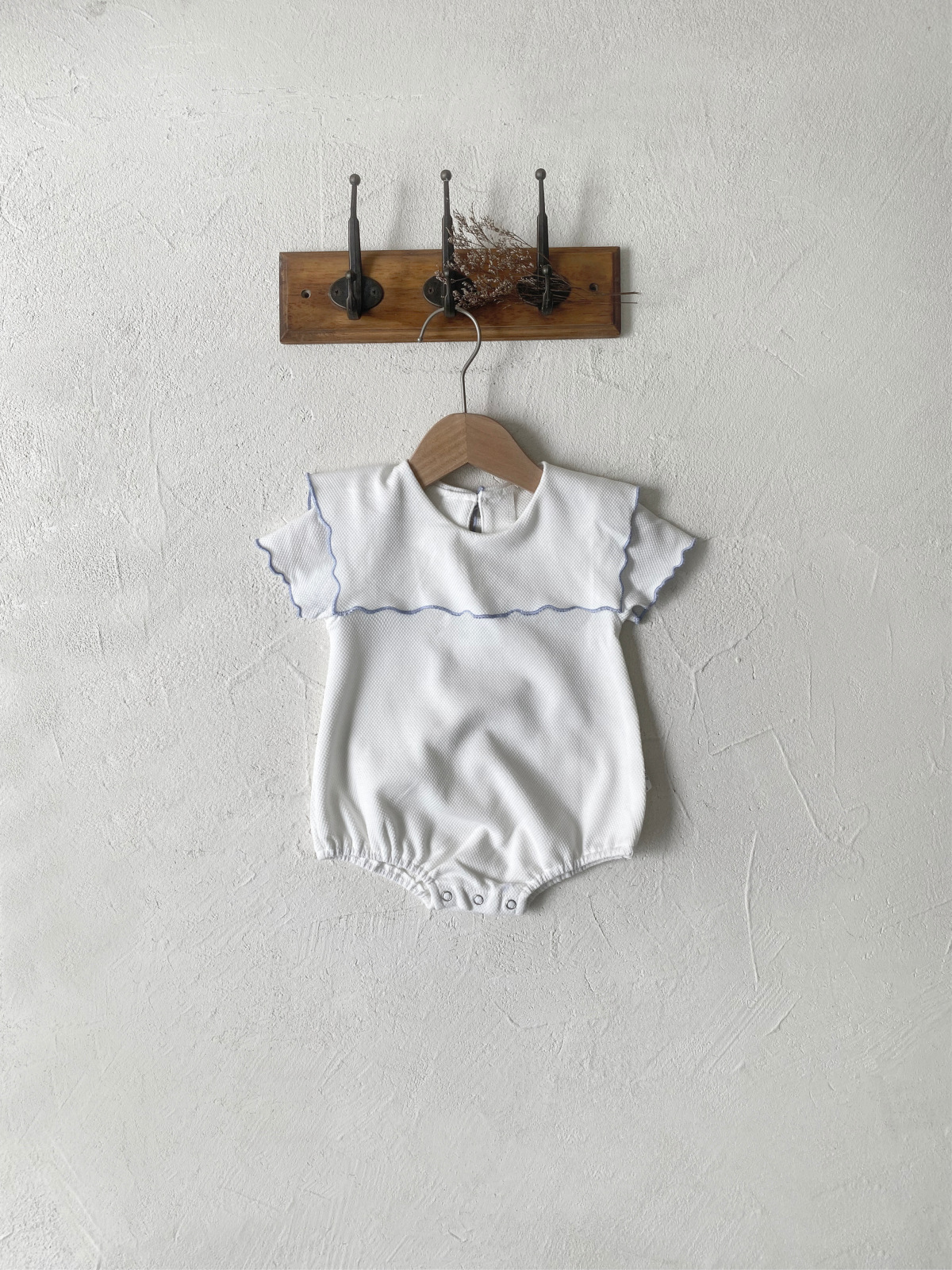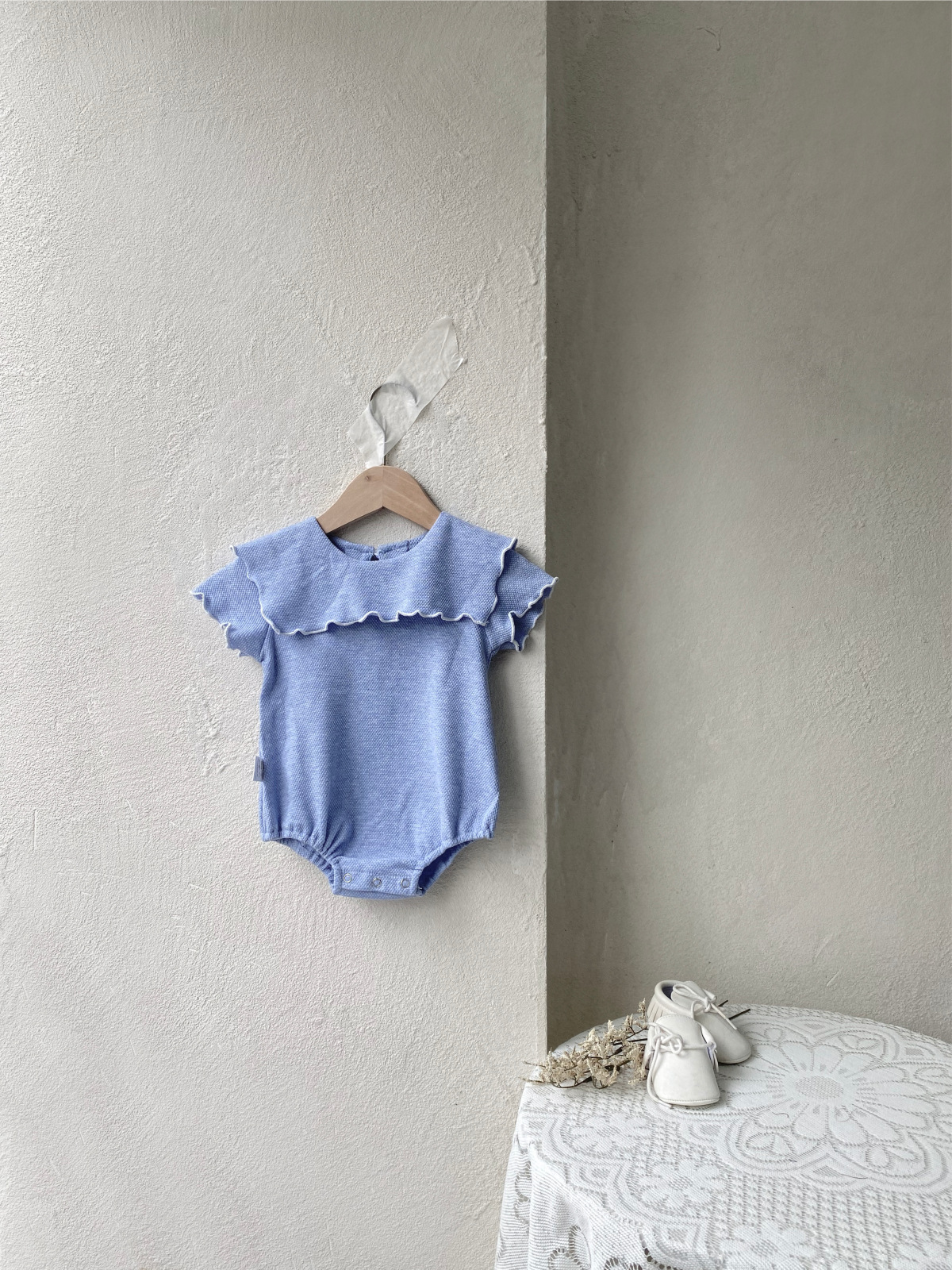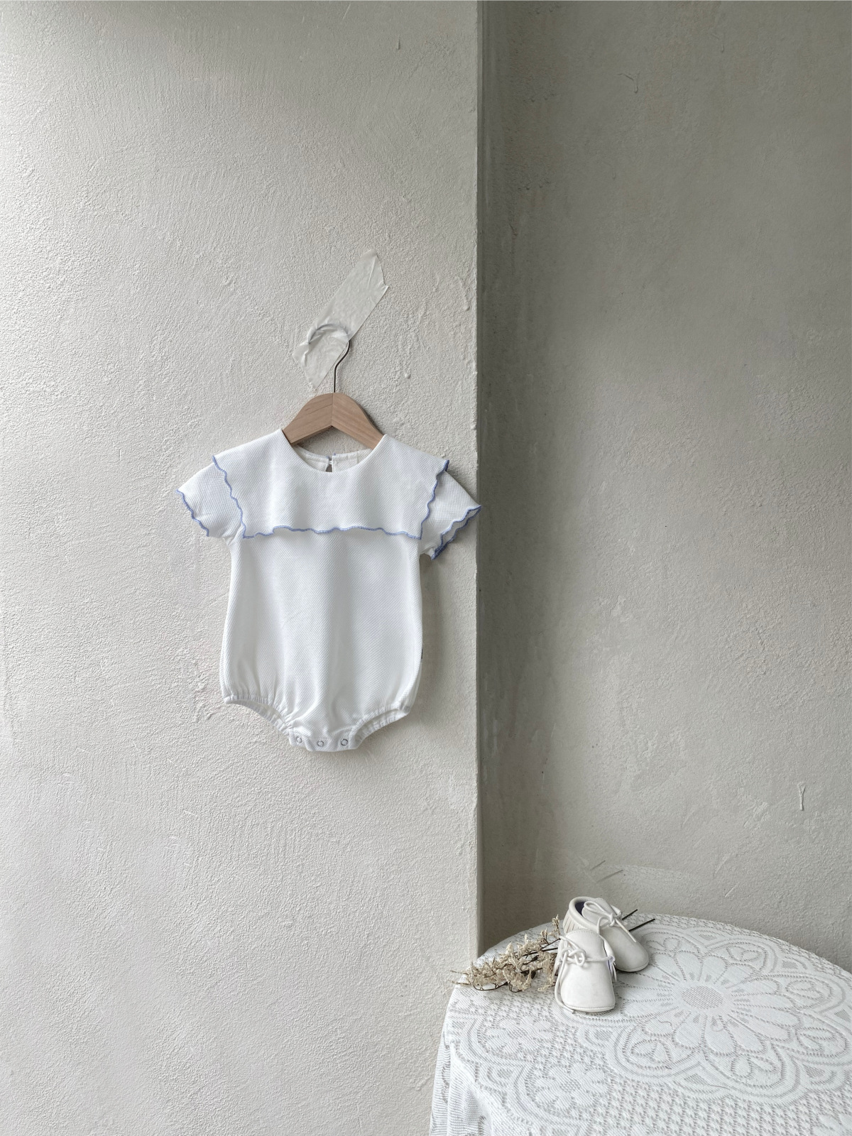 #ベビー服 #ロンパース #フリルロンパース #ショールカラー #夏服 #ベビーファッション #新生児服