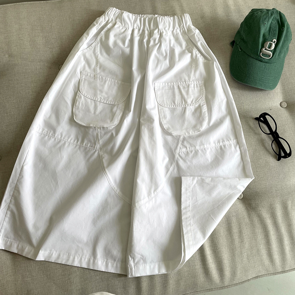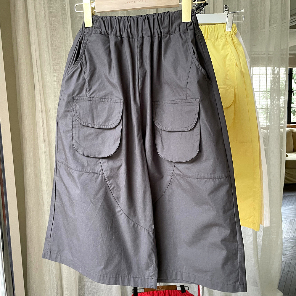 ゆったりとしたワイドシルエットで、お子さんが快適に過ごせる一枚です。膝が隠れるミディアム丈のクロップド丈(七分丈〜八分丈程度)なので、通気性も良く、暑い夏でも涼しく過ごせます。シンプルなTシャツと合わせるだけで、こなれたカジュアルスタイルが完成。様々なトップスと相性が良く、普段使いに大活躍する万能アイテムです。