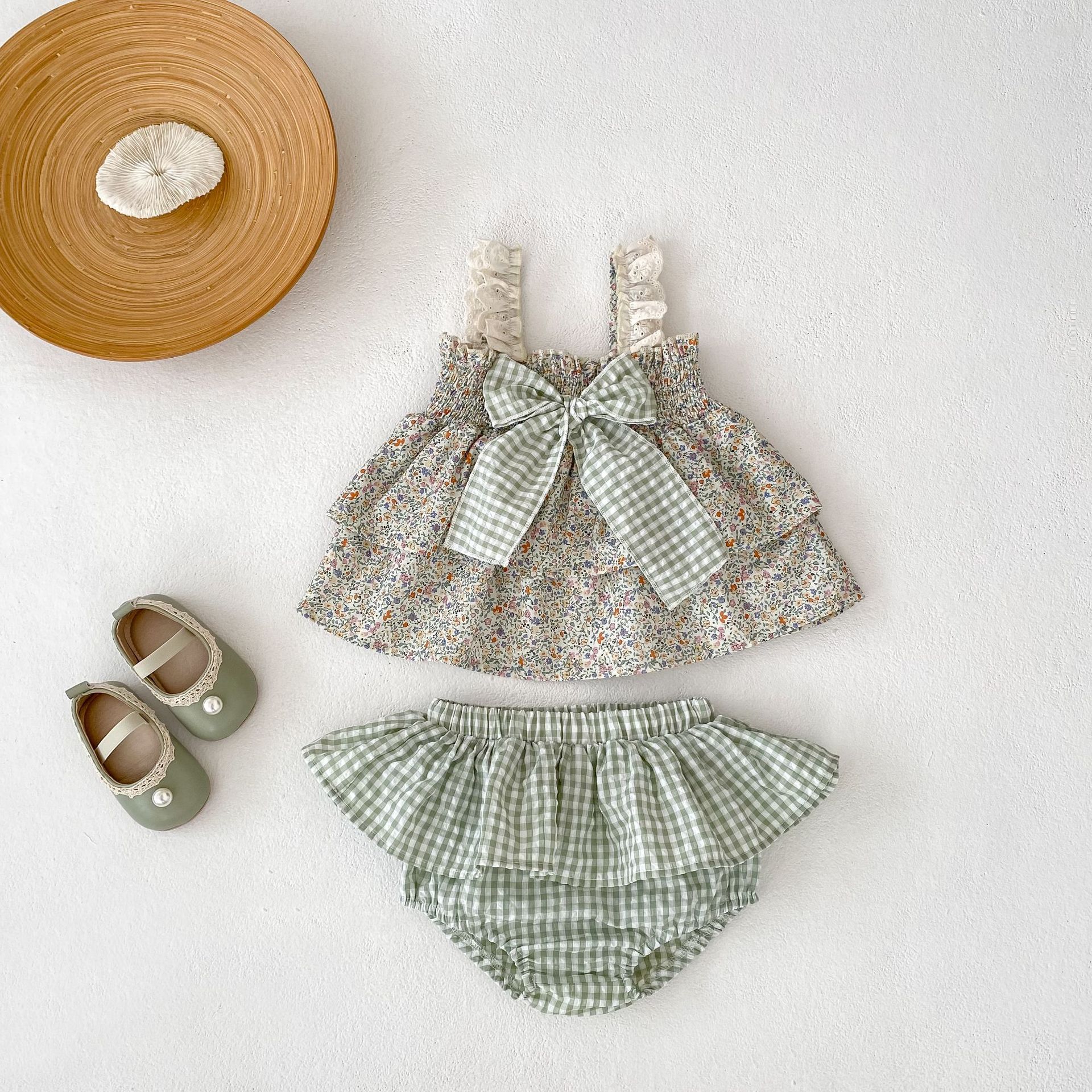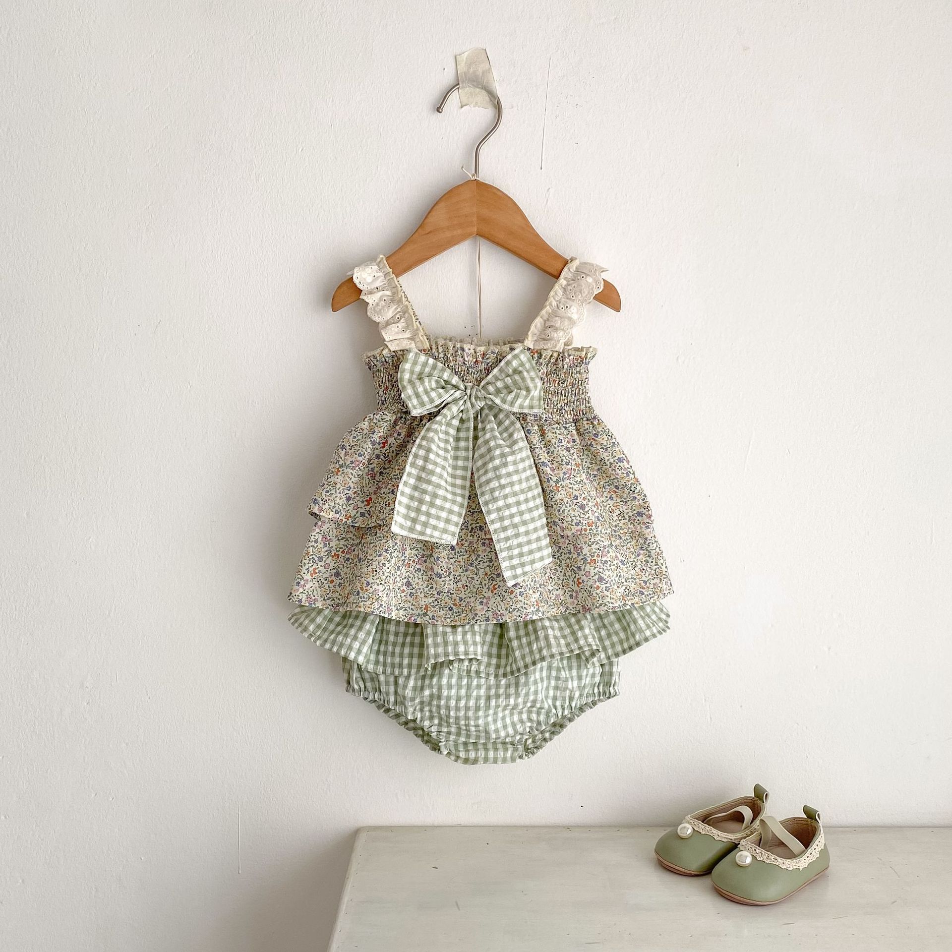 #ベビー服 #セットアップ #キャミソールブラウス #ブルマパンツ #ビッグリボン #フリル #夏物ベビー服 #女の子ベビー