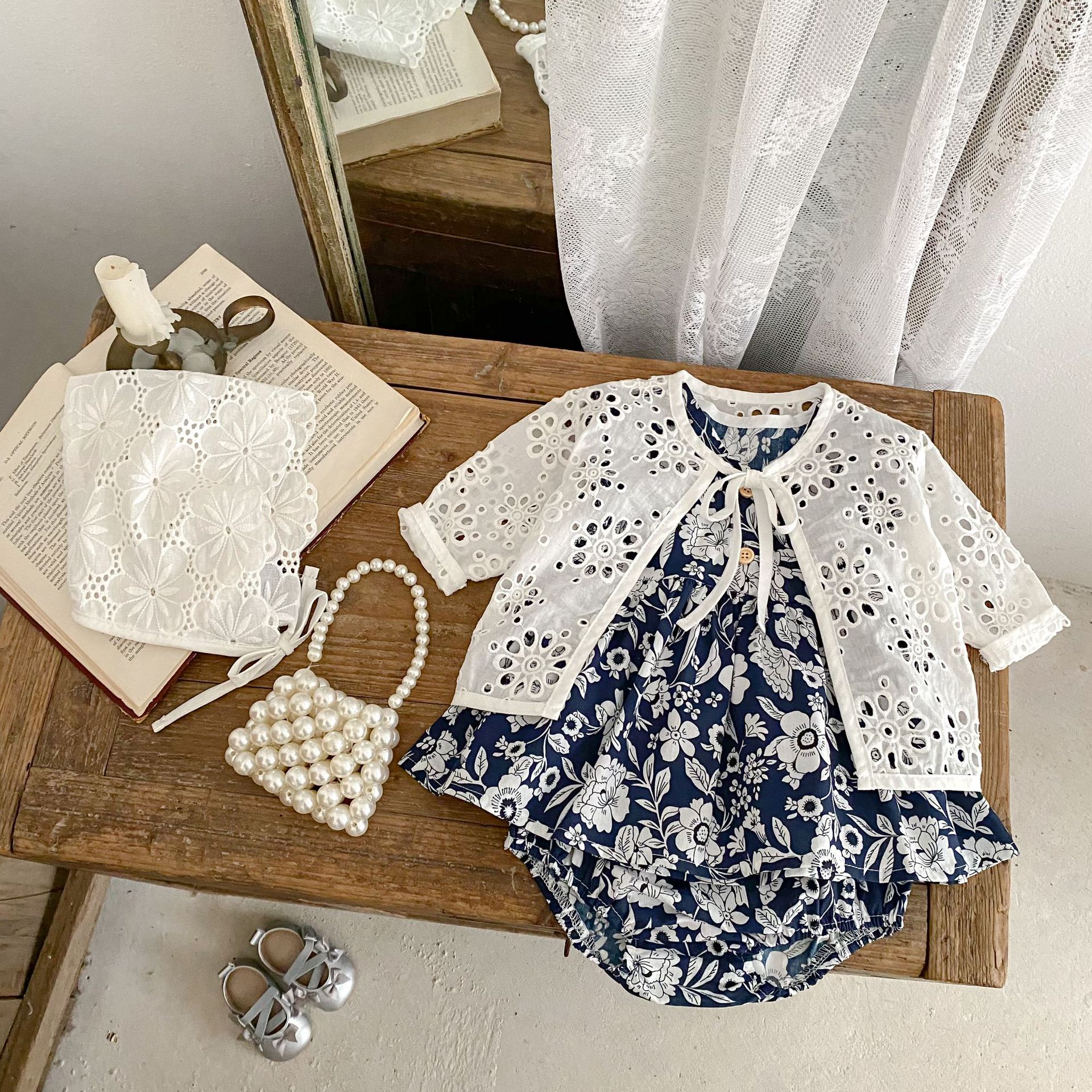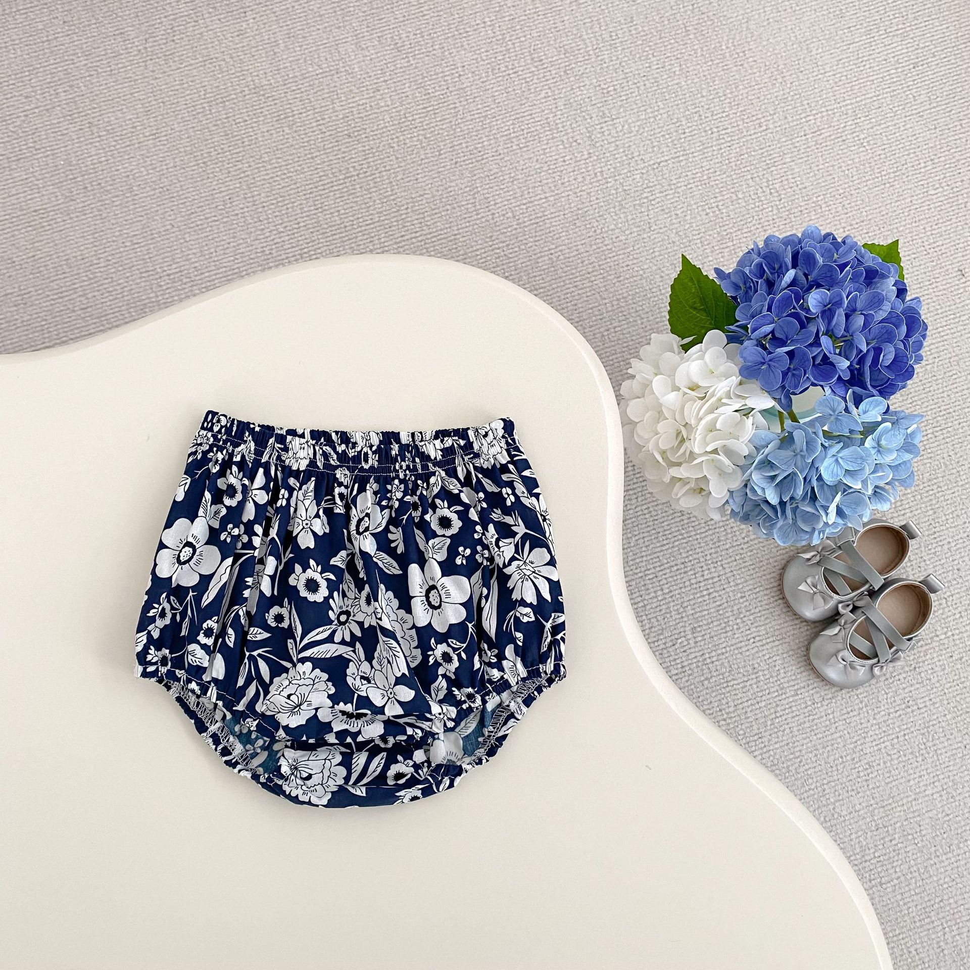 トップスは、落ち着いた色合いの花柄プリントが施されたノースリーブチュニック。ゆったりとしたデザインで、暑い夏でもベビーが快適に過ごせます。ボトムスは、おむつを履いたベビーのお尻を可愛く包み込むブルマパンツ。コットン素材なので肌触りも良く、通気性も抜群です。セットで着用すると統一感のある上品なスタイルが完成し、それぞれ単品でも着回しが楽しめます。夏の普段使いはもちろん、お出かけや記念撮影にも大活躍する、洗練されたセットです。