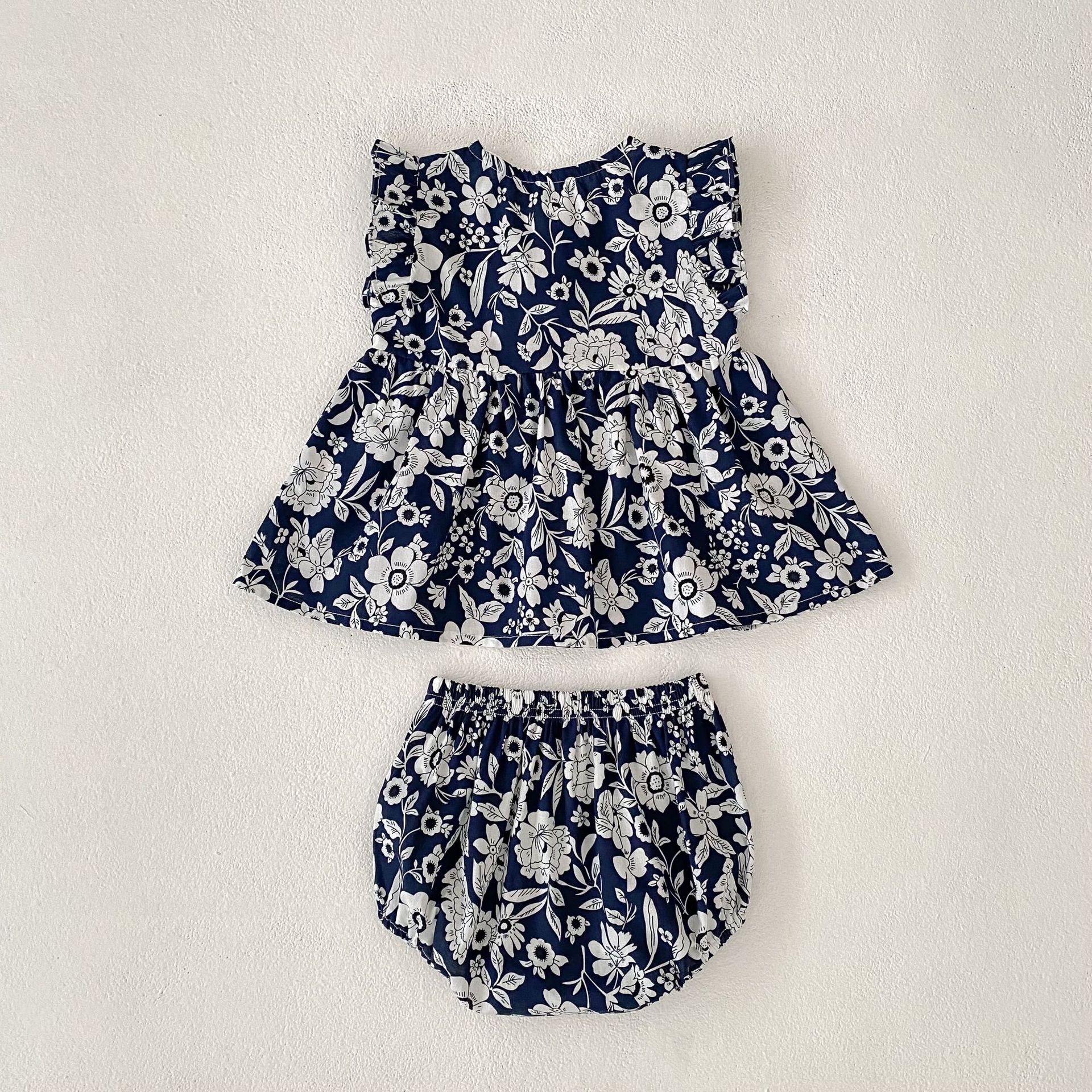 エレガントな花柄が魅力の、花柄シックノースリーブチュニックとブルマパンツのセットアップです。夏のベビーガールにぴったりの、おしゃれな2点セット。