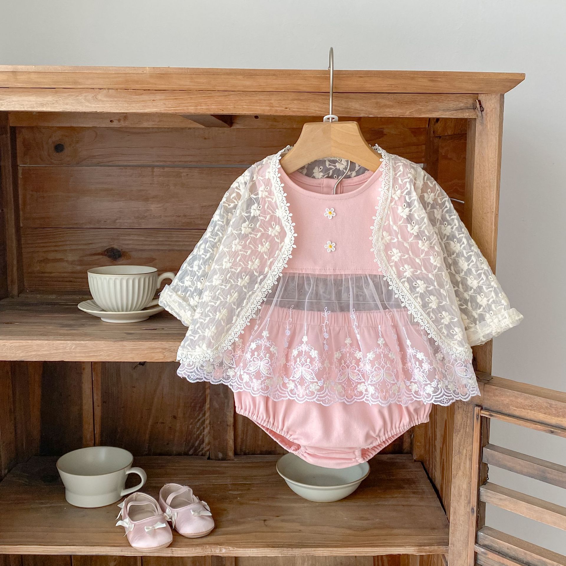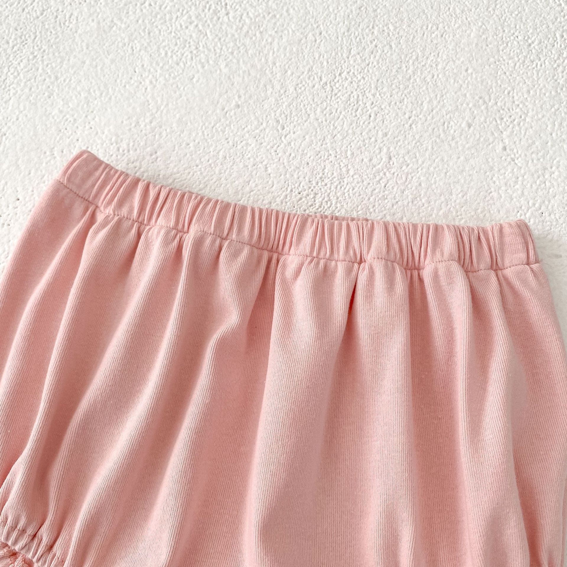 トップスは、ふんわりとしたチュールと繊細なレースが魅力のノースリーブブラウス。涼しげなデザインで、暑い夏でもお子さんが快適に過ごせます。ボトムスは、おむつを履いたベビーのお尻を可愛く包み込むブルマパンツ。セットで着用すると、まるでお姫様のような愛らしいスタイルが完成し、それぞれ単品でも着回しが楽しめます。お祝いの席や写真撮影にも大活躍する、とびきりキュートなセットです。