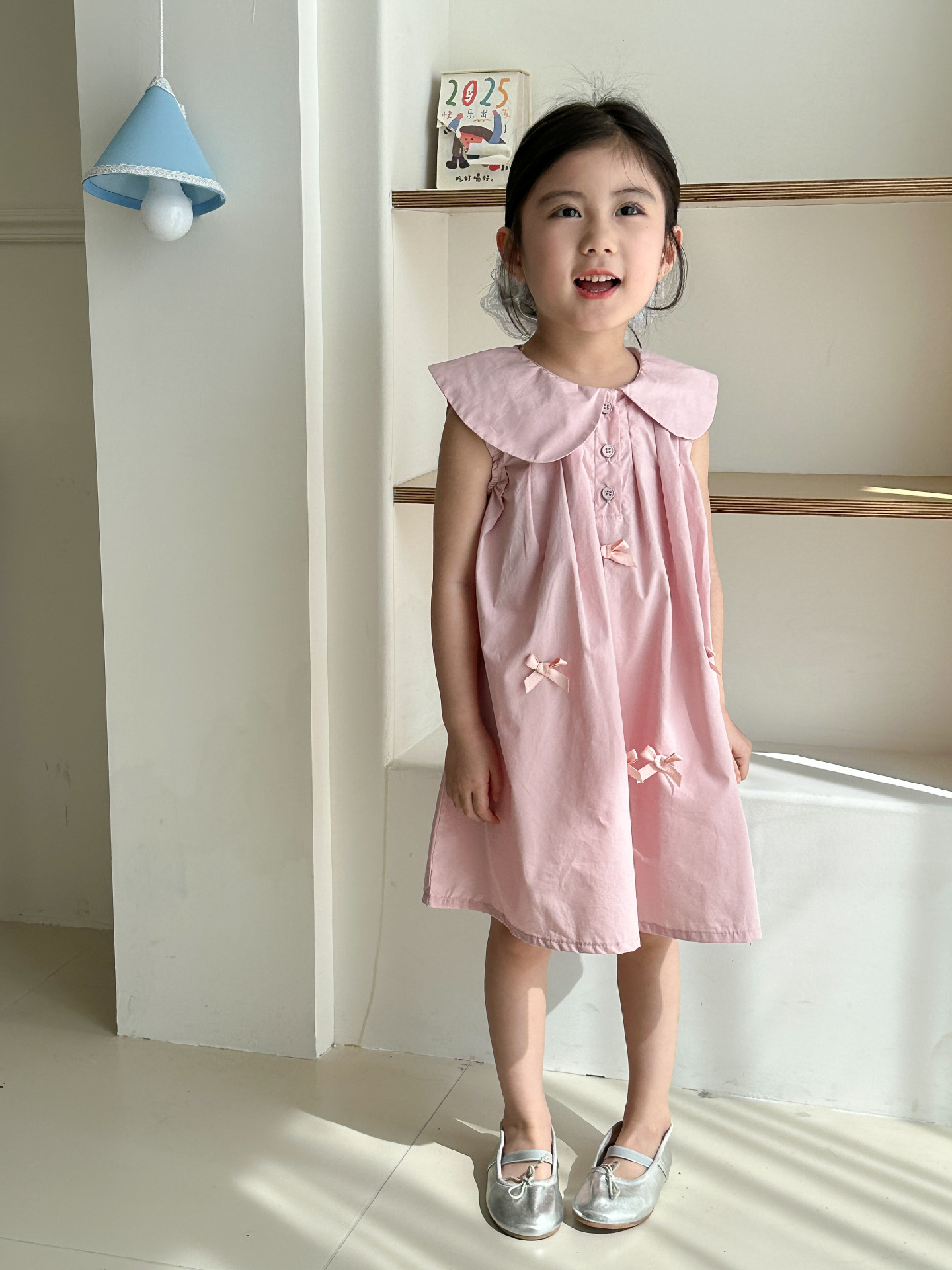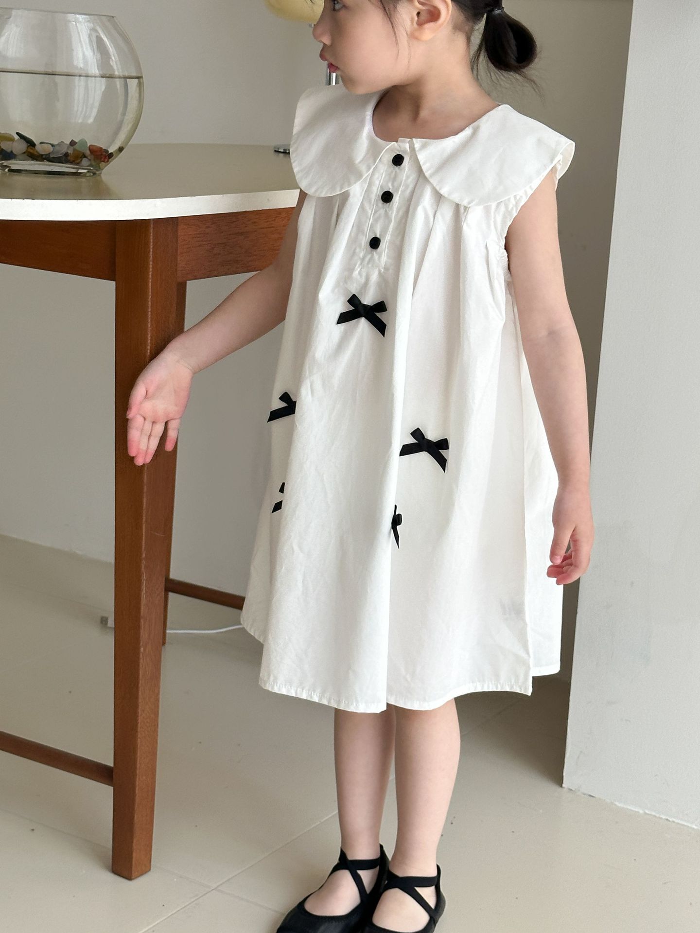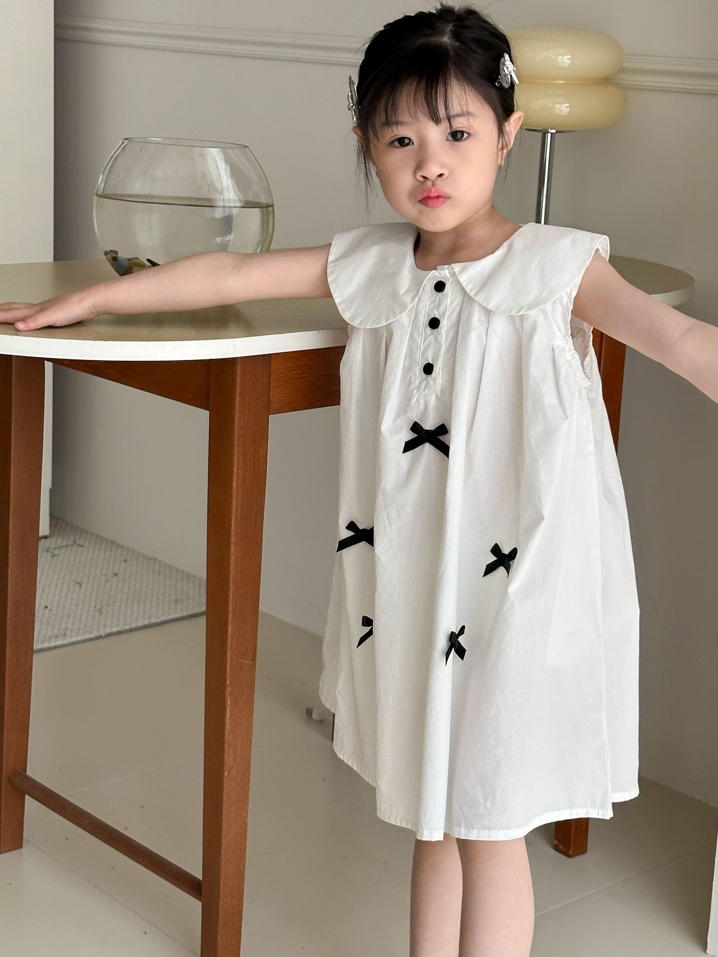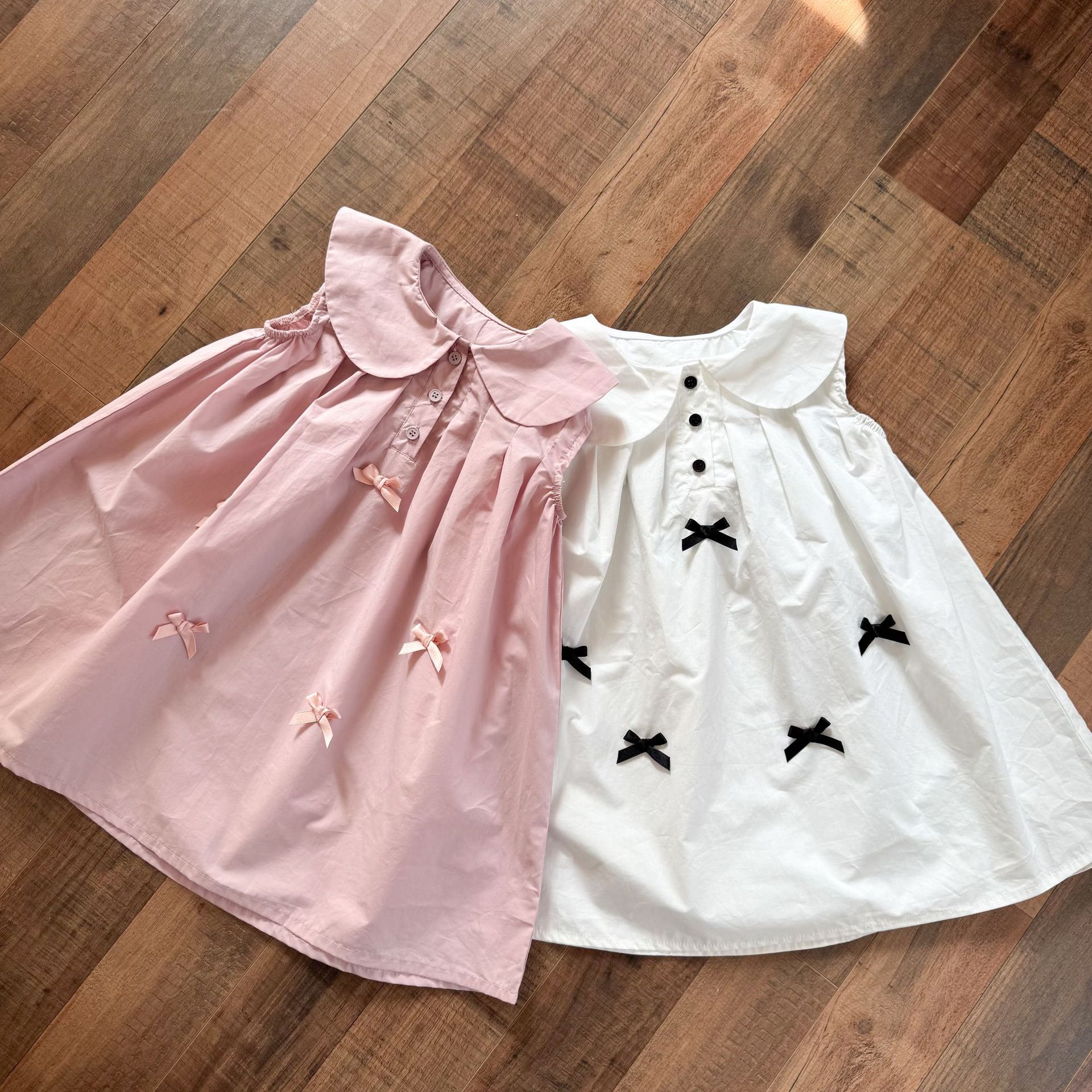 #キッズワンピース #ノースリーブワンピース #丸襟 #リボン #夏服 #女の子ファッション
