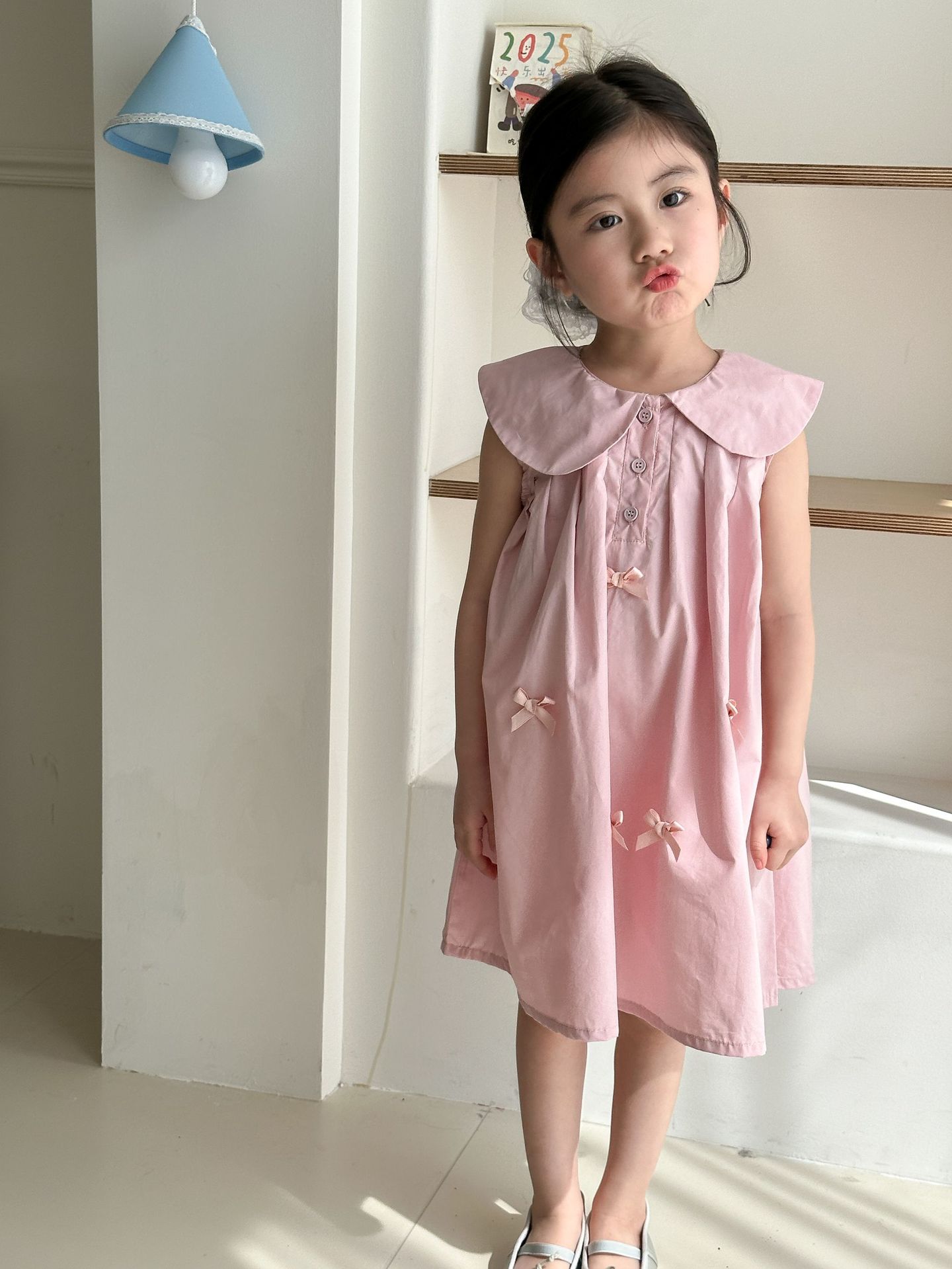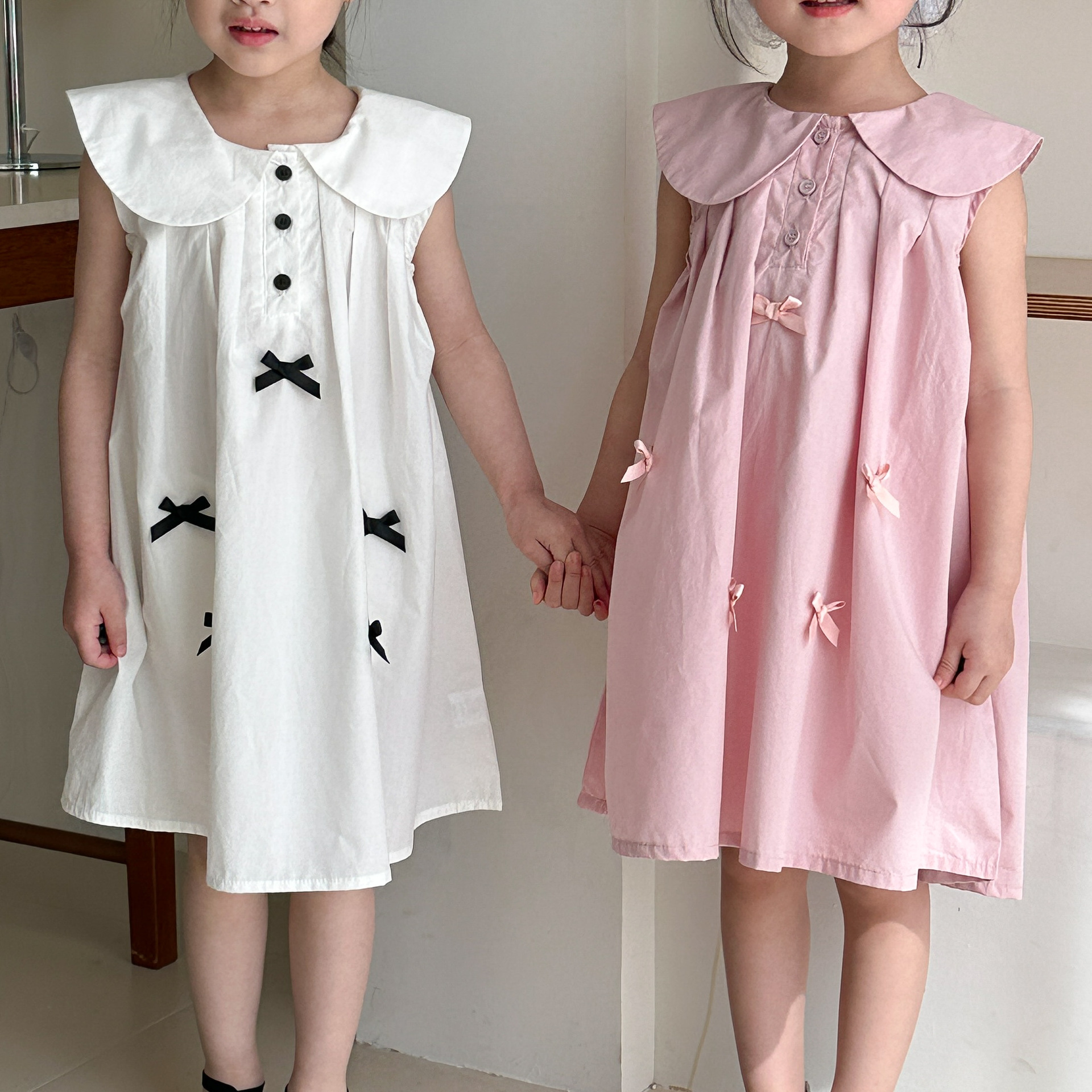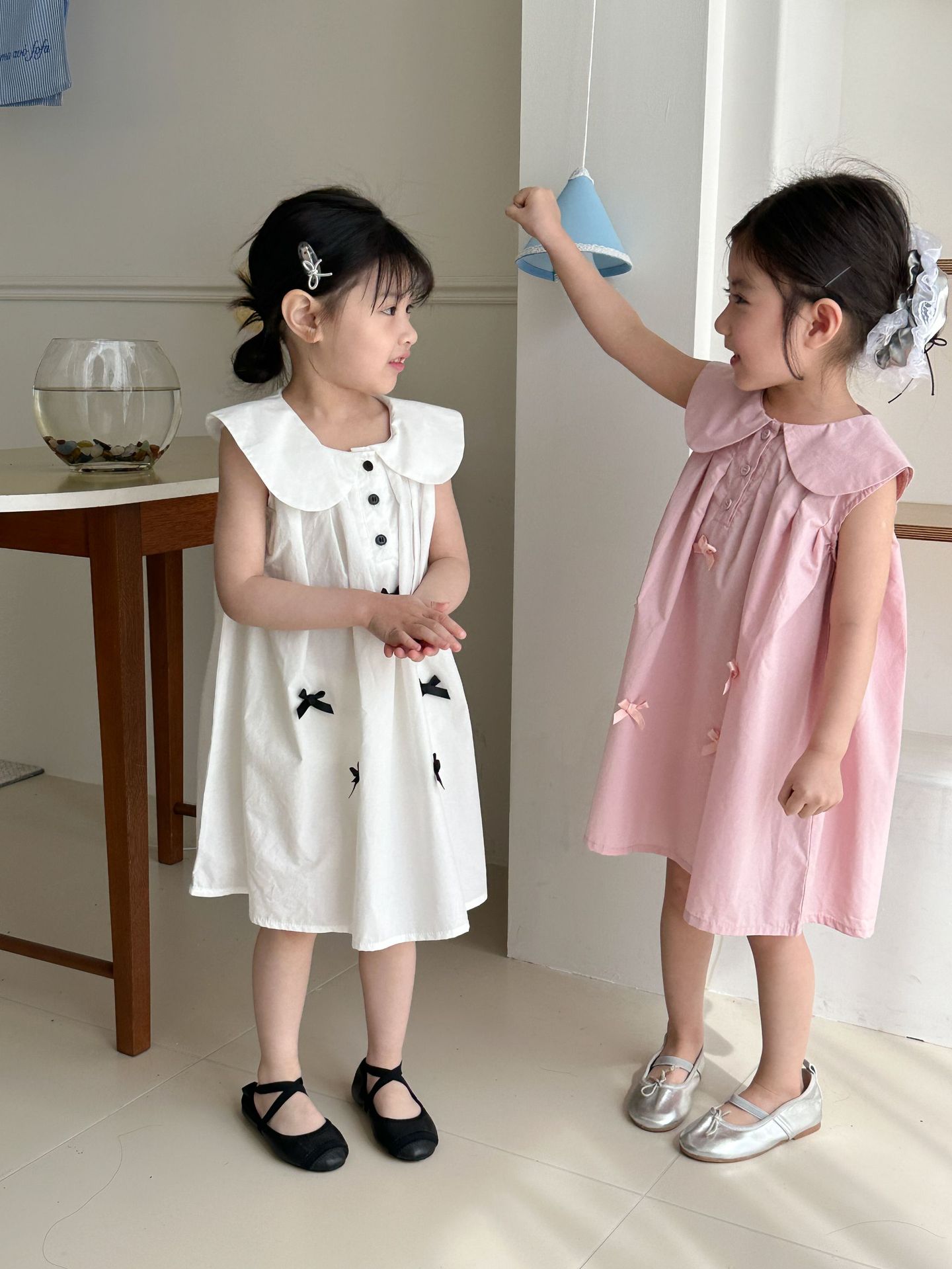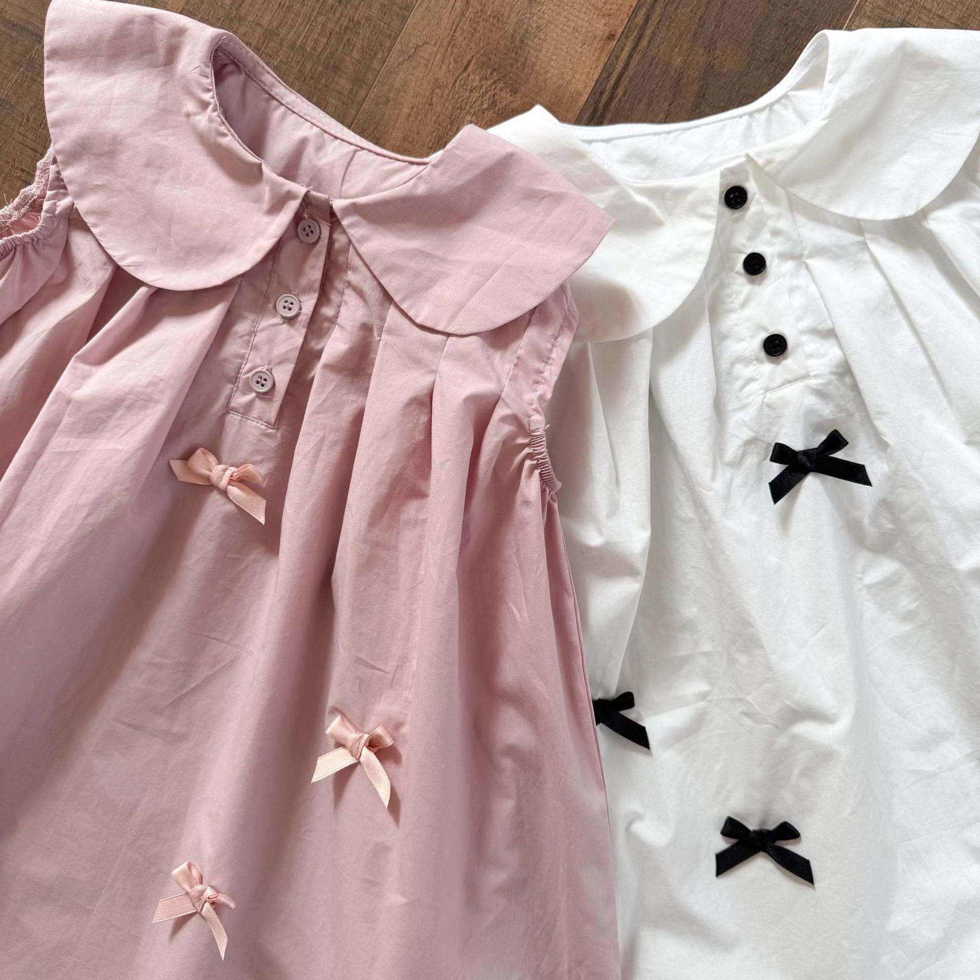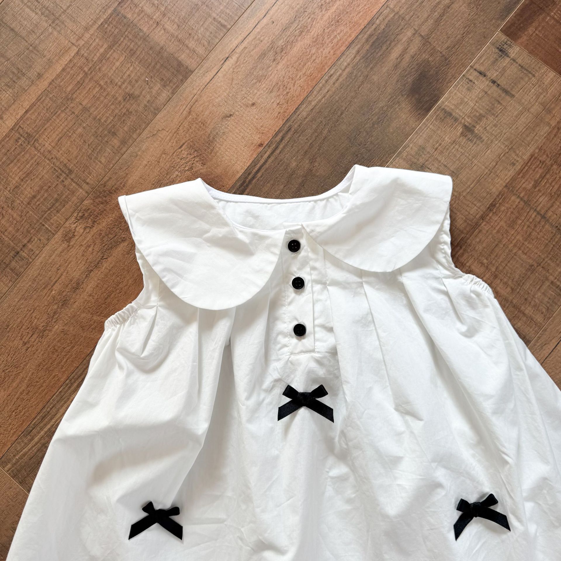#キッズワンピース #ノースリーブワンピース #丸襟 #リボン #夏服 #女の子ファッション