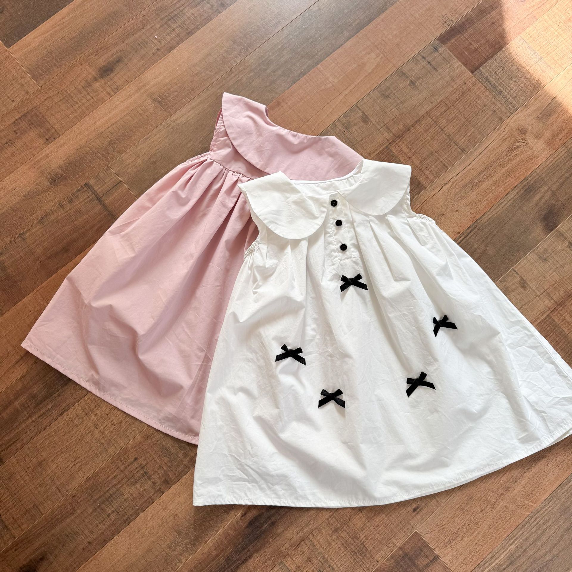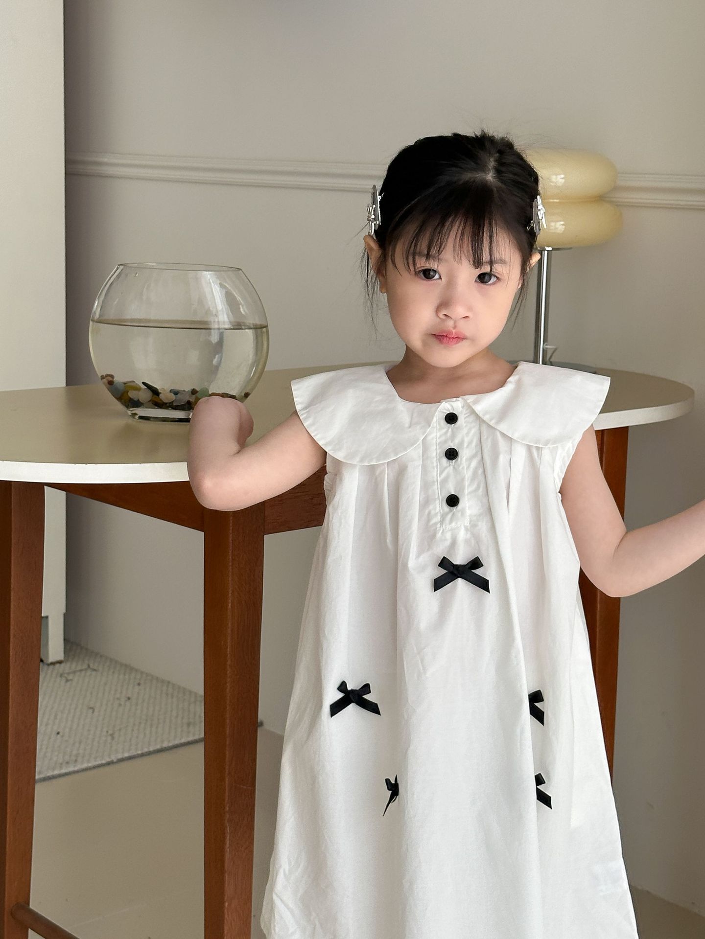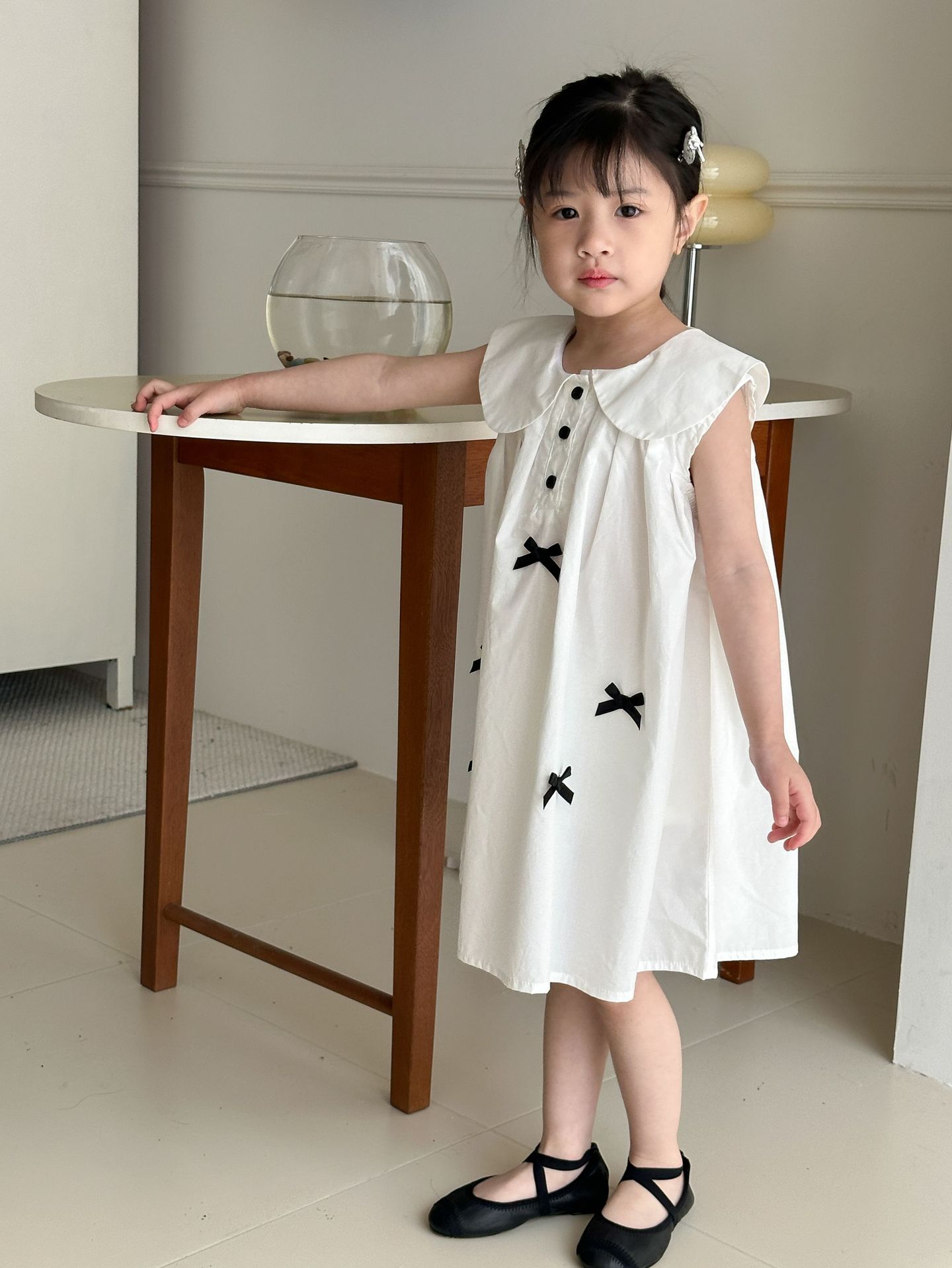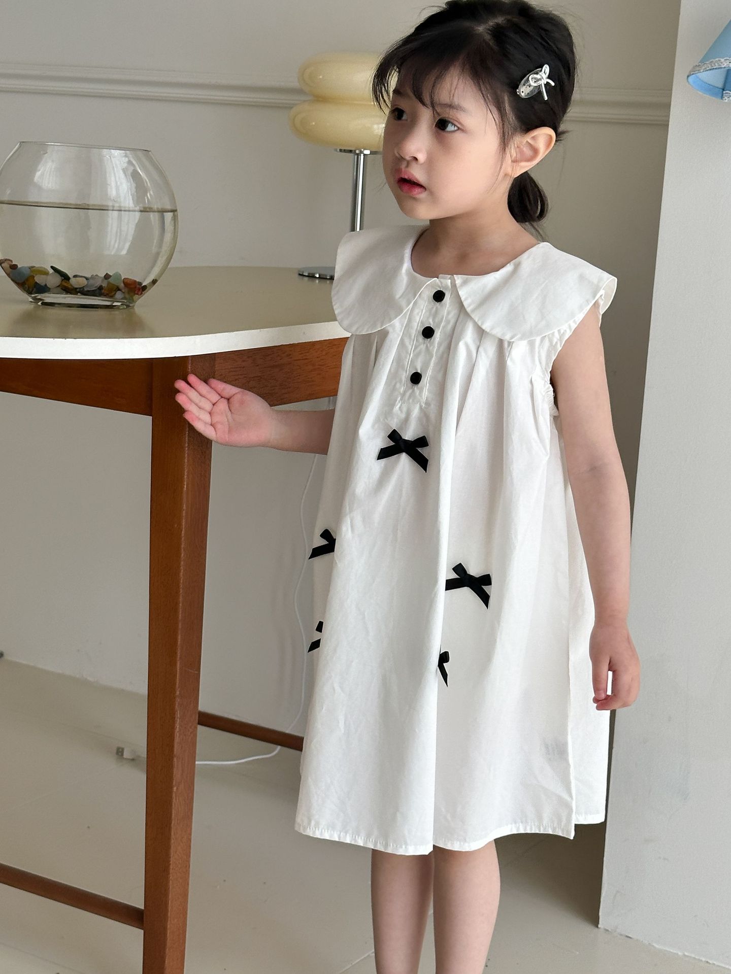 #キッズワンピース #ノースリーブワンピース #丸襟 #リボン #夏服 #女の子ファッション
