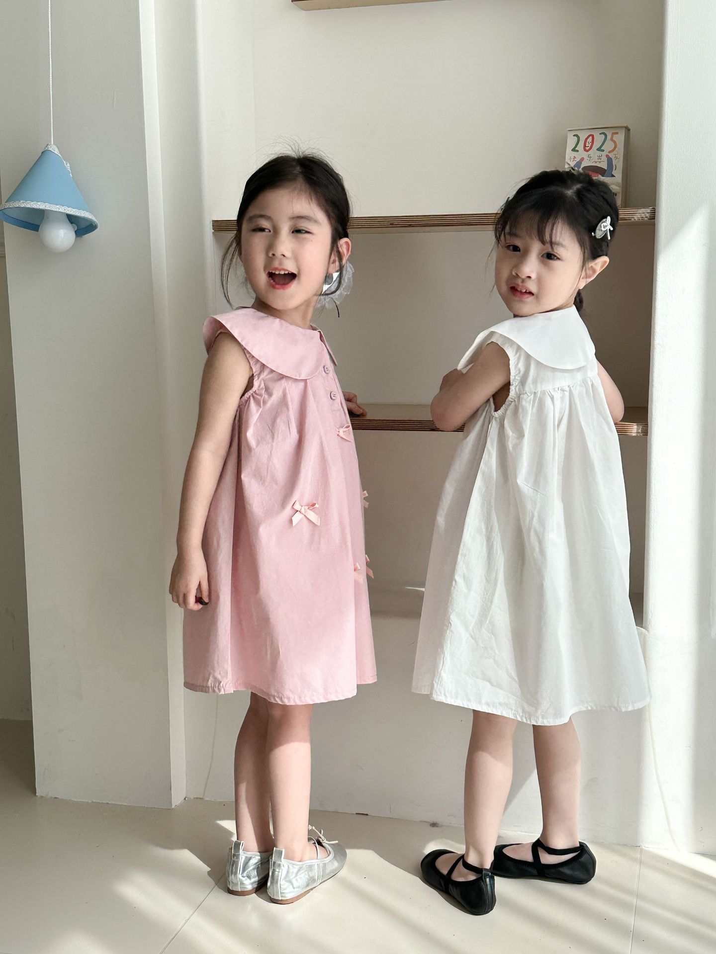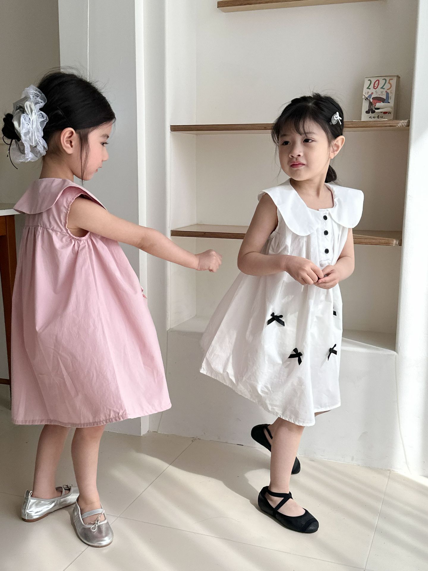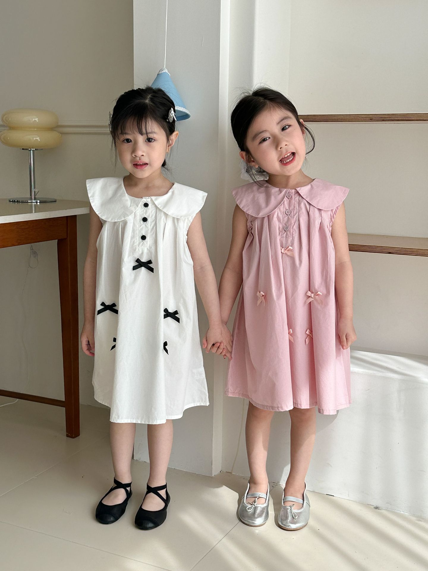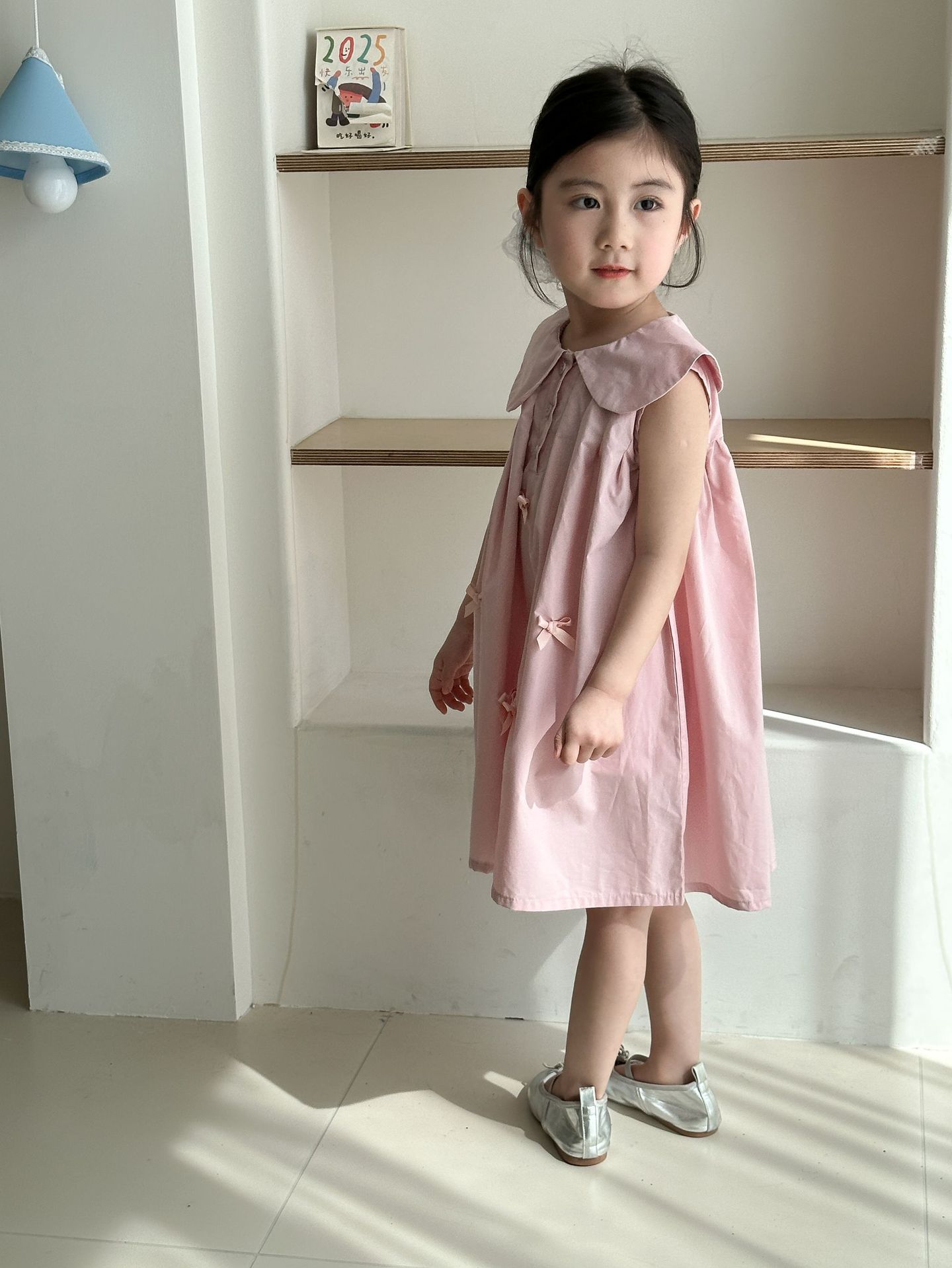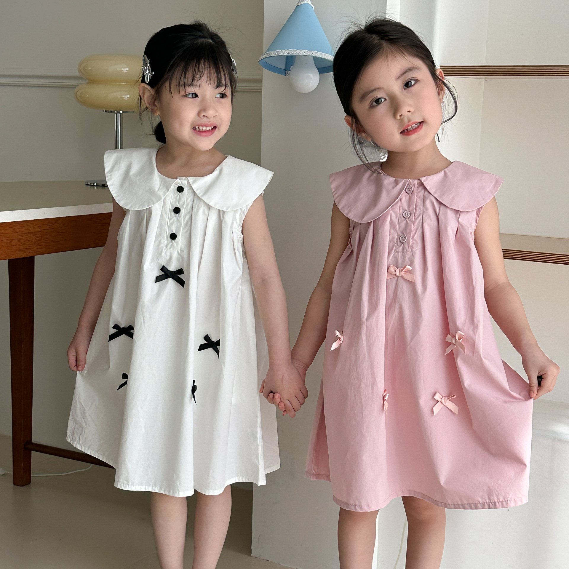 #キッズワンピース #ノースリーブワンピース #丸襟 #リボン #夏服 #女の子ファッション