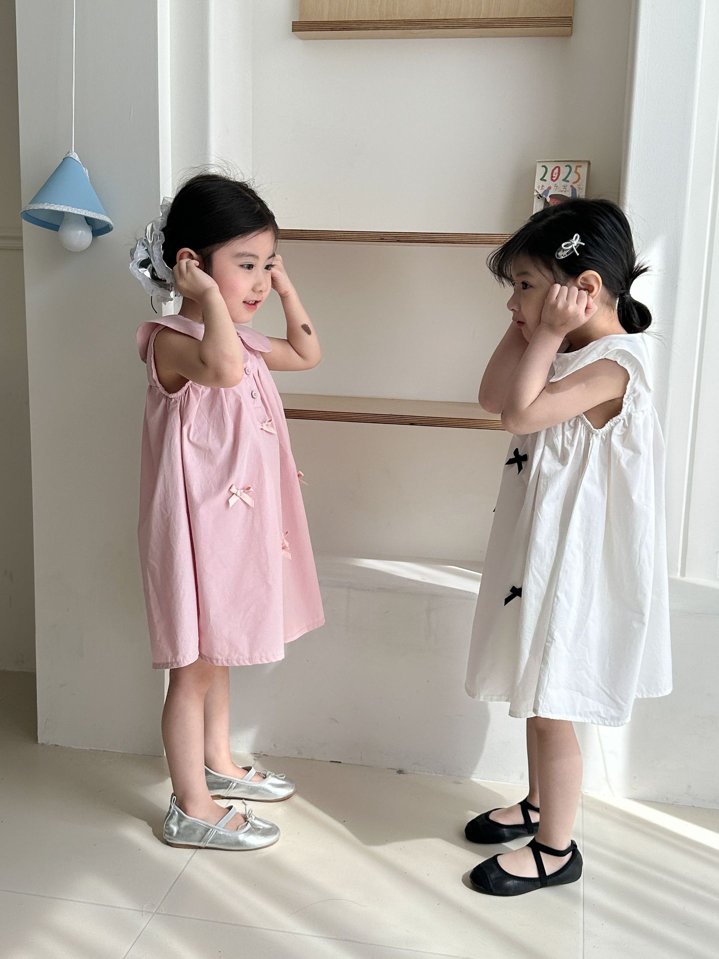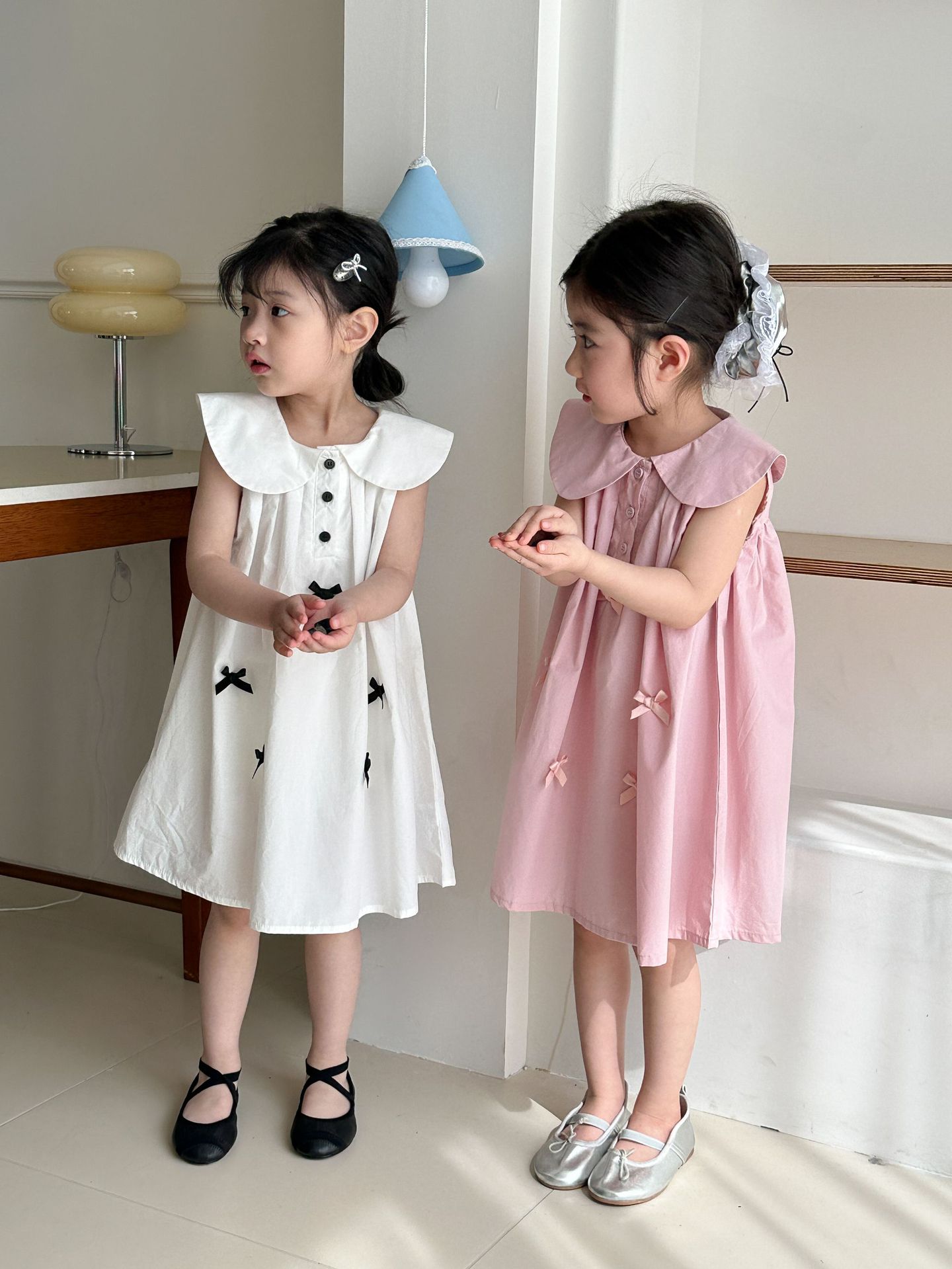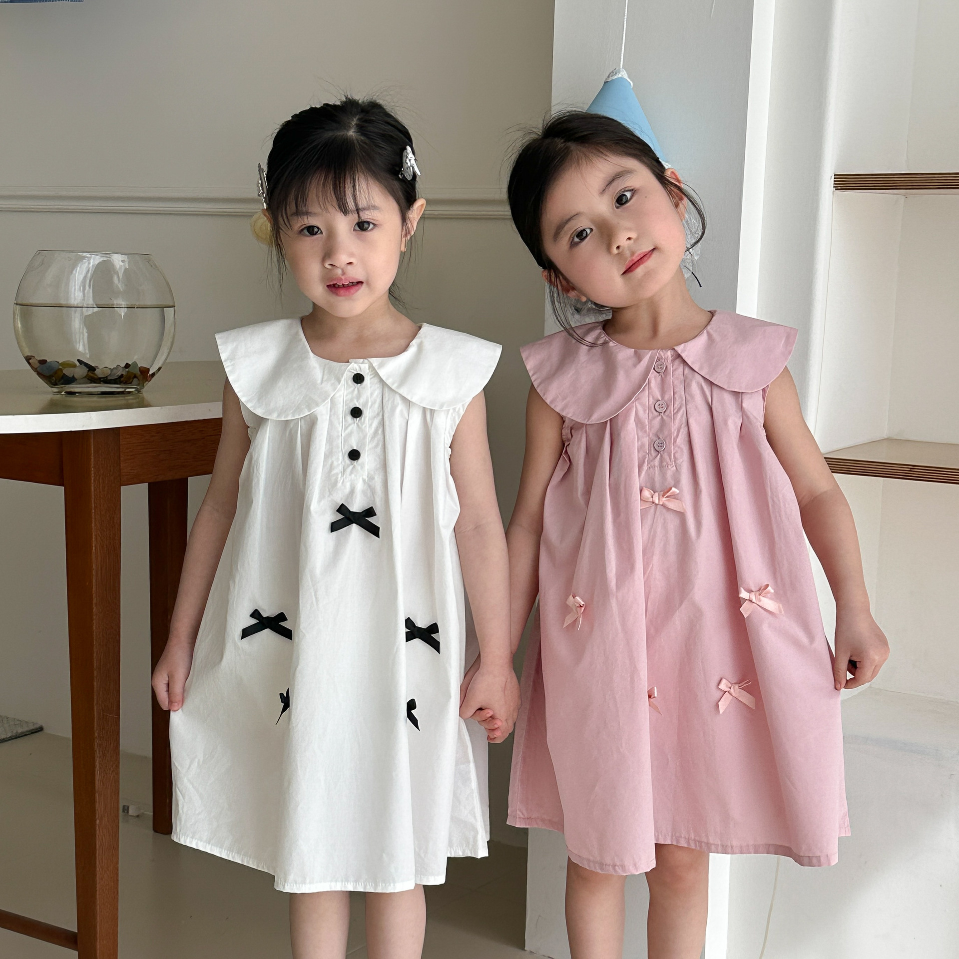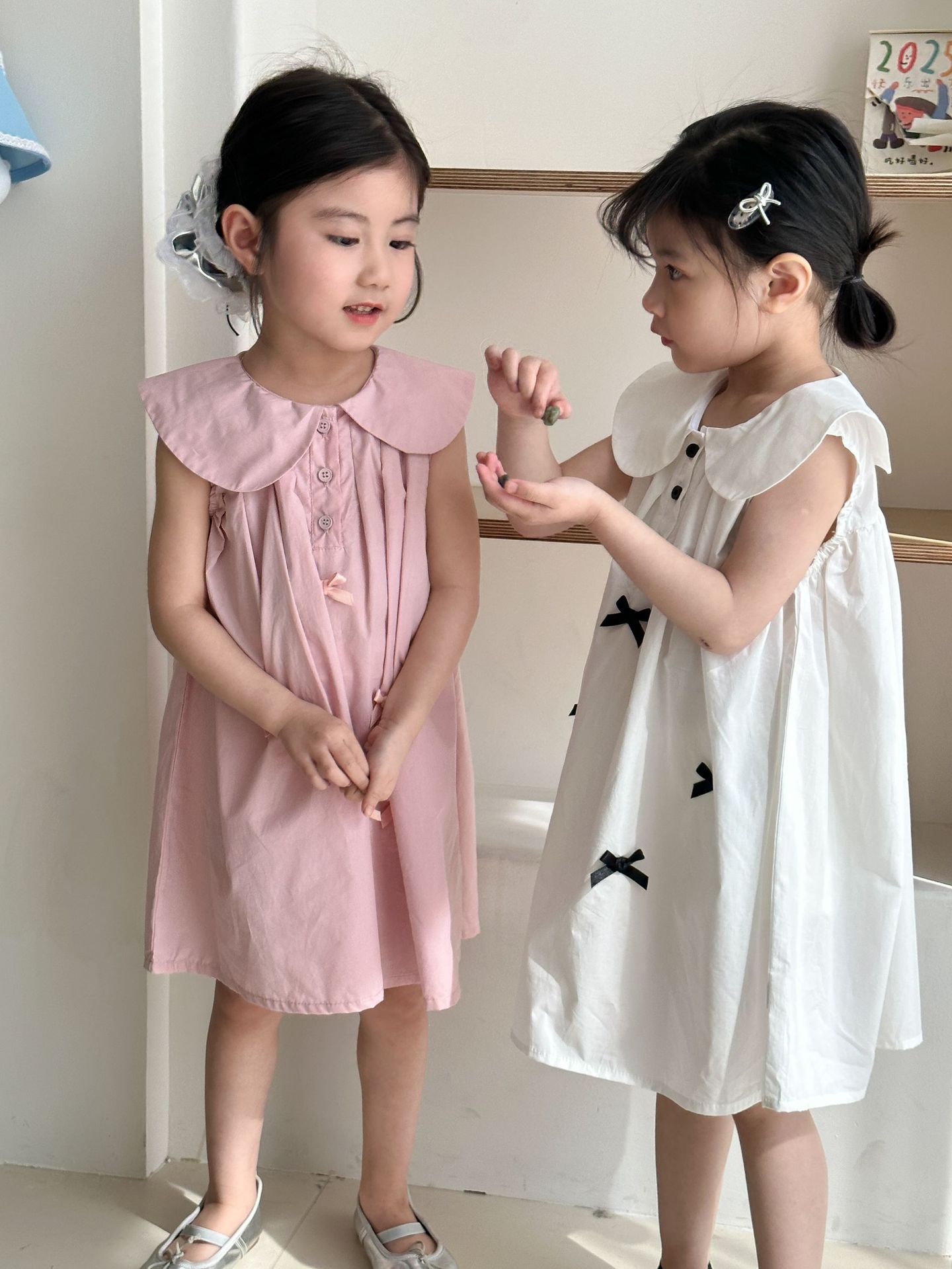 #キッズワンピース #ノースリーブワンピース #丸襟 #リボン #夏服 #女の子ファッション
