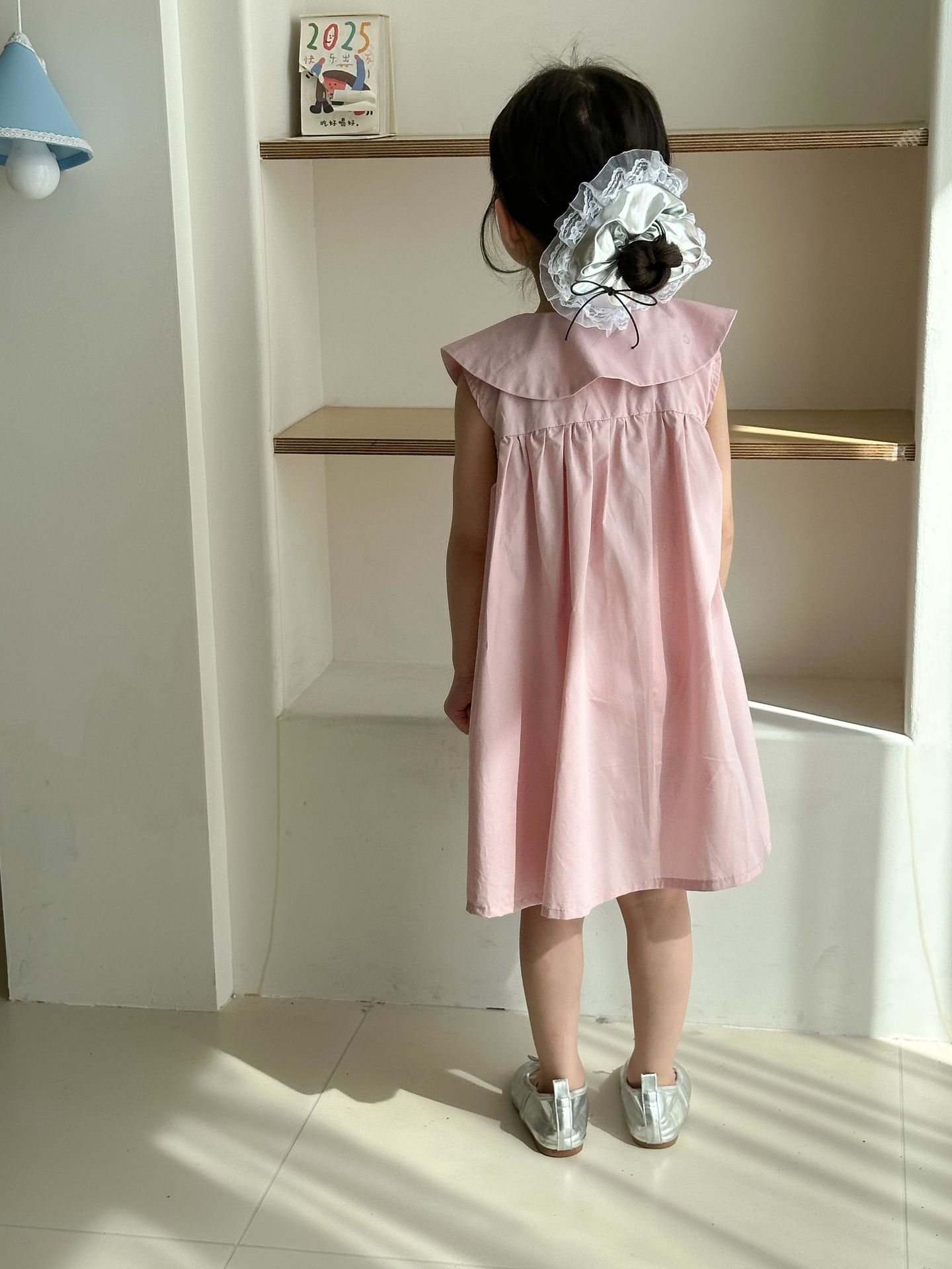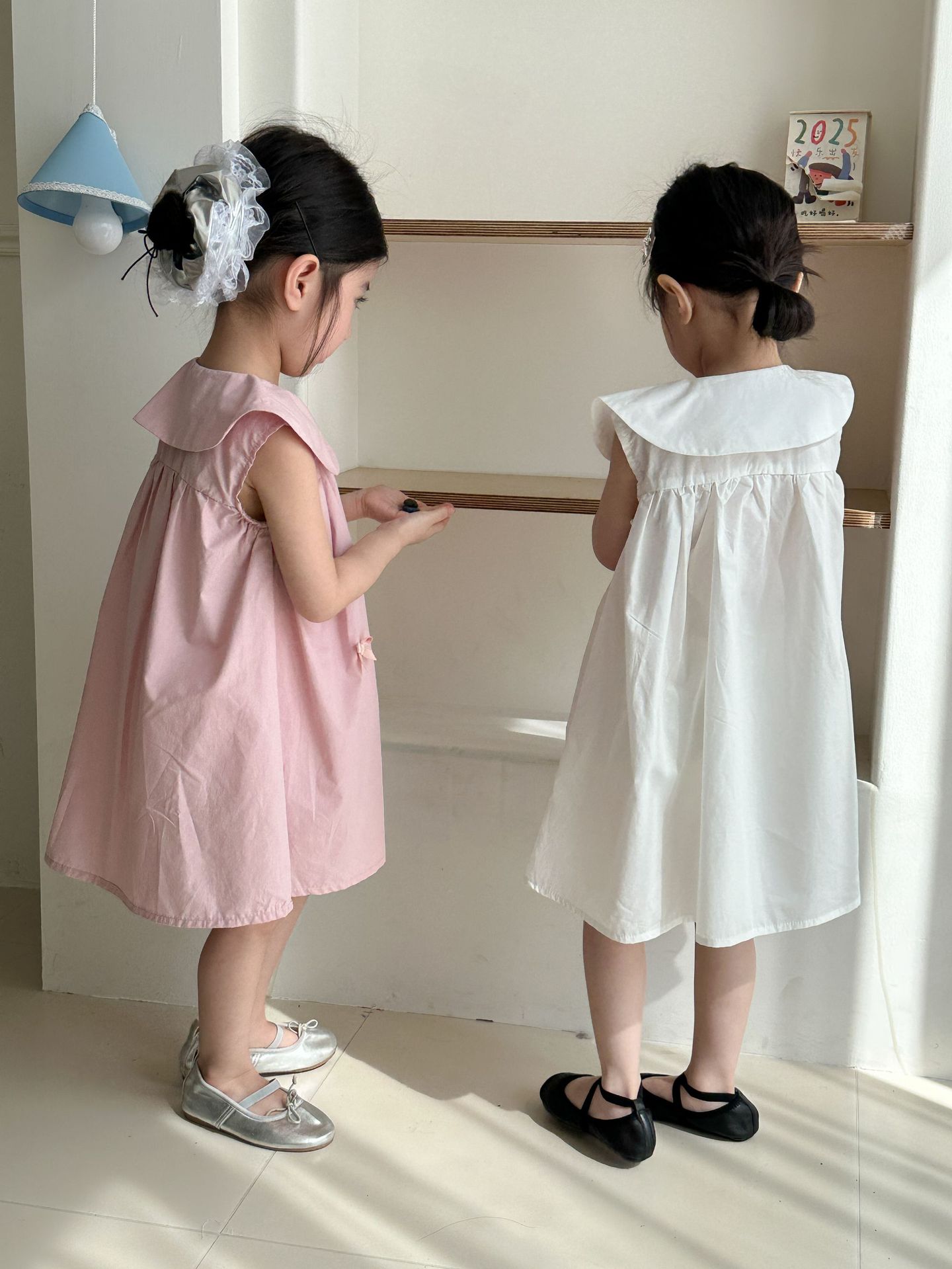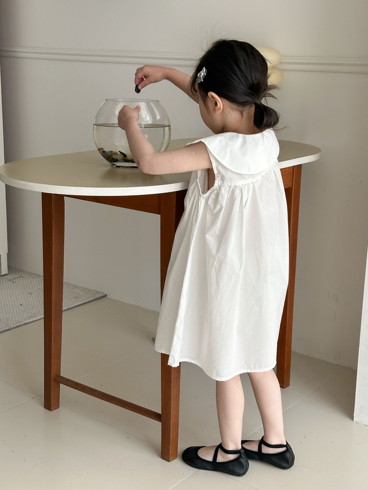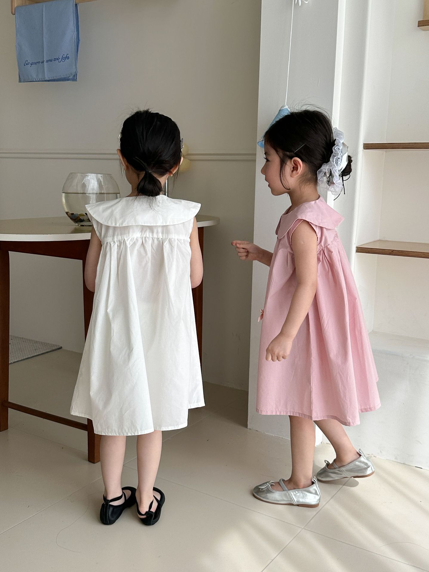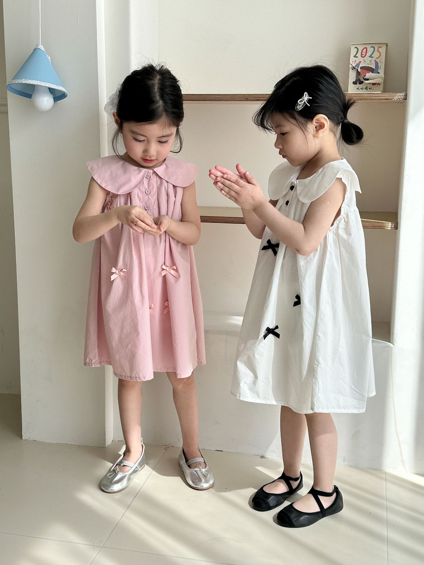 #キッズワンピース #ノースリーブワンピース #丸襟 #リボン #夏服 #女の子ファッション