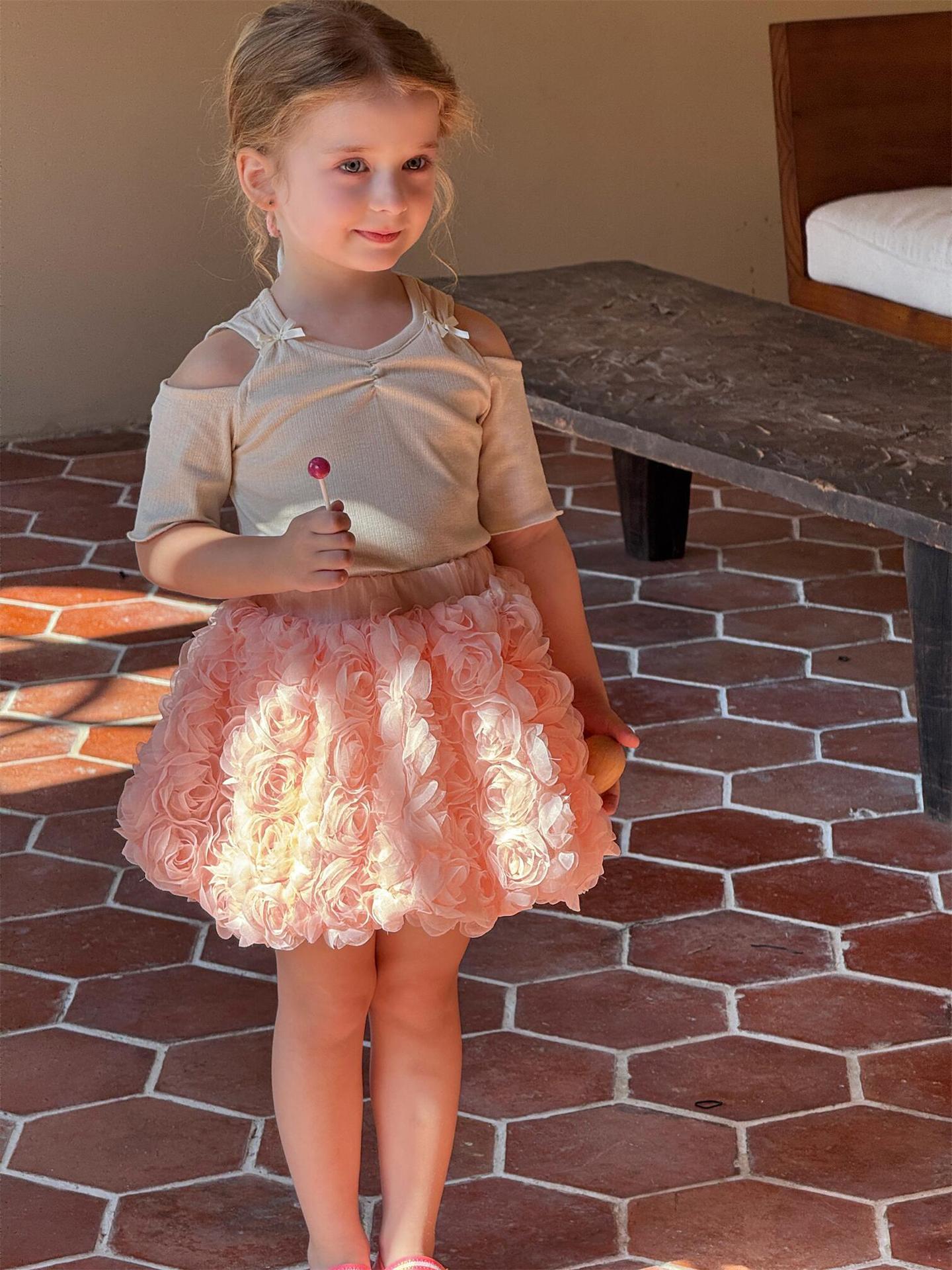#キッズスカート #ミニスカート #フラワースカート #チュールスカート #夏服 #女の子ファッション #プリンセススカート