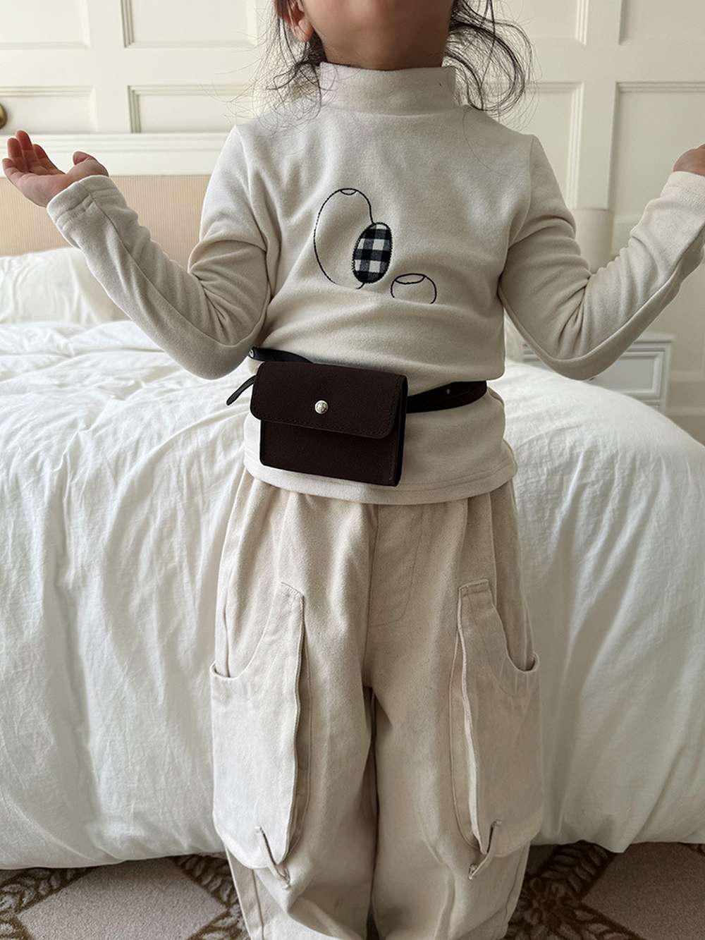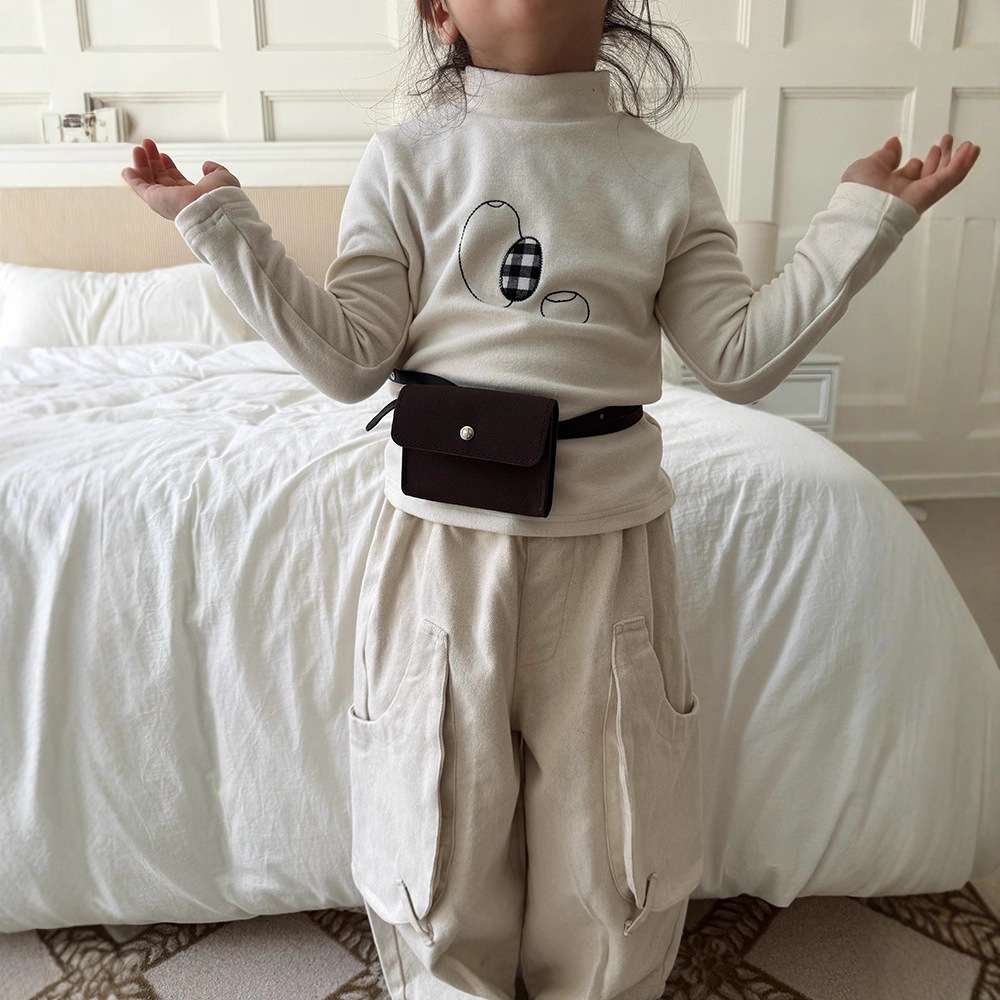 ふんわりと暖かな裏起毛素材の長袖ハイネックトップスは、秋冬のインナースタイルを快適に彩る子ども服です。首元を優しく包み込むモックネックデザインに、アップリケ刺繍が施され、カジュアルながらも可愛らしいアクセントを添えます。レイヤードにも一枚着にも活躍するこのカットソーは、着回し力が高く、キッズのコーディネートに重宝するトップスです。