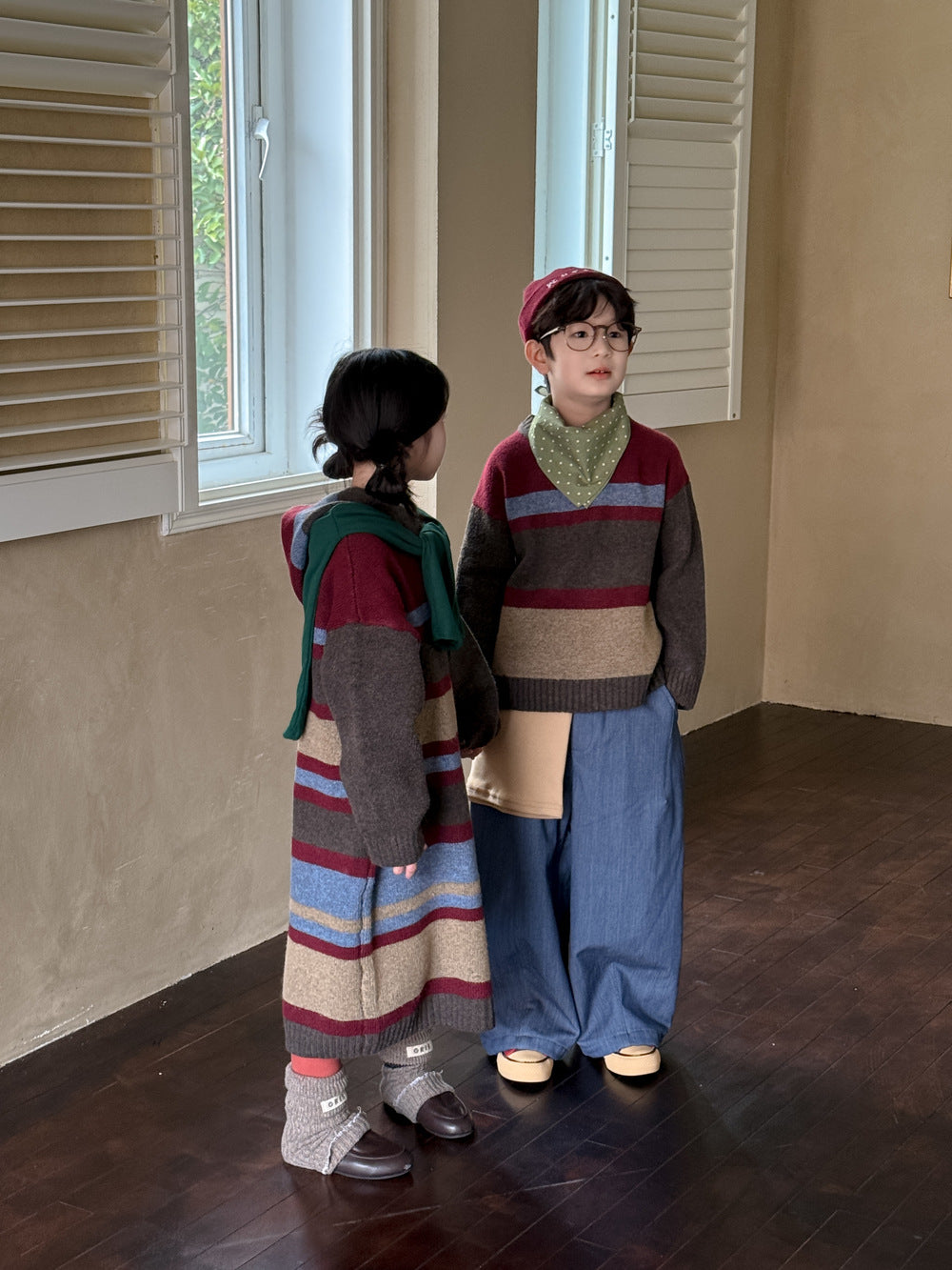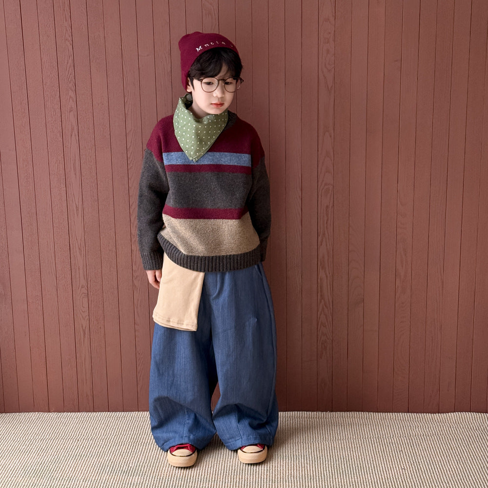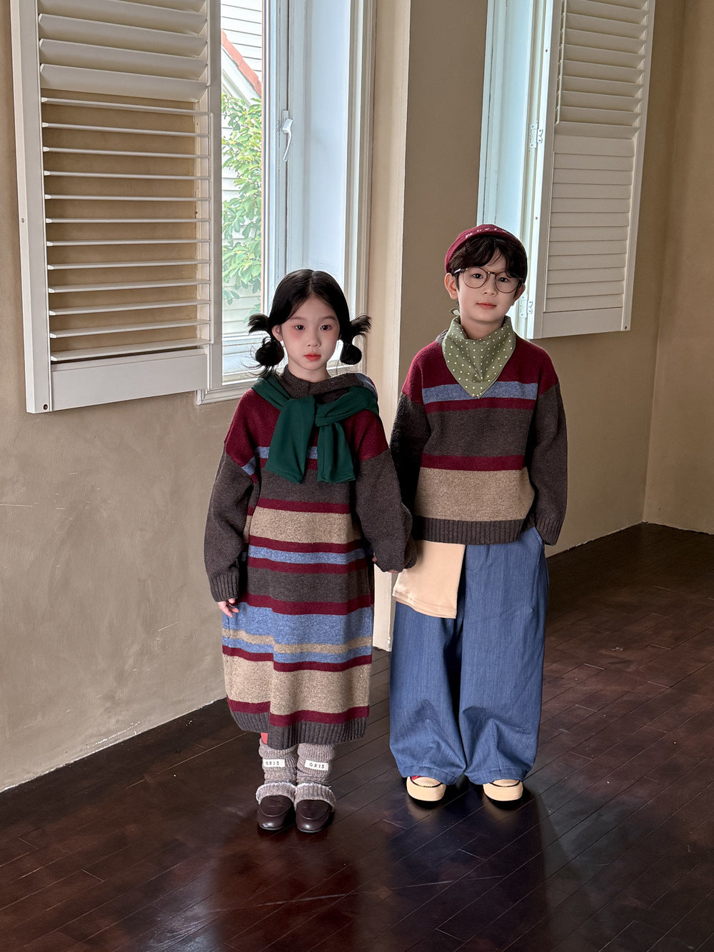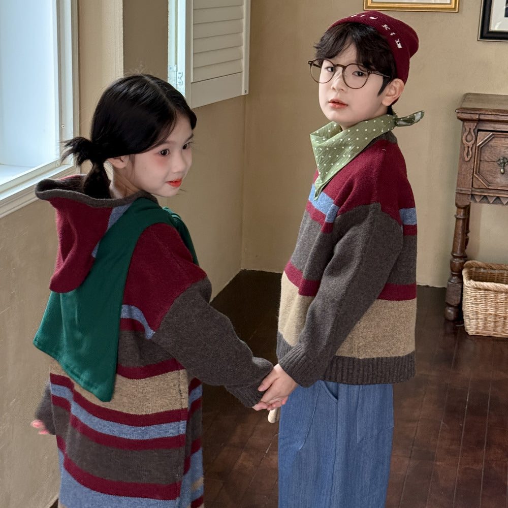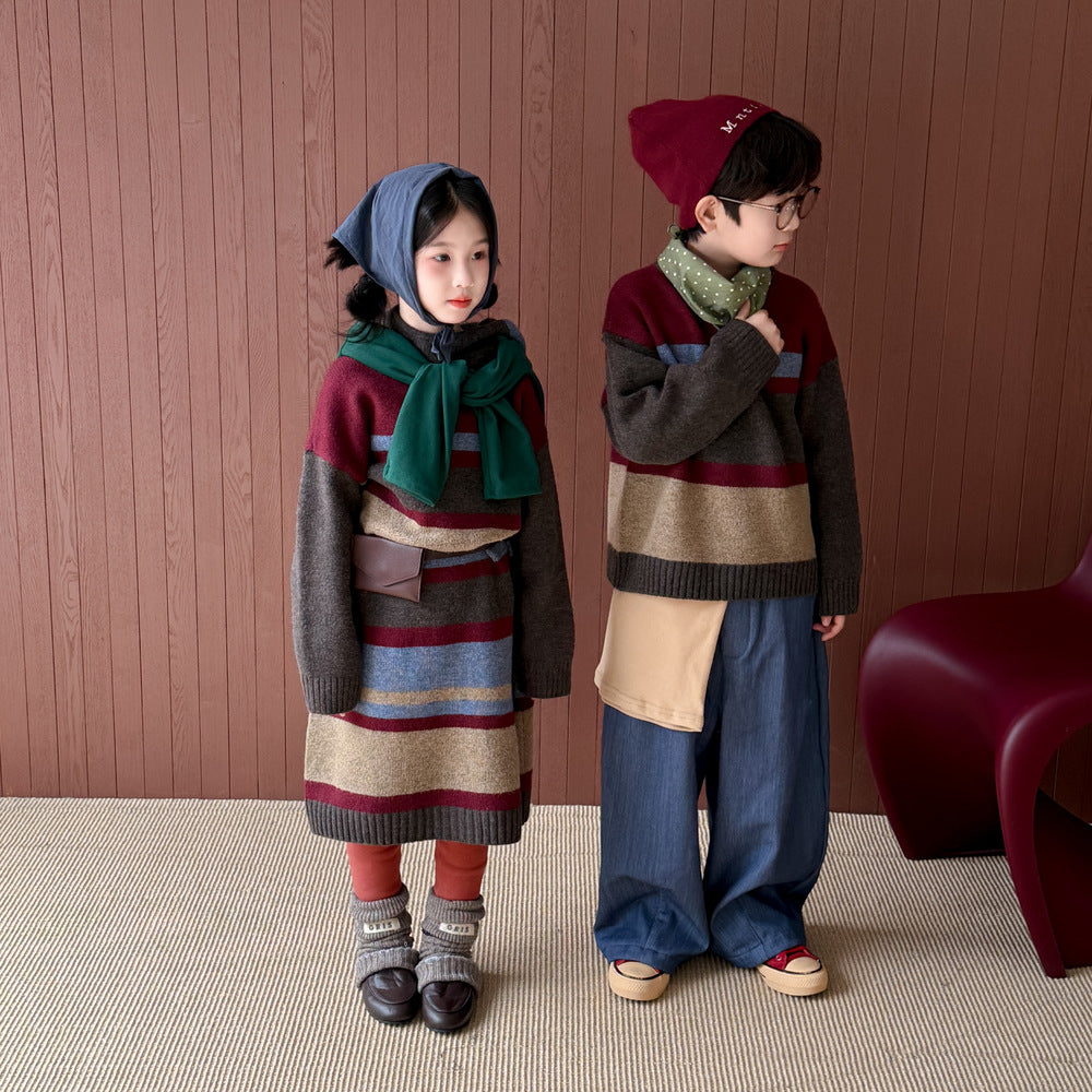 ニットワンピース/セーター キッズ ボーダー柄 厚手 ルーズフィット 兄弟姉妹 お揃い【mh0011676】
