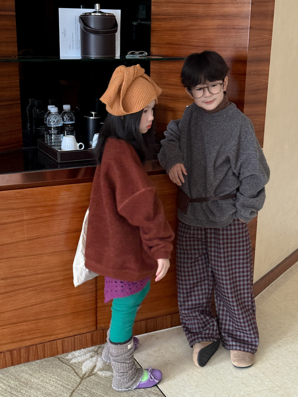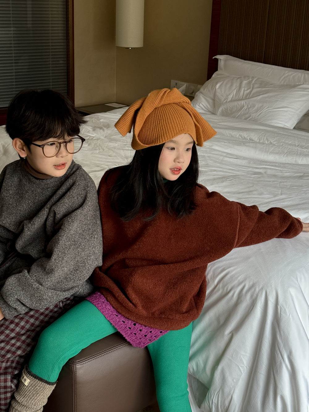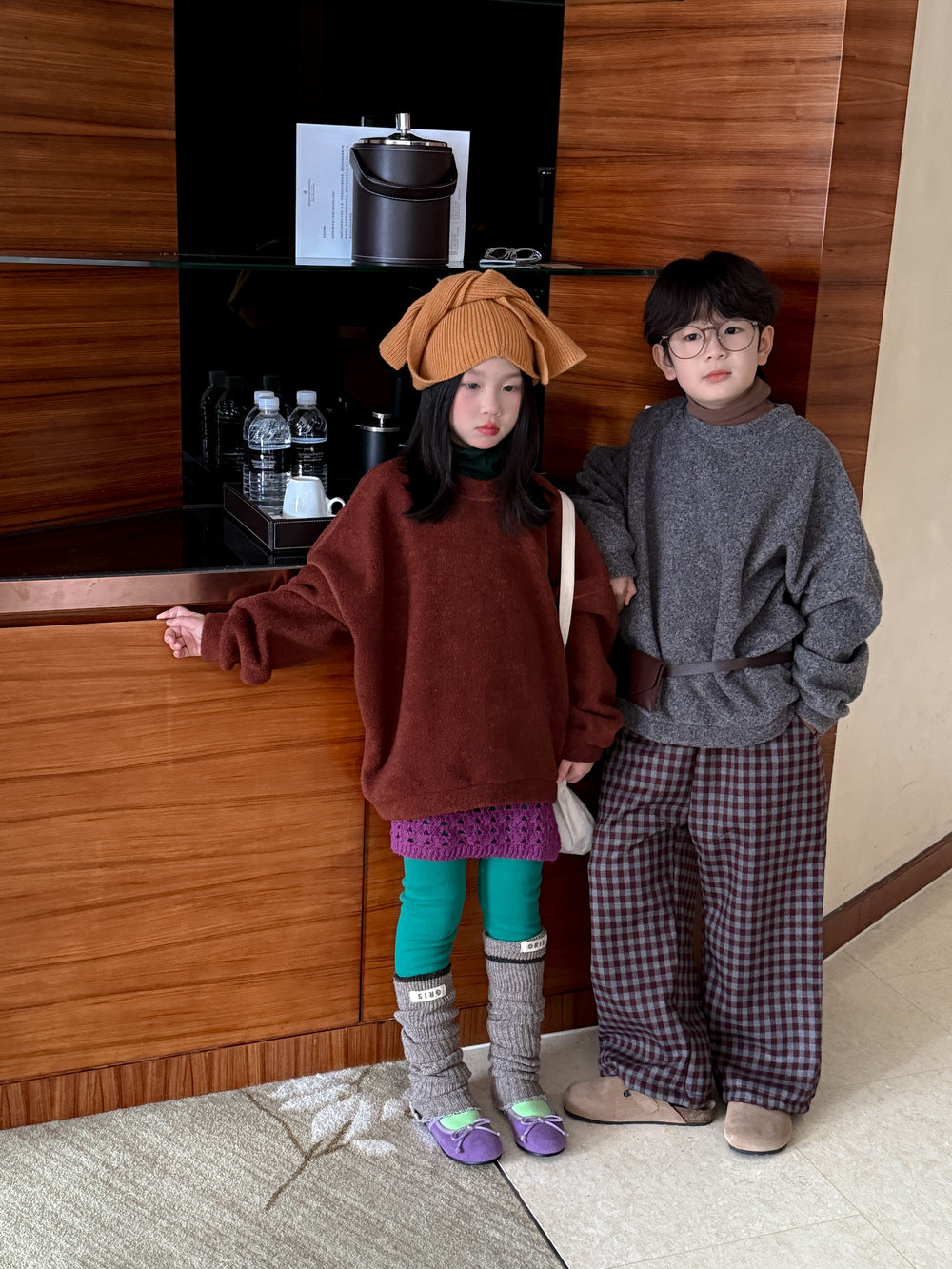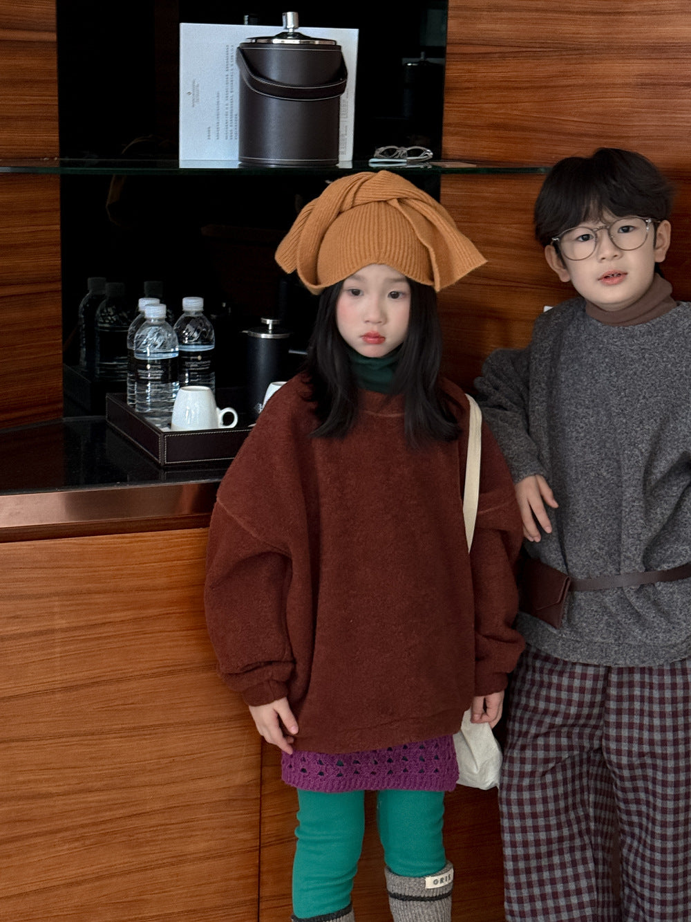 スウェットシャツ キッズ 裏起毛 厚手 クルーネック 無地 ルーズフィット トップス【mh0011683】