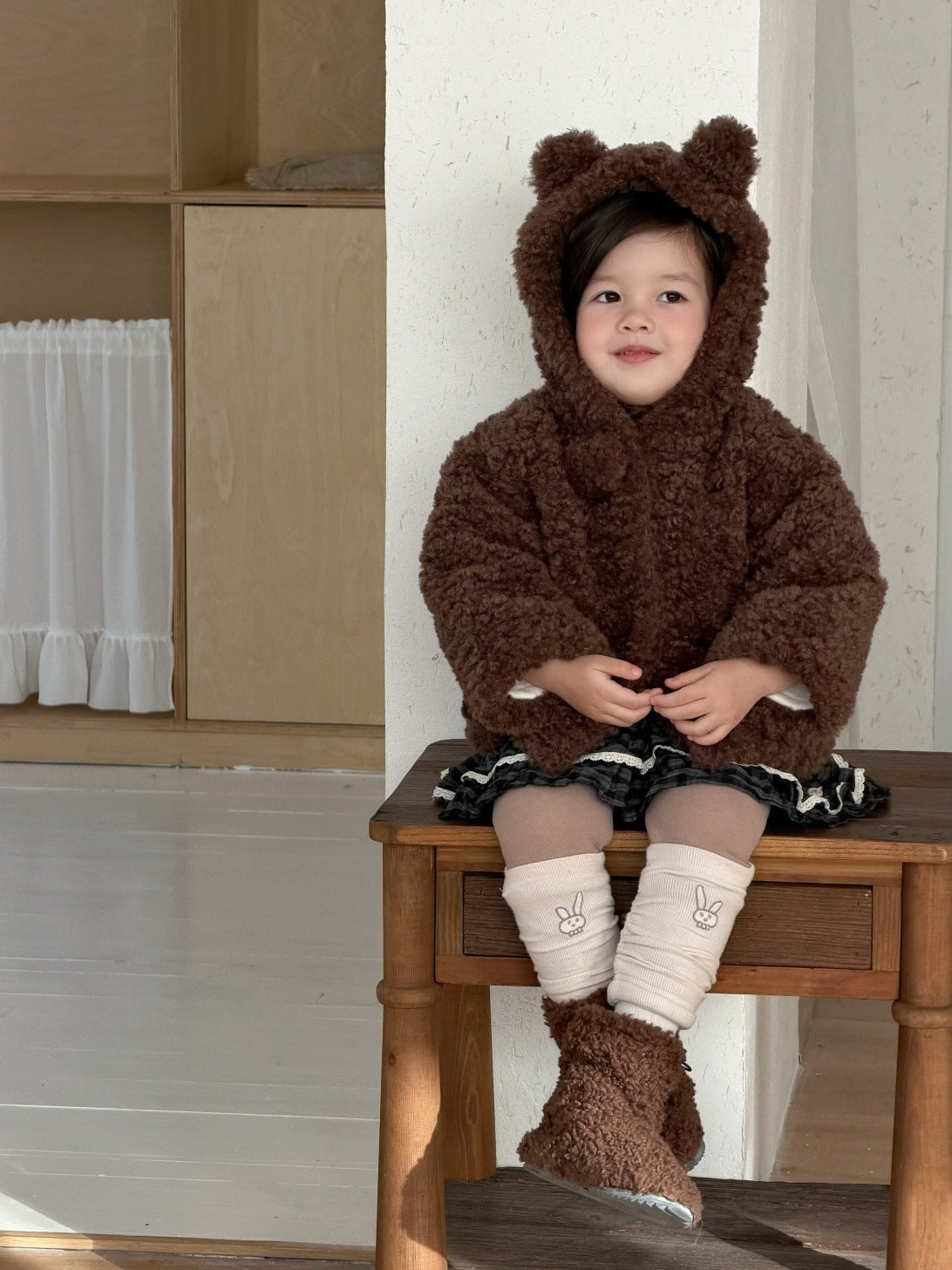 ベビートップス ダブルラッフル襟裏フリース長袖Tシャツブラウス【mh0008206】