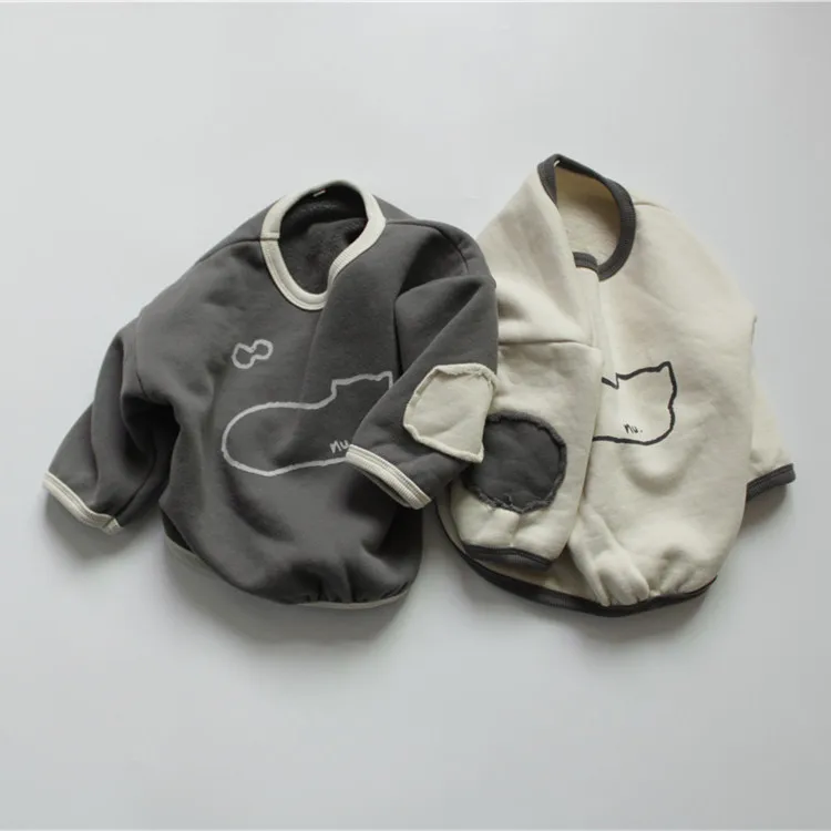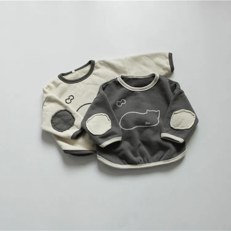 キッズスウェットシャツ 裏起毛 ねこ 猫プリント パッチワーク スウェットトップス 2カラー ユニセックス 男の子 女の子 子供服
