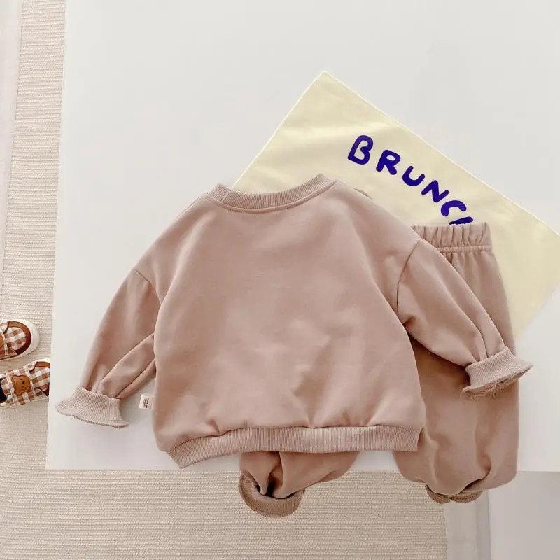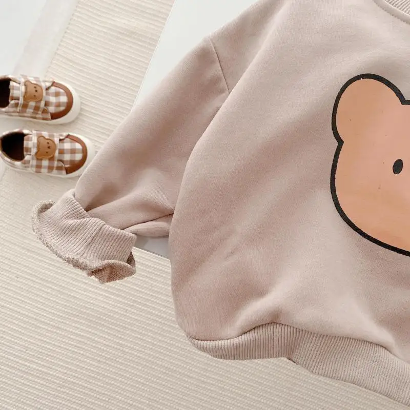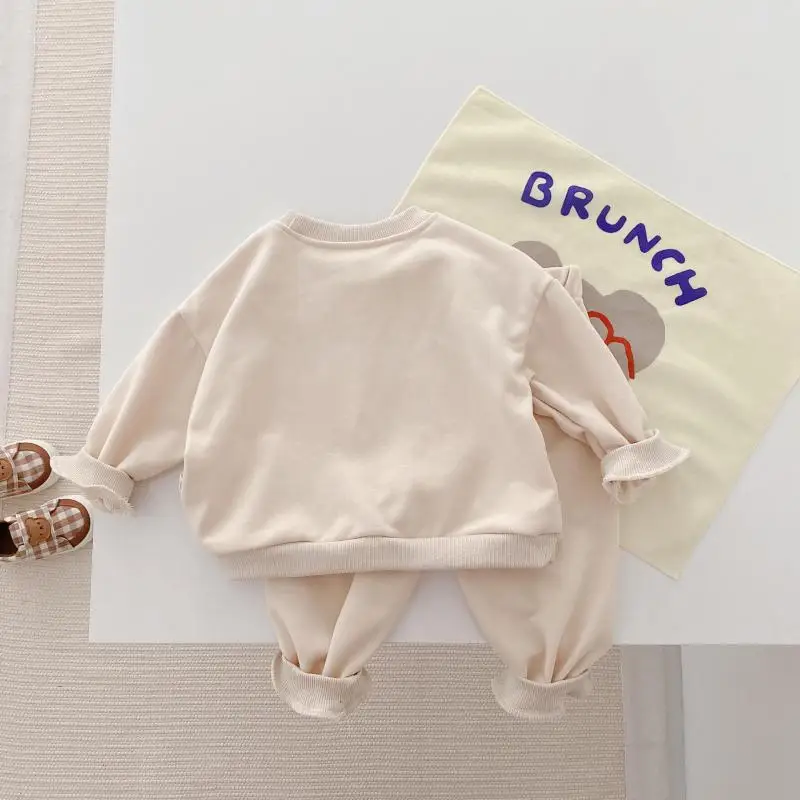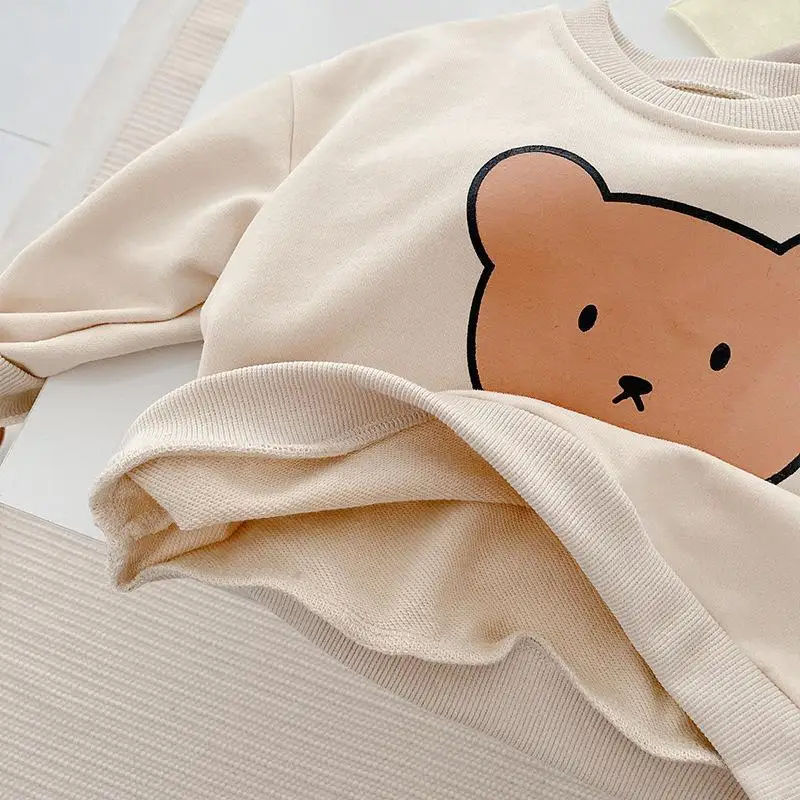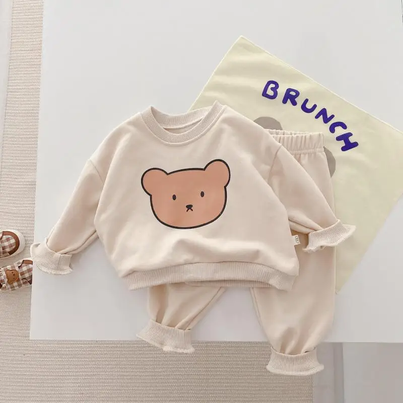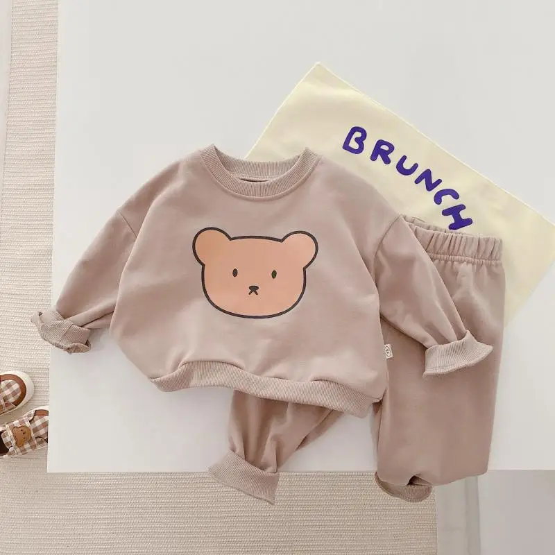ベビーセットアップ 2点セット 長袖Tシャツ+ロングパンツ パジャマ ベアくまプリント 2カラー