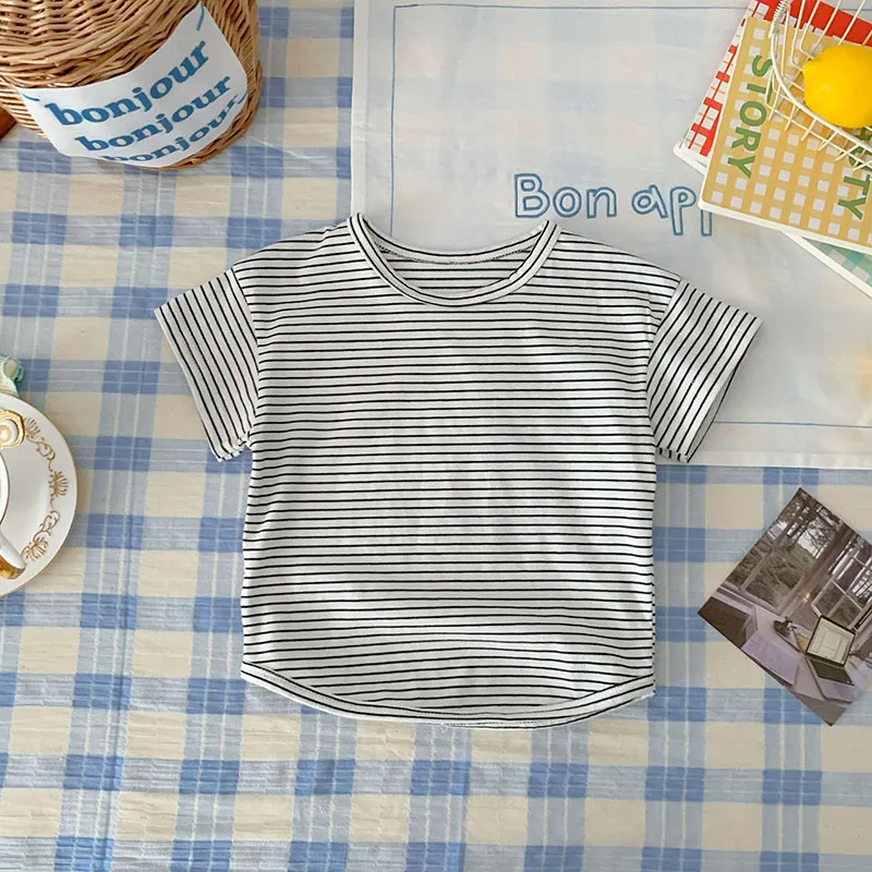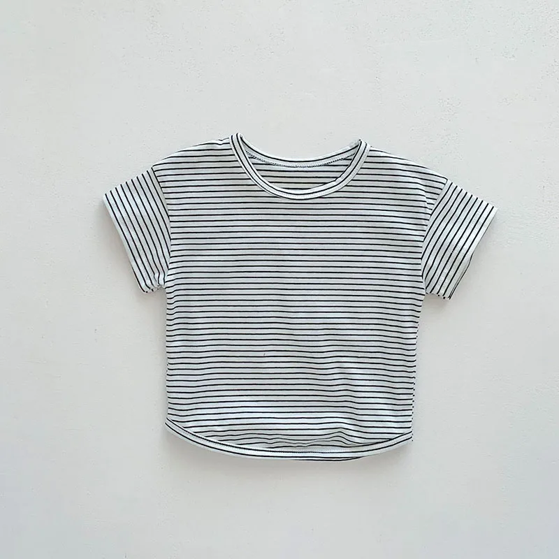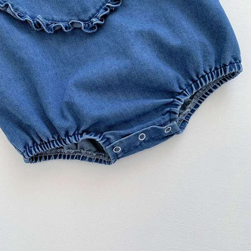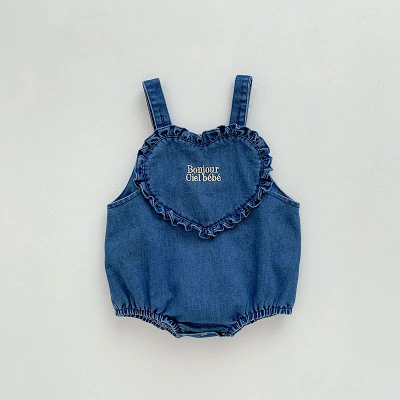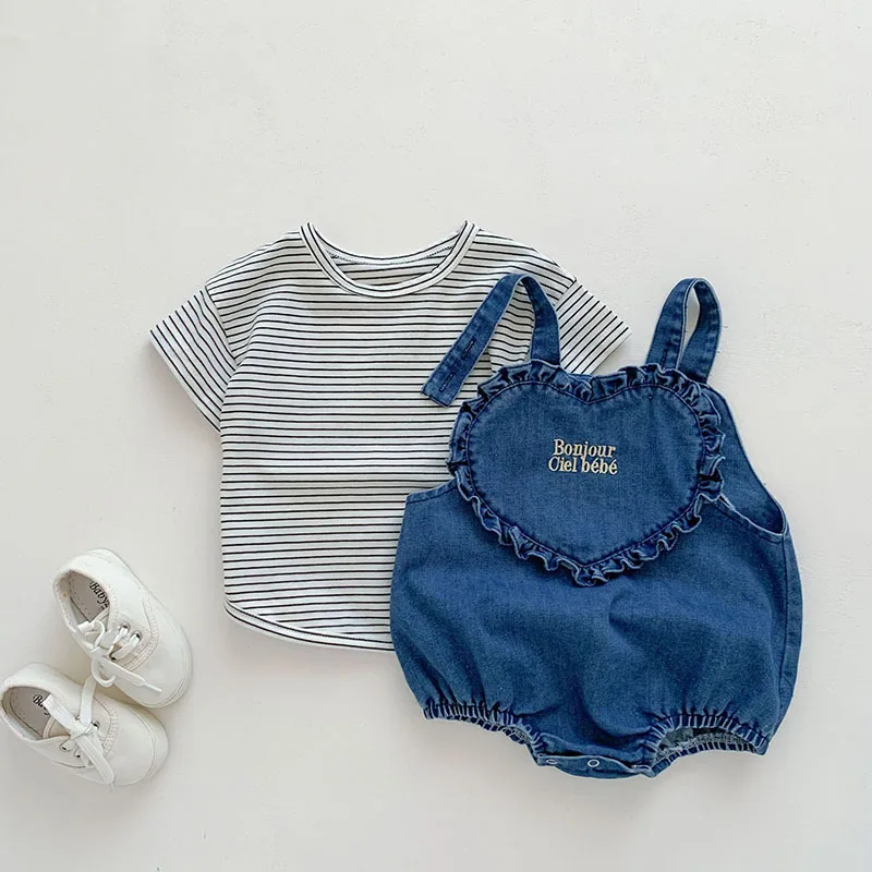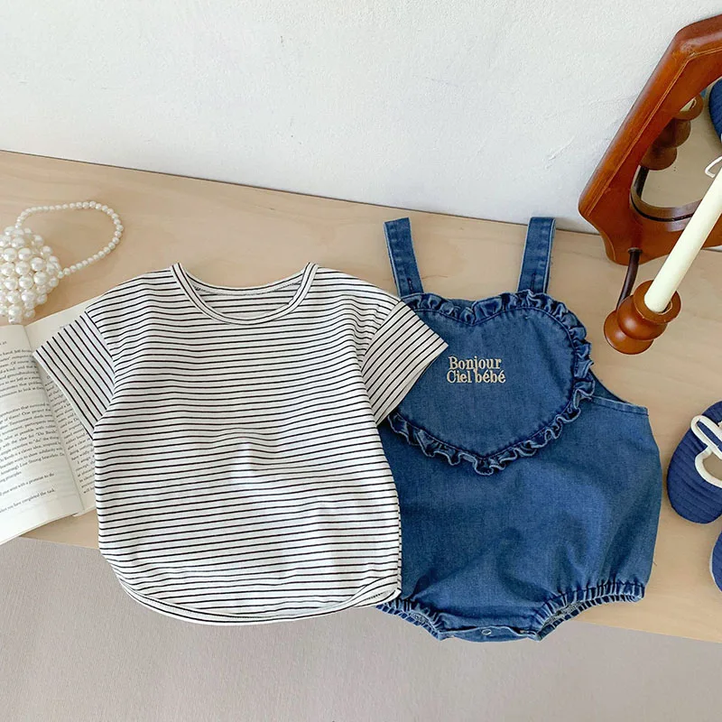 ベビー セットアップ デニム ハート サスペンダー ロンパース ボーダー 半袖 Tシャツ