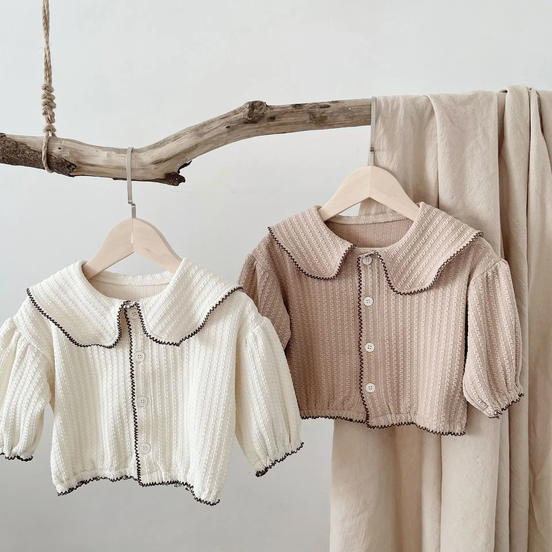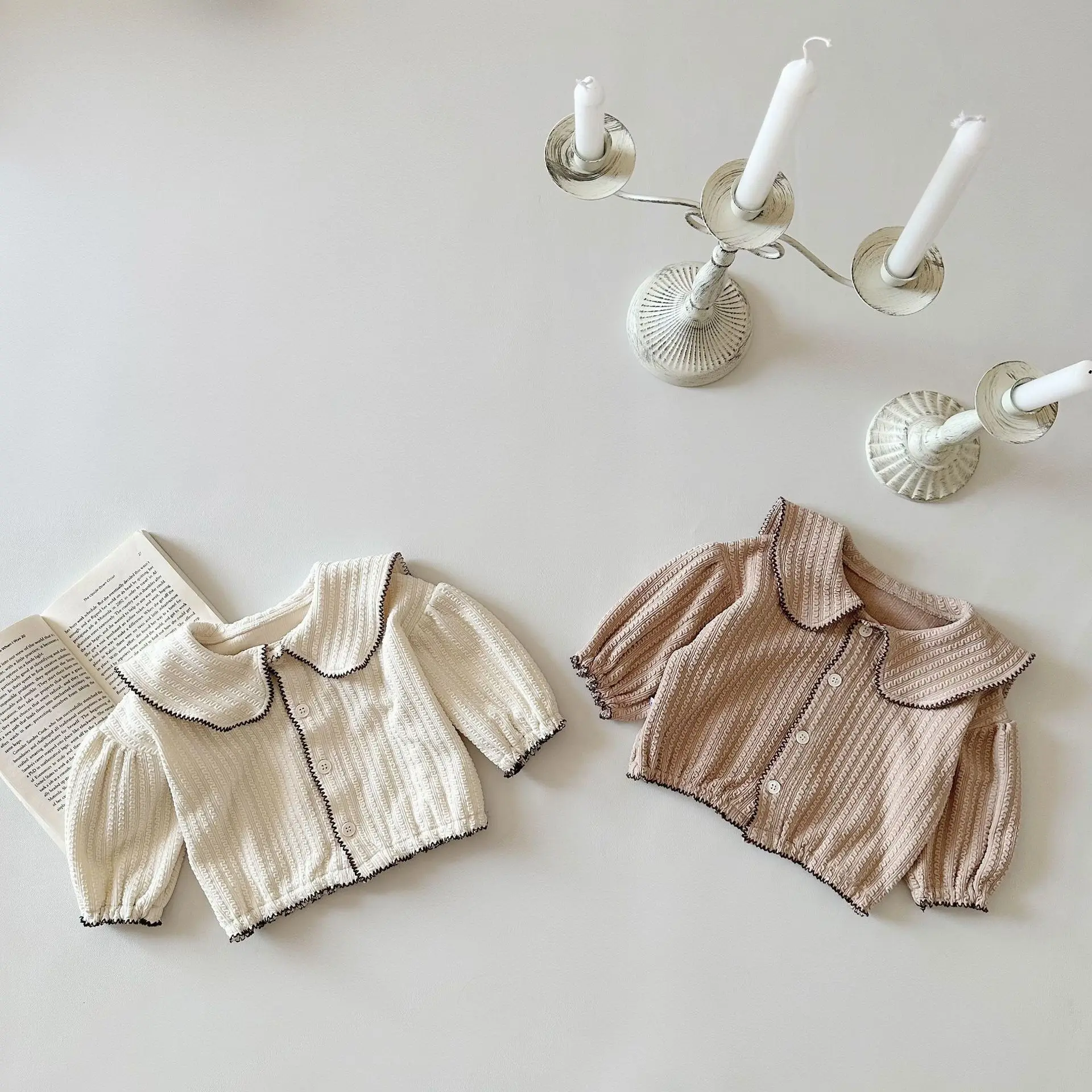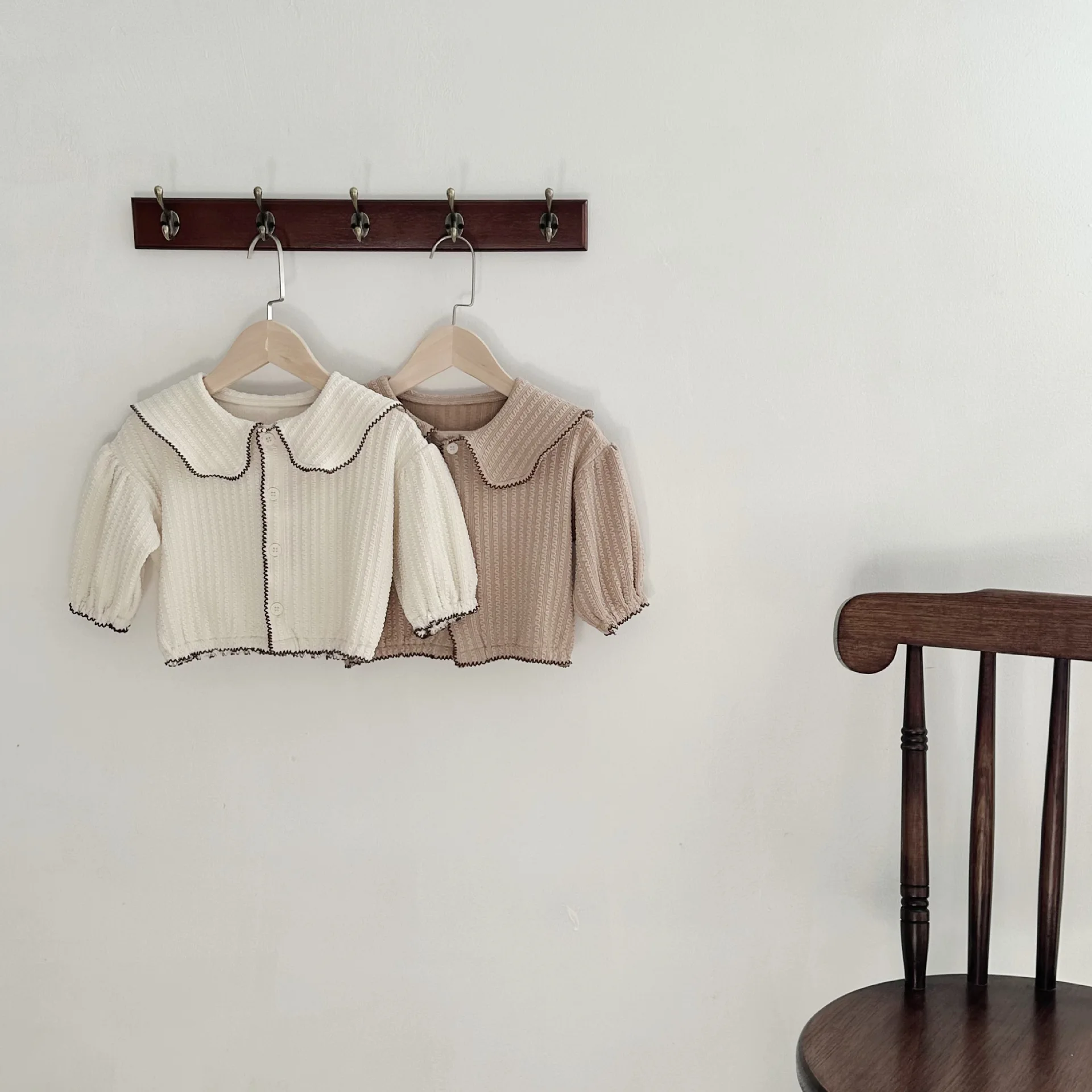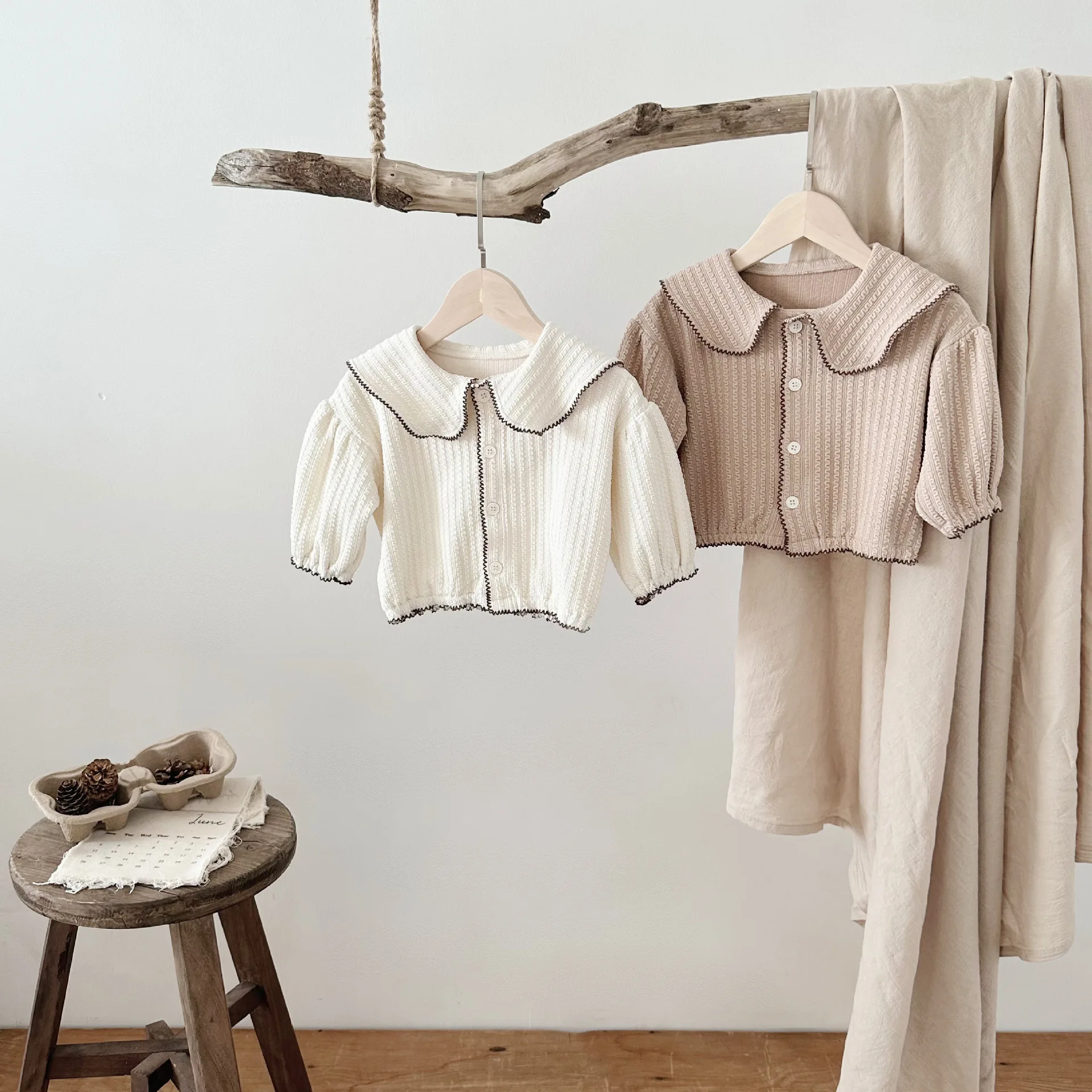 ベビーカーディガン ビッグ襟 パフスリーブジャケット 2カラー