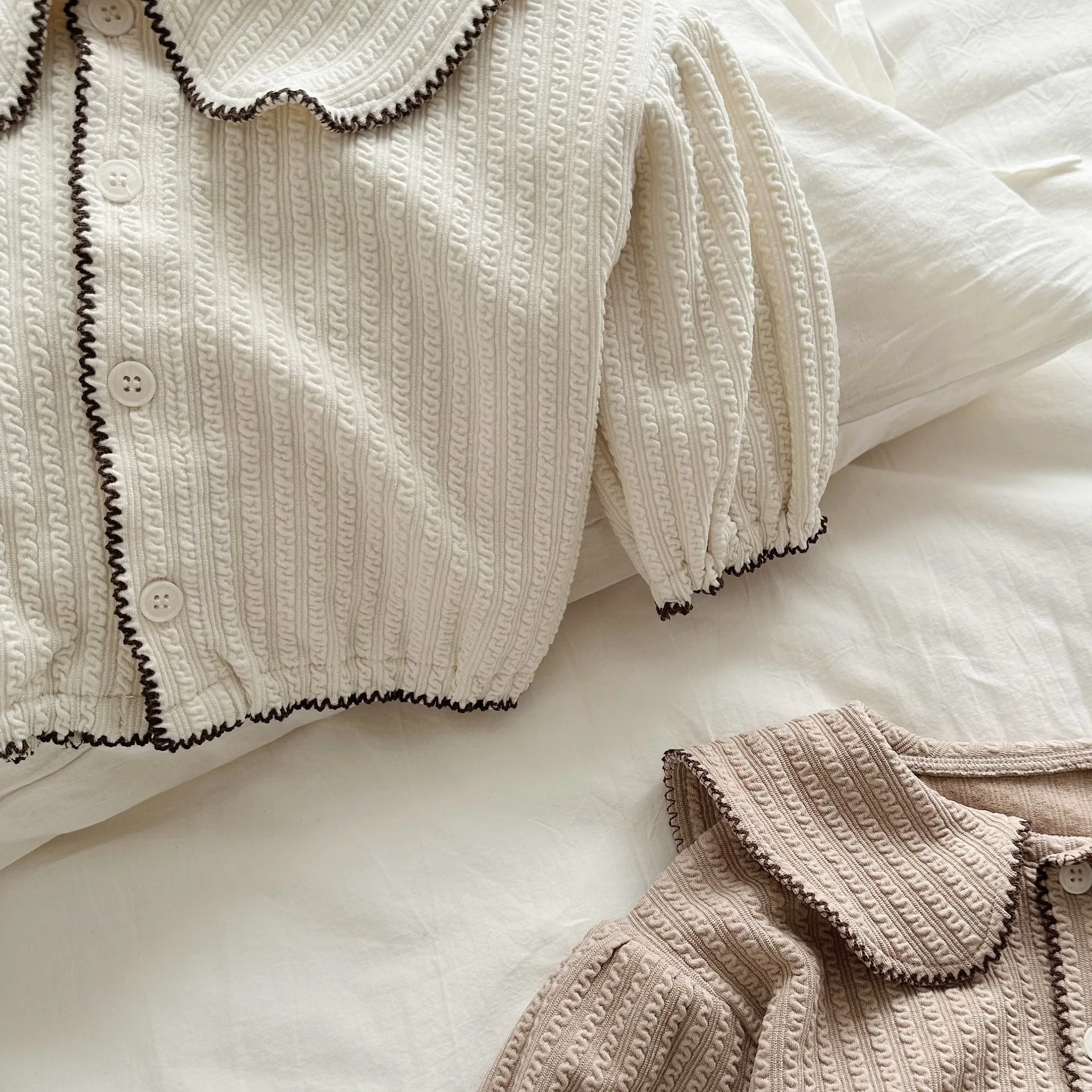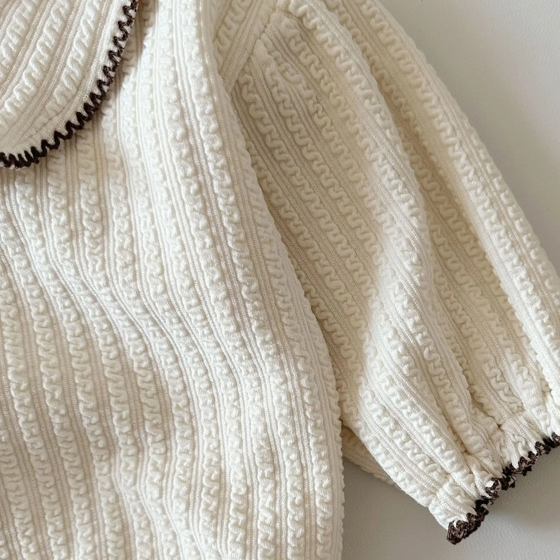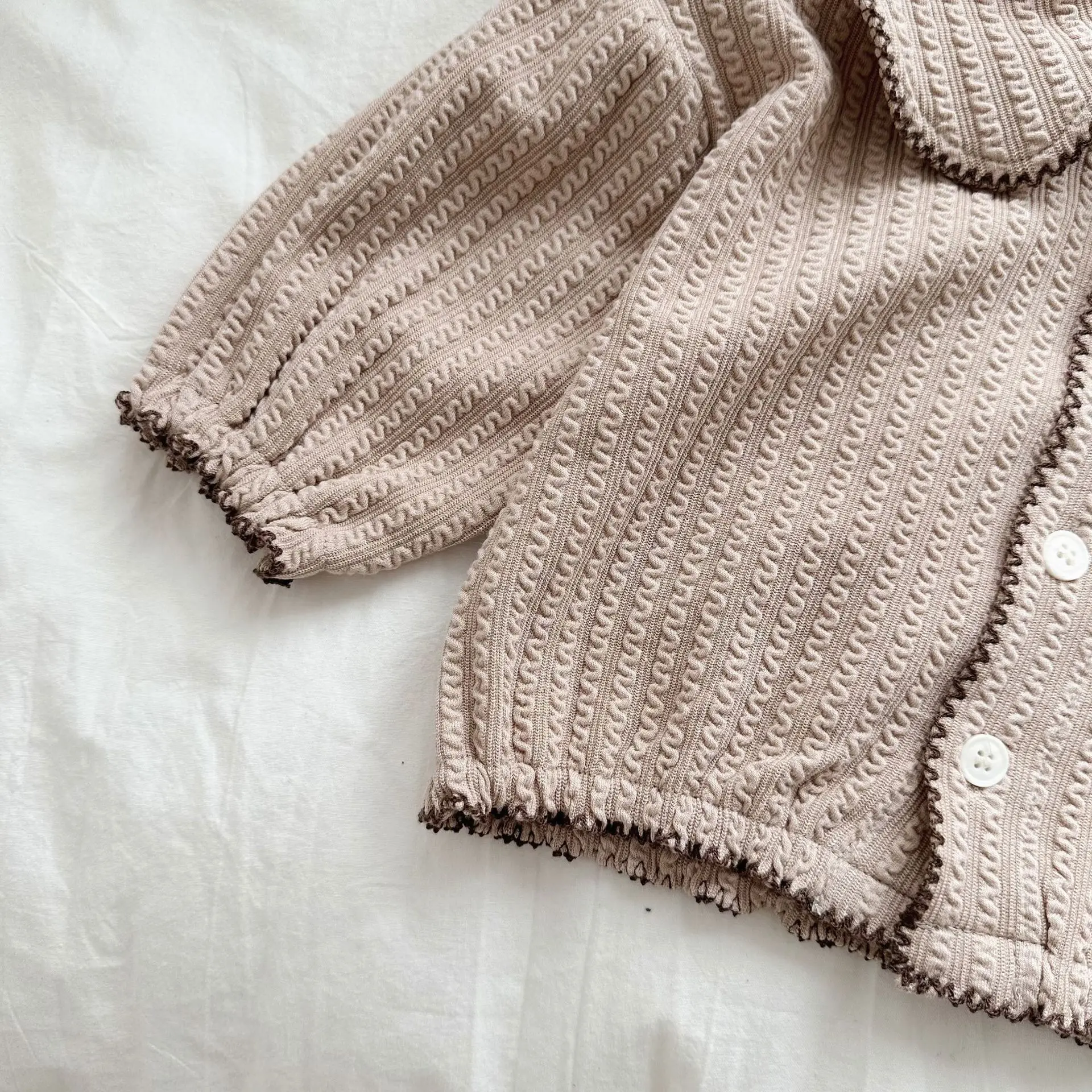 ベビーカーディガン ビッグ襟 パフスリーブジャケット 2カラー