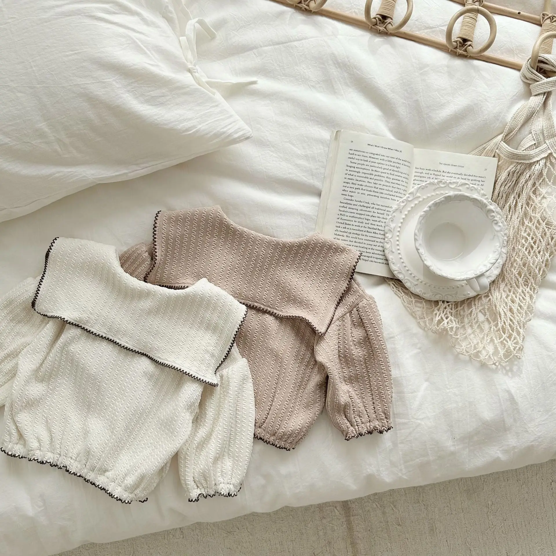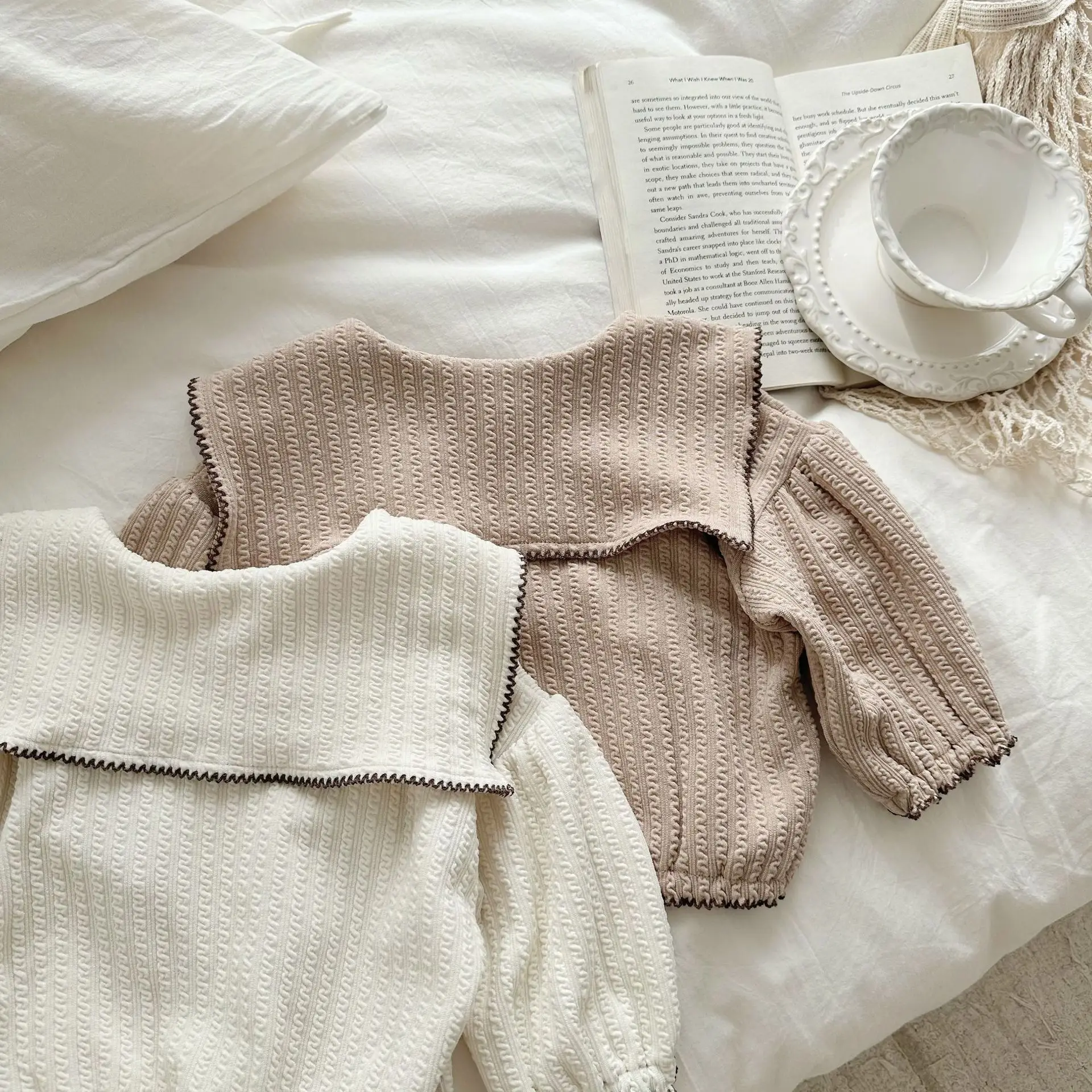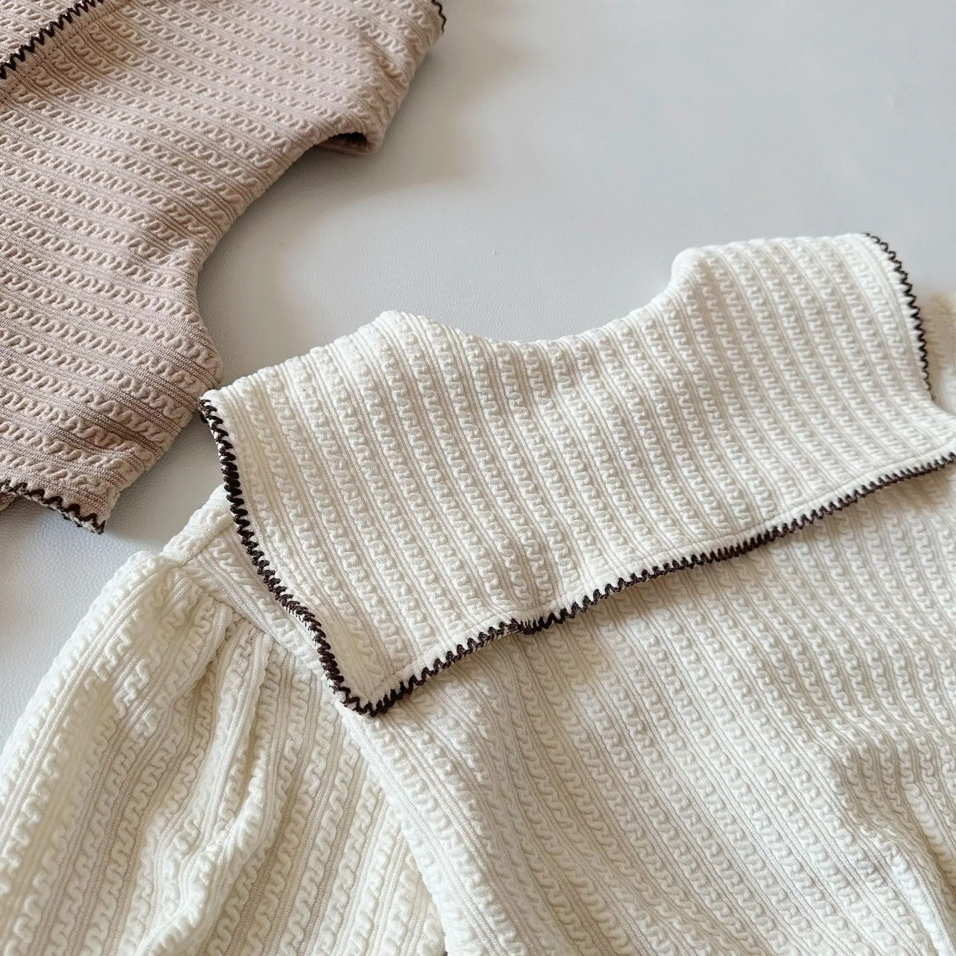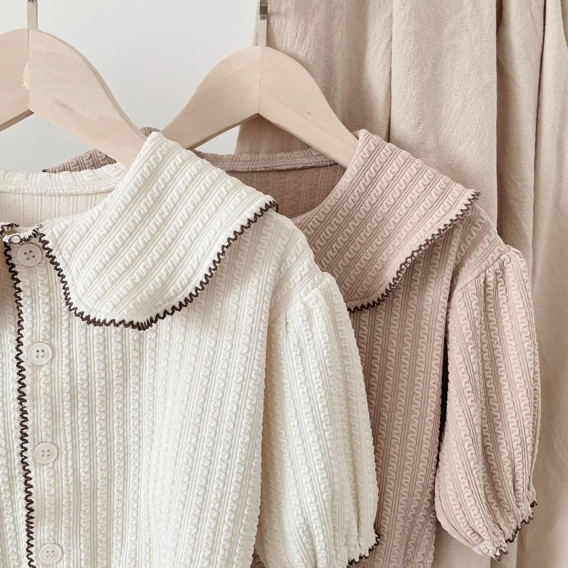 ベビーカーディガン ビッグ襟 パフスリーブジャケット 2カラー