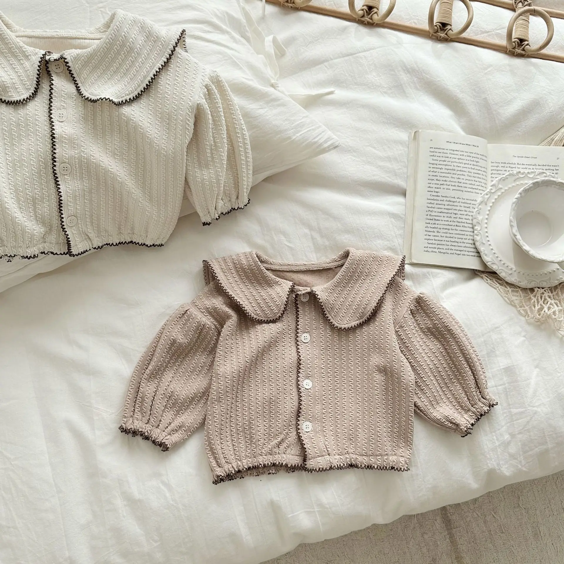 #ベビーカーディガン #ビッグ襟 #パフスリーブジャケット #赤ちゃんファッション #おしゃれベビー #女の子コーデ #赤ちゃんのお洋服