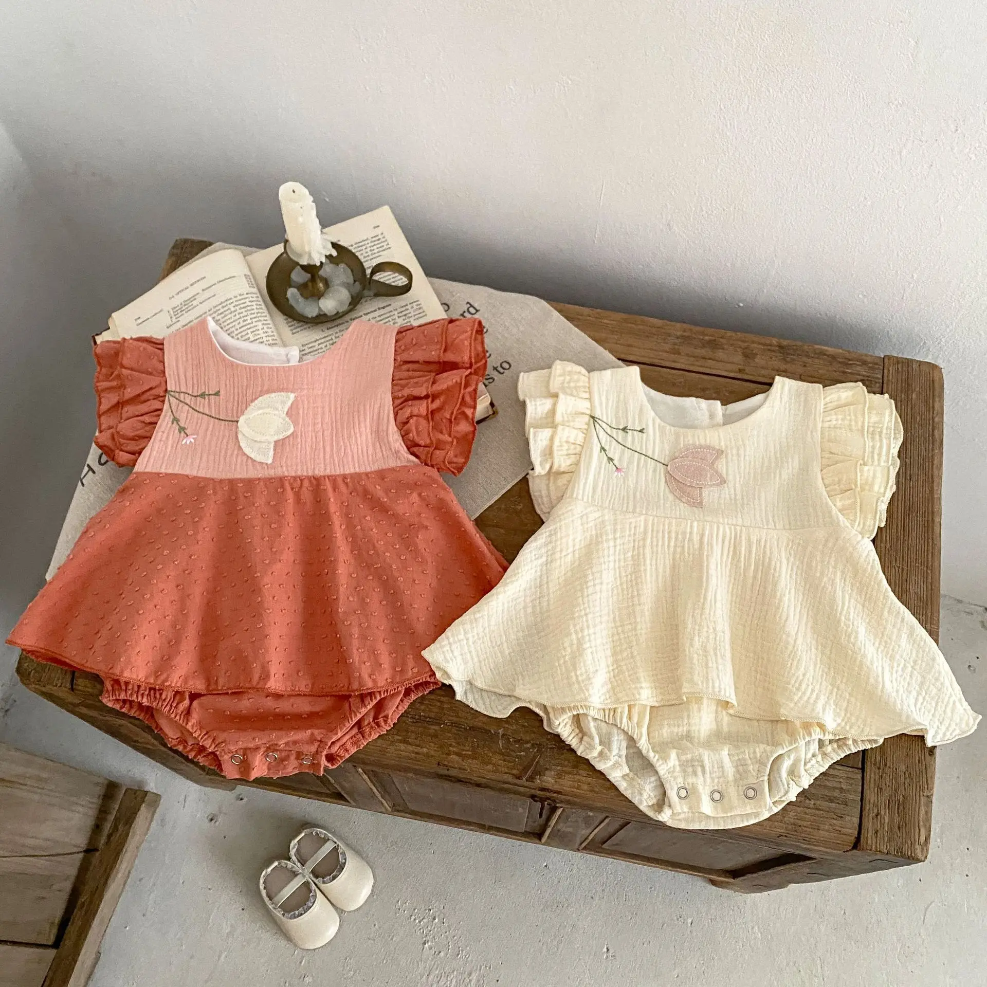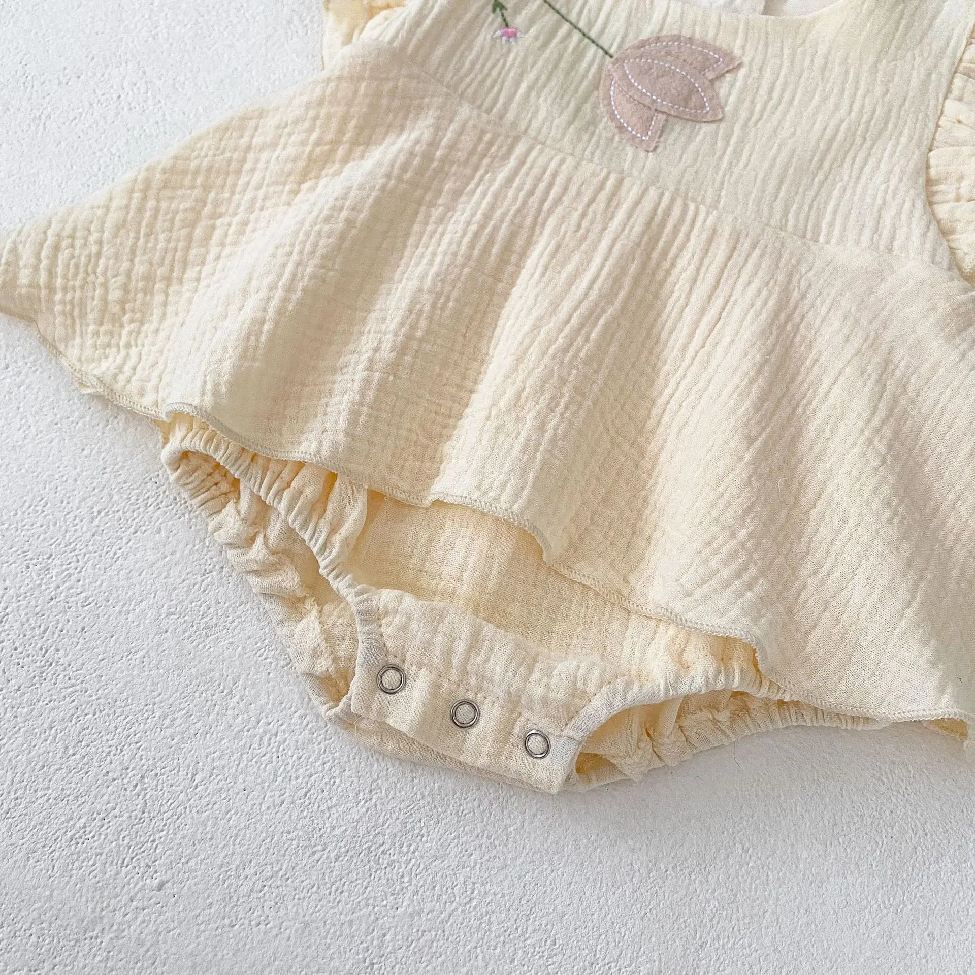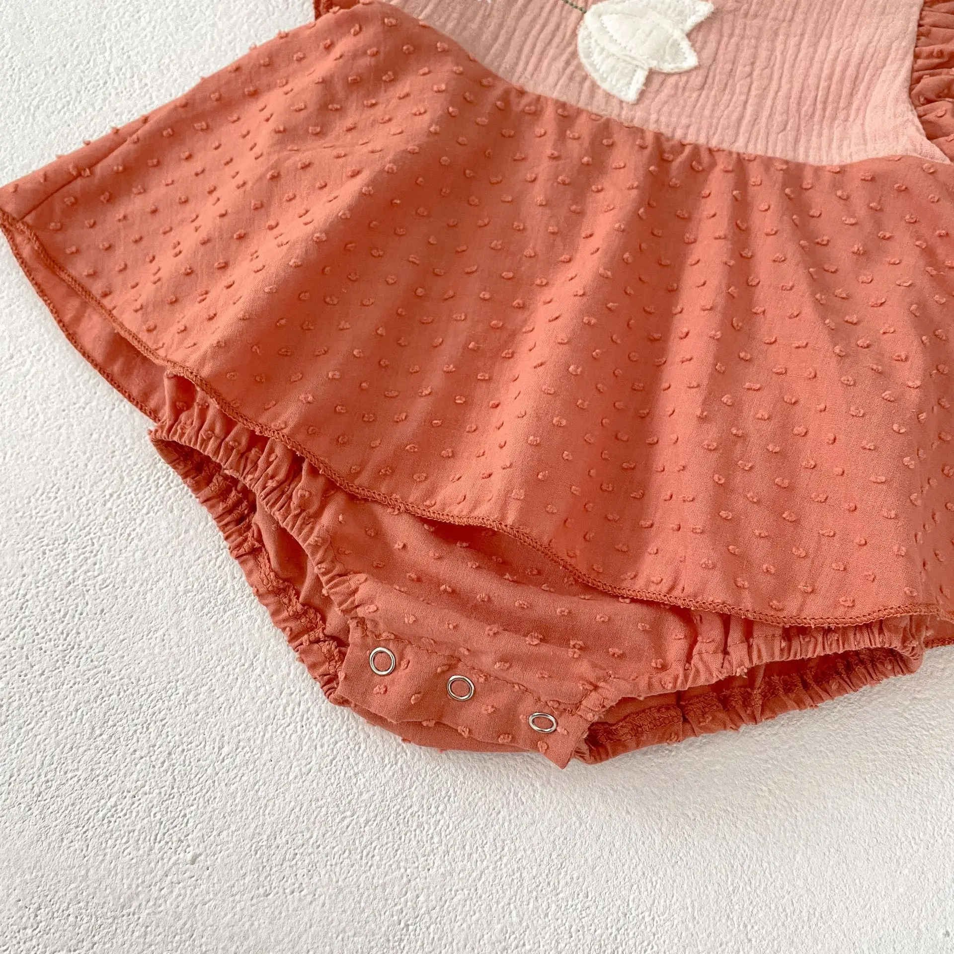 ベビーロンパース ラッフルフリル袖スカートボディスーツ フラワー花柄刺繍 2カラー