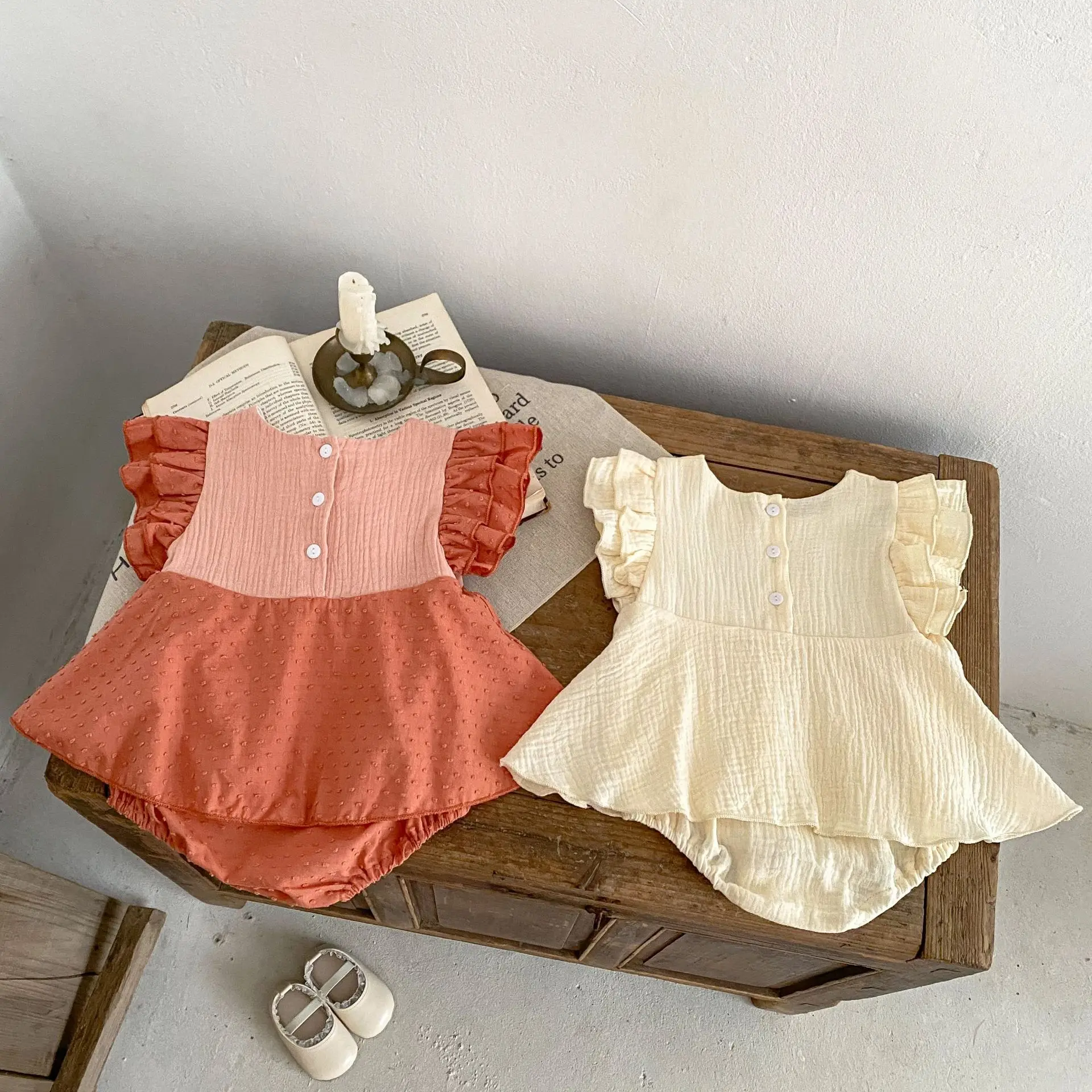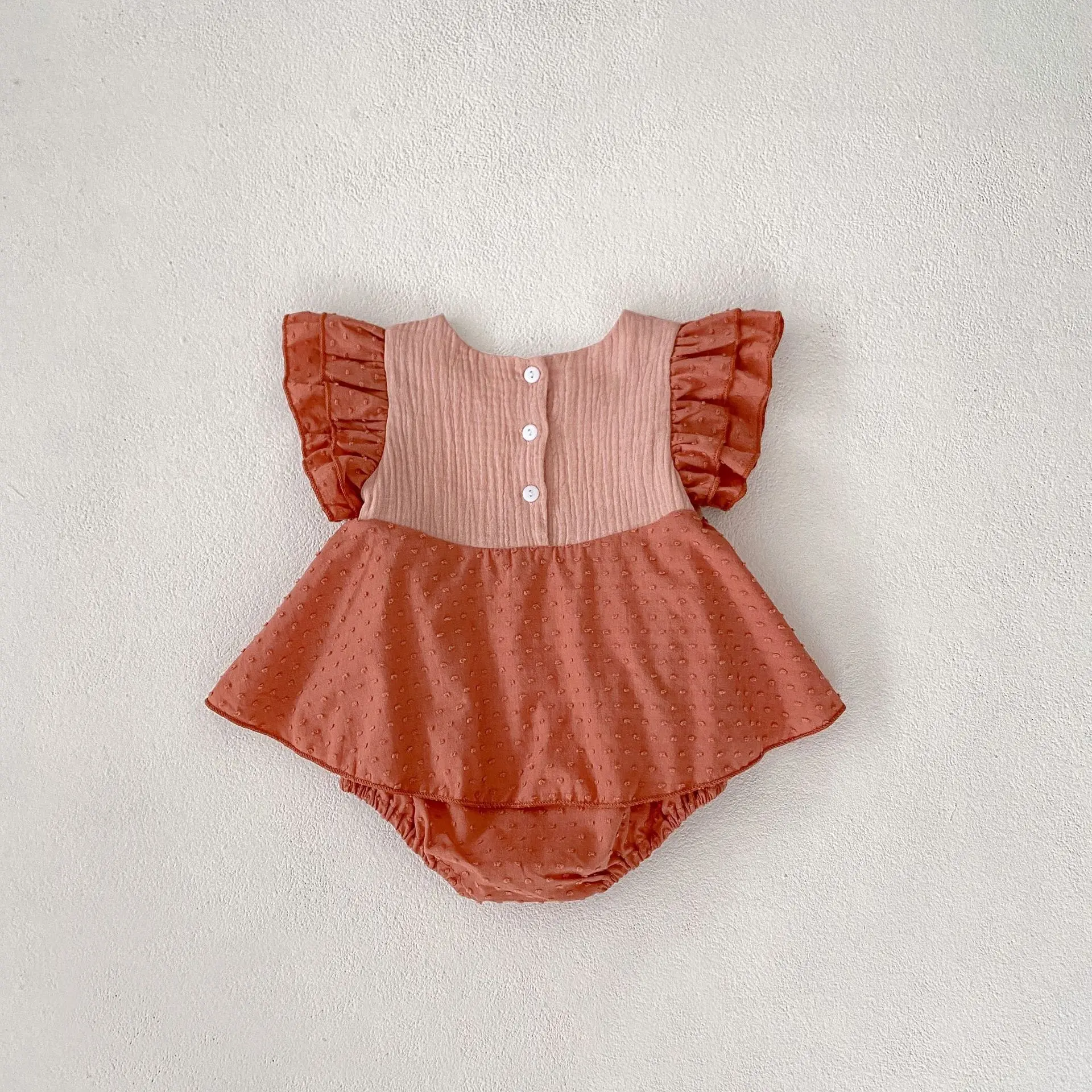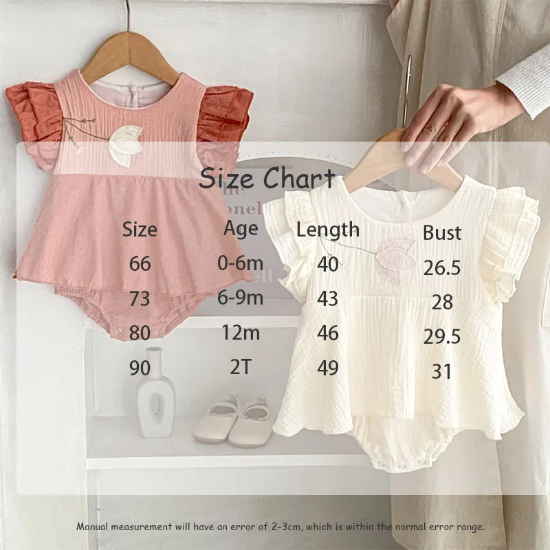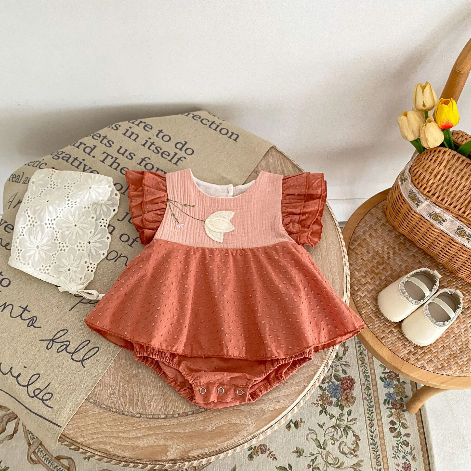 ベビーロンパース ラッフルフリル袖スカートボディスーツ フラワー花柄刺繍 2カラー