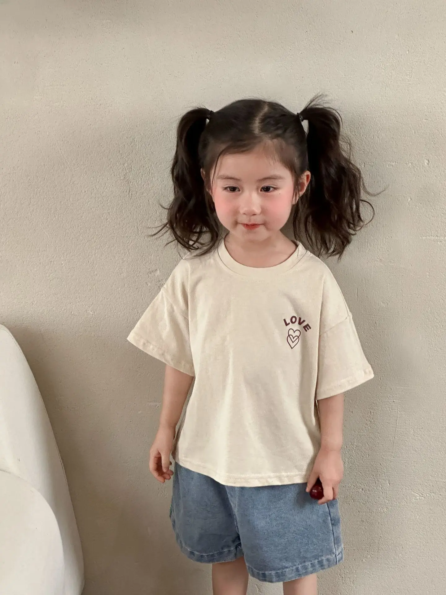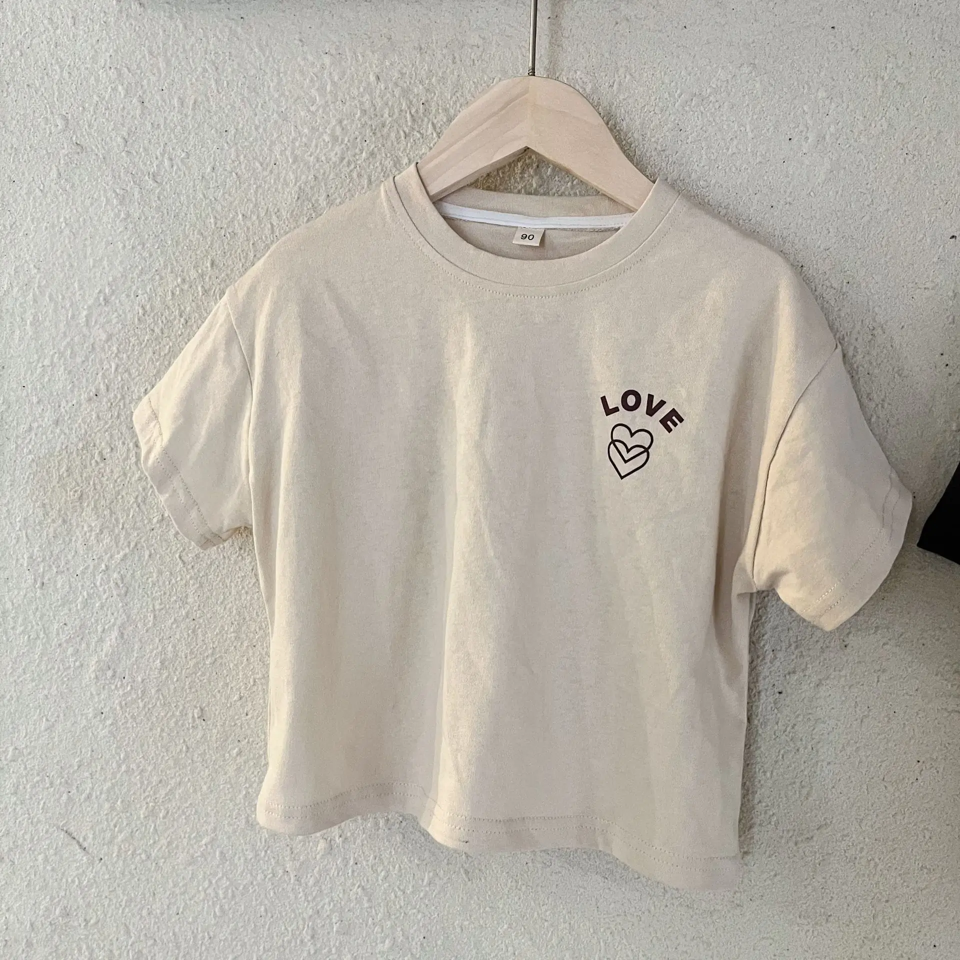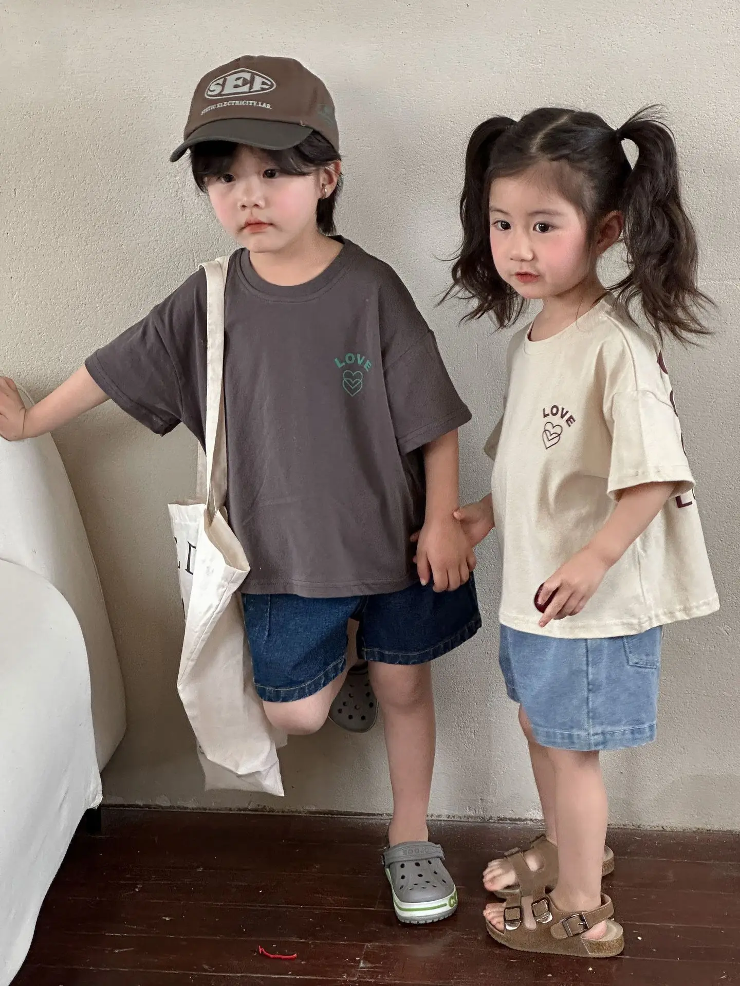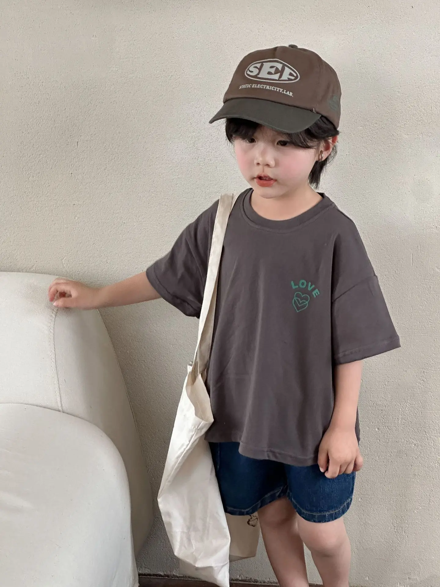 #キッズトップス #夏のTシャツ #子供服 #カジュアルスタイル #半袖Tシャツ #ハートロゴ #おしゃれ