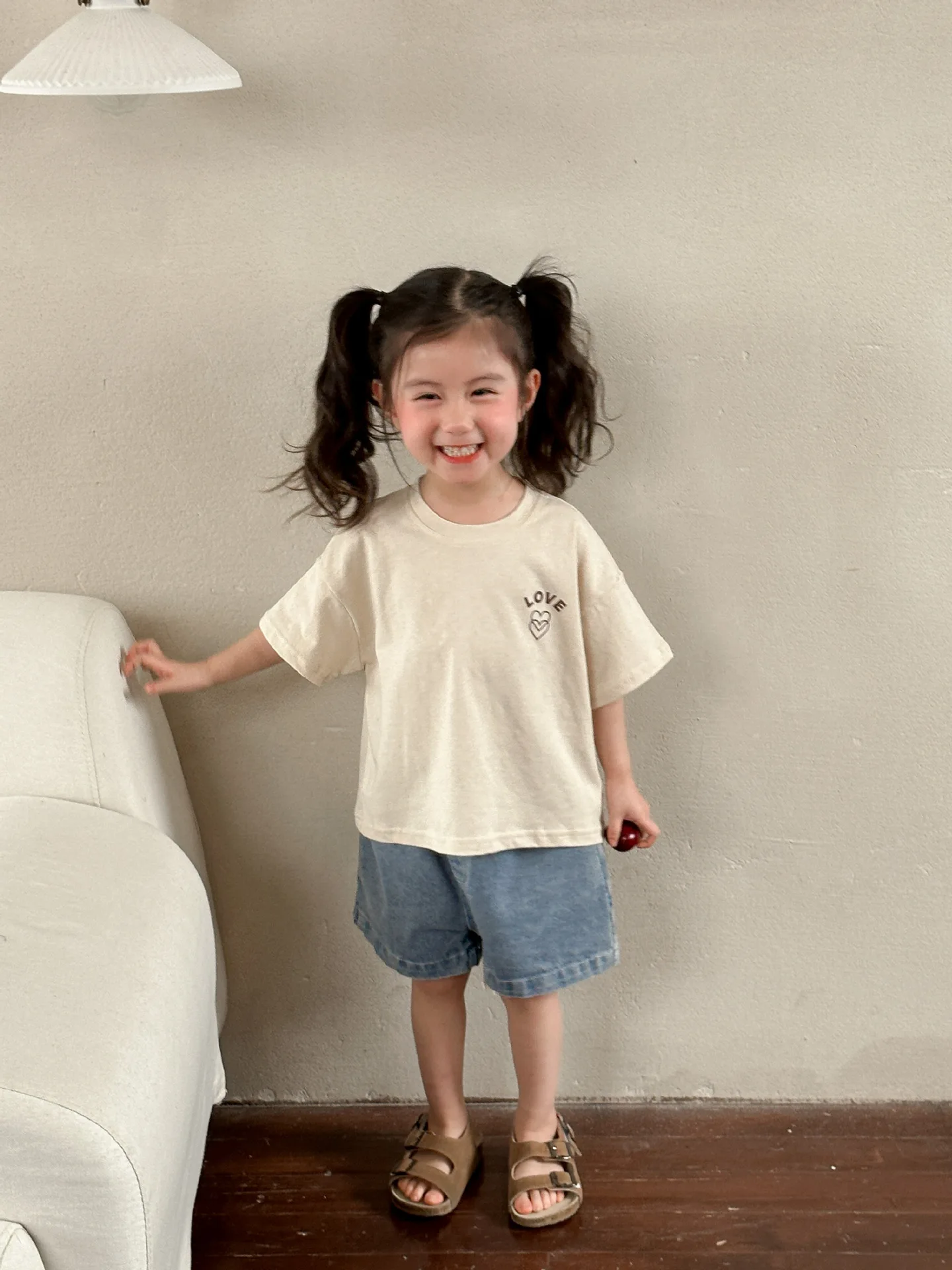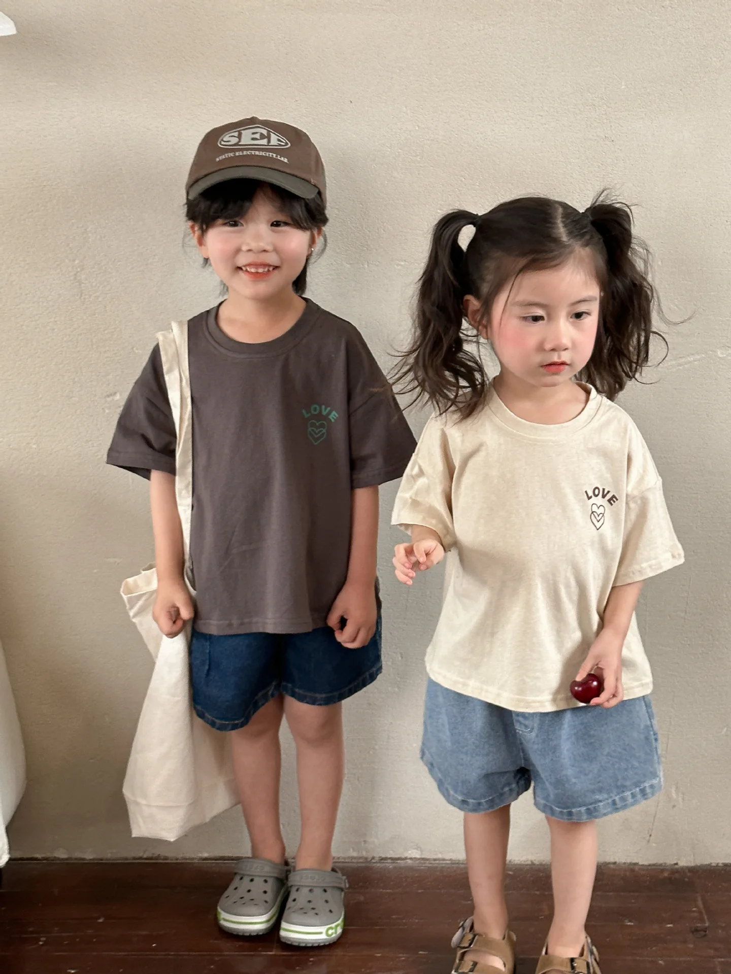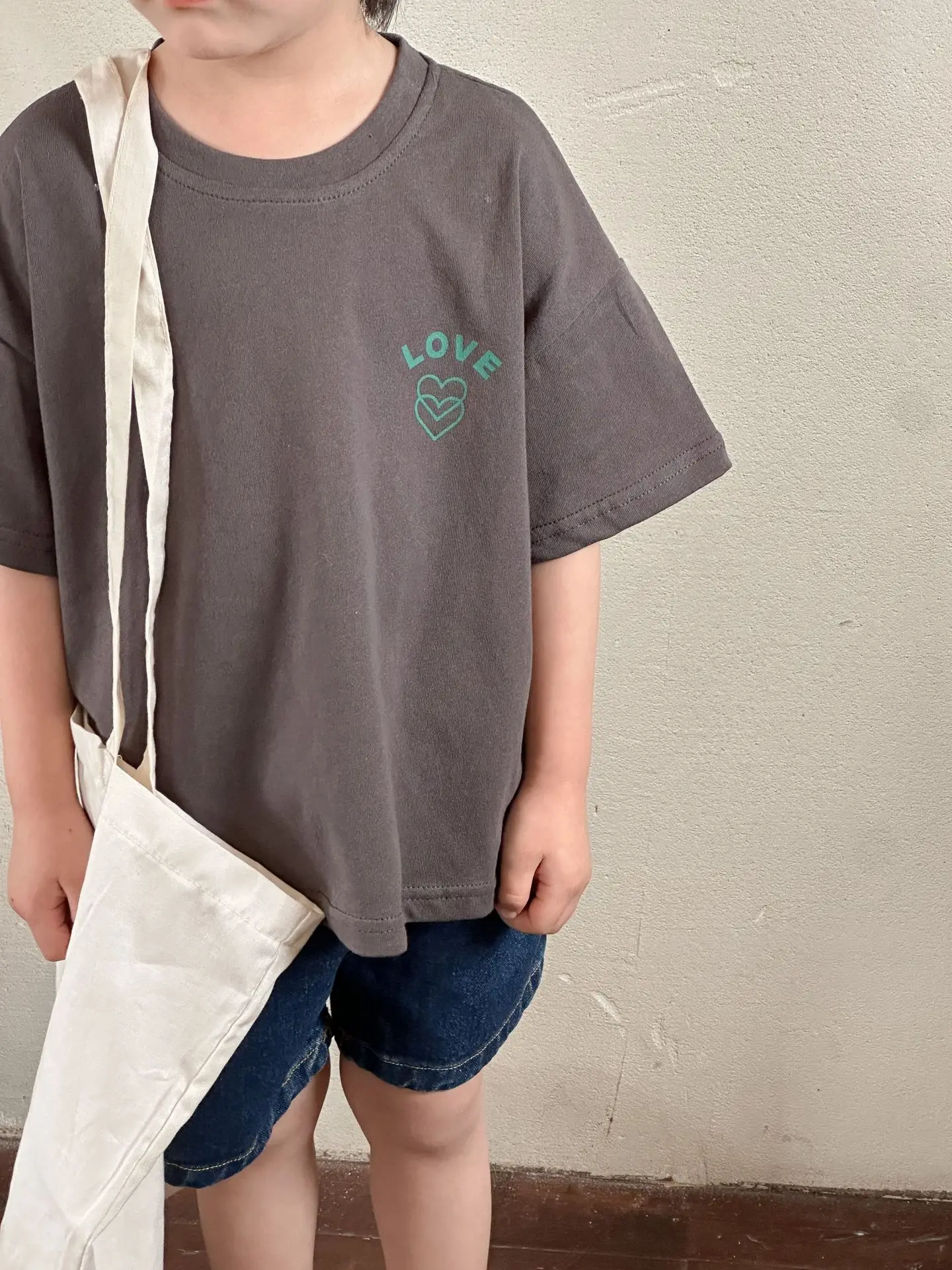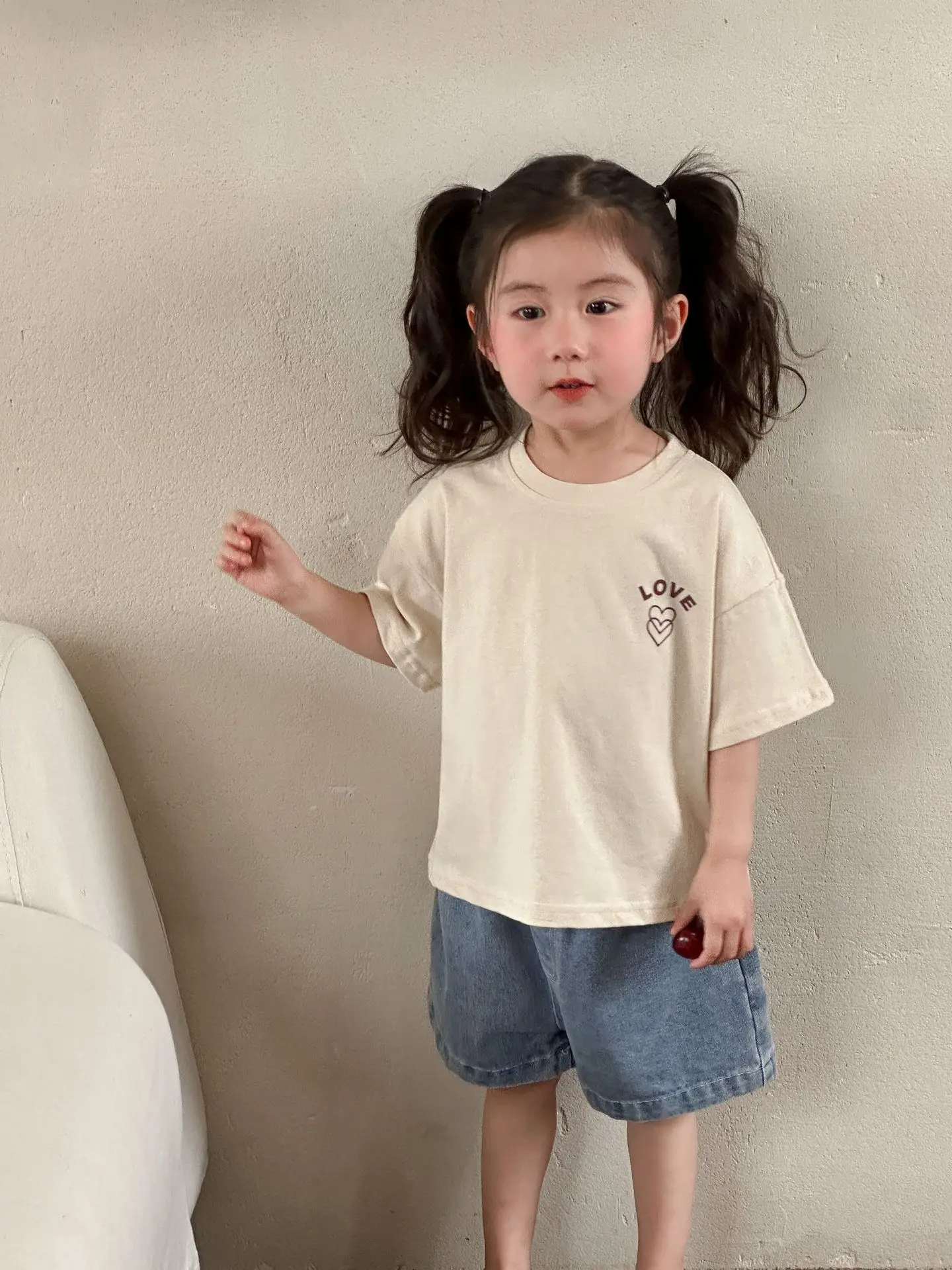 #キッズトップス #夏のTシャツ #子供服 #カジュアルスタイル #半袖Tシャツ #ハートロゴ #おしゃれ