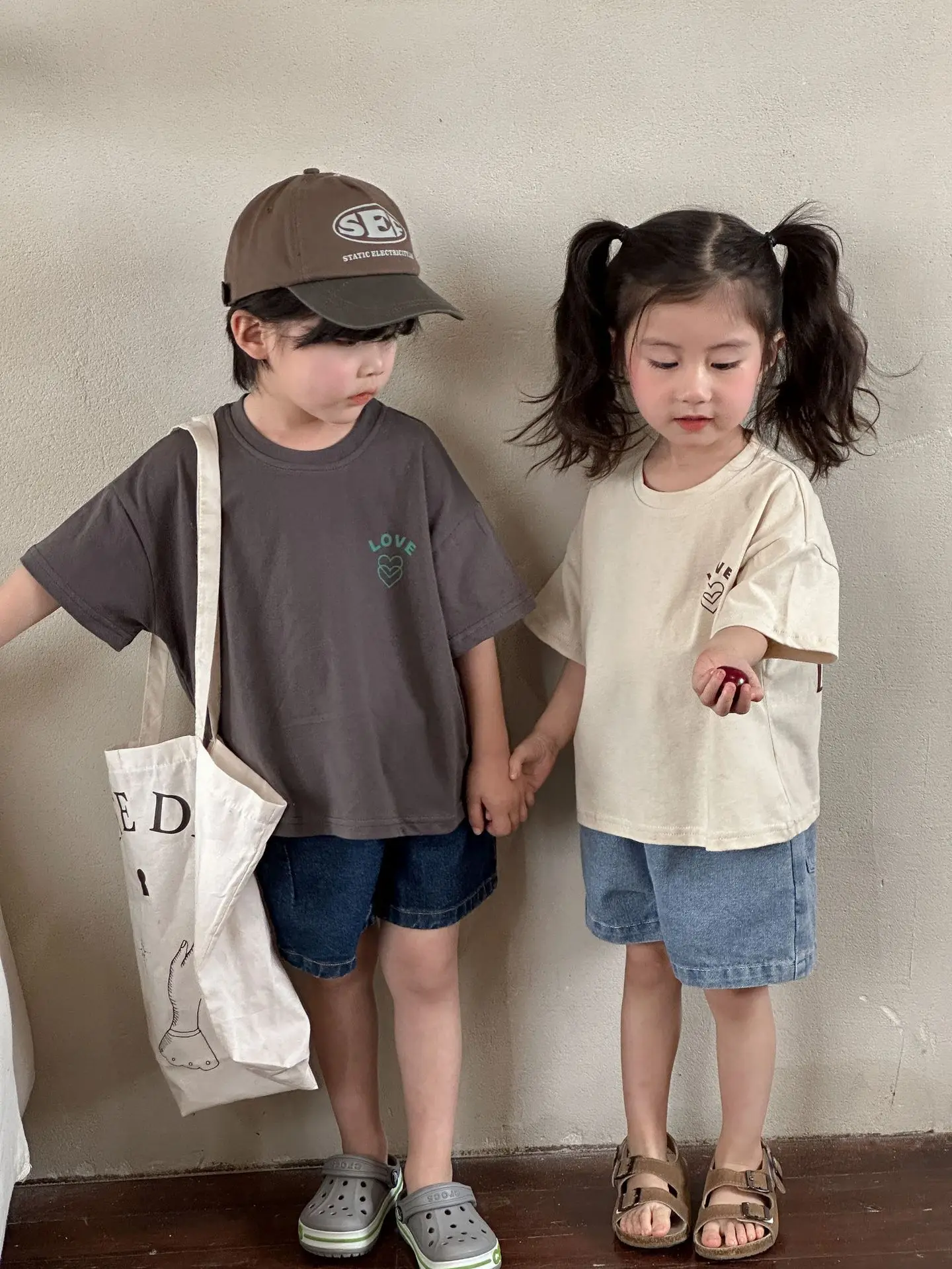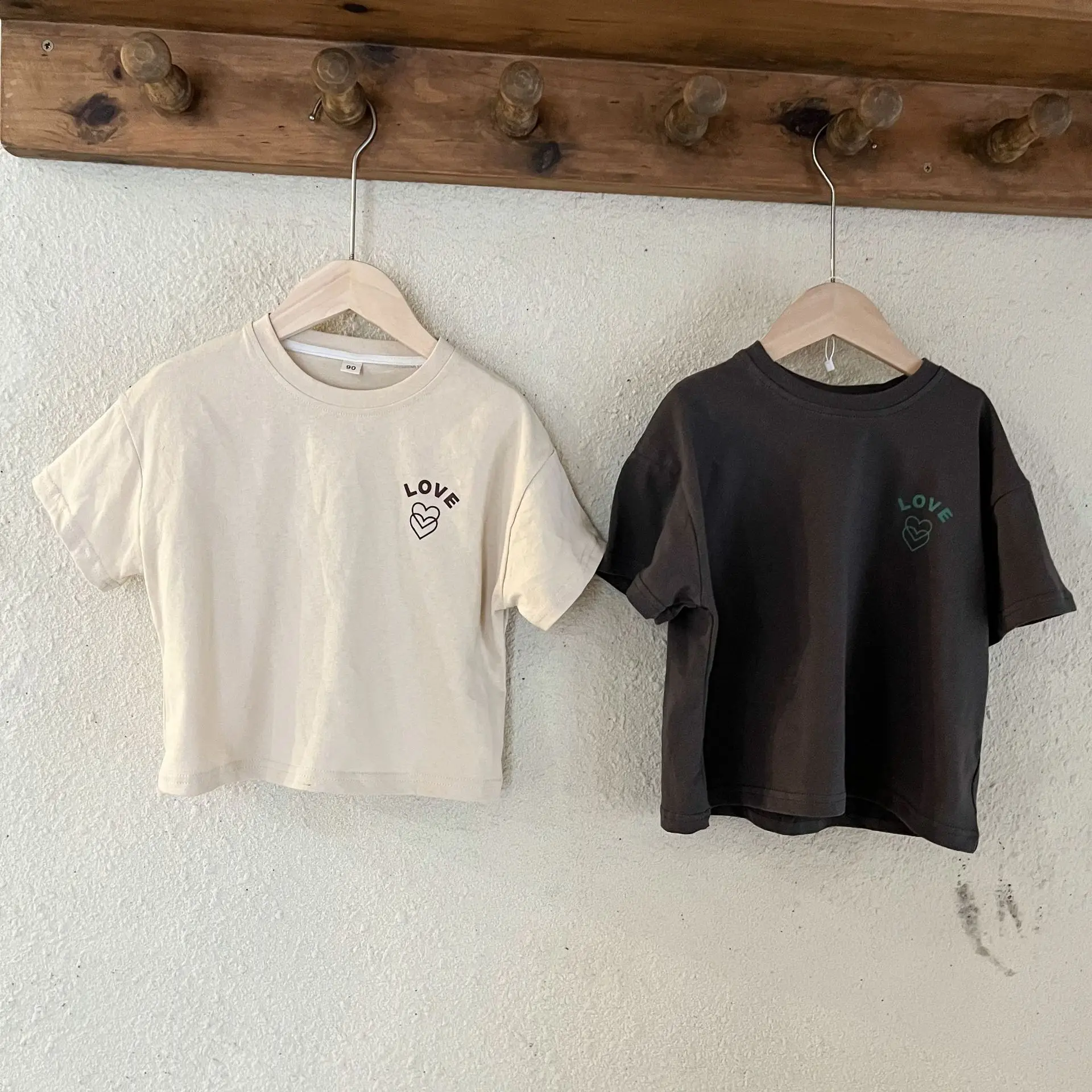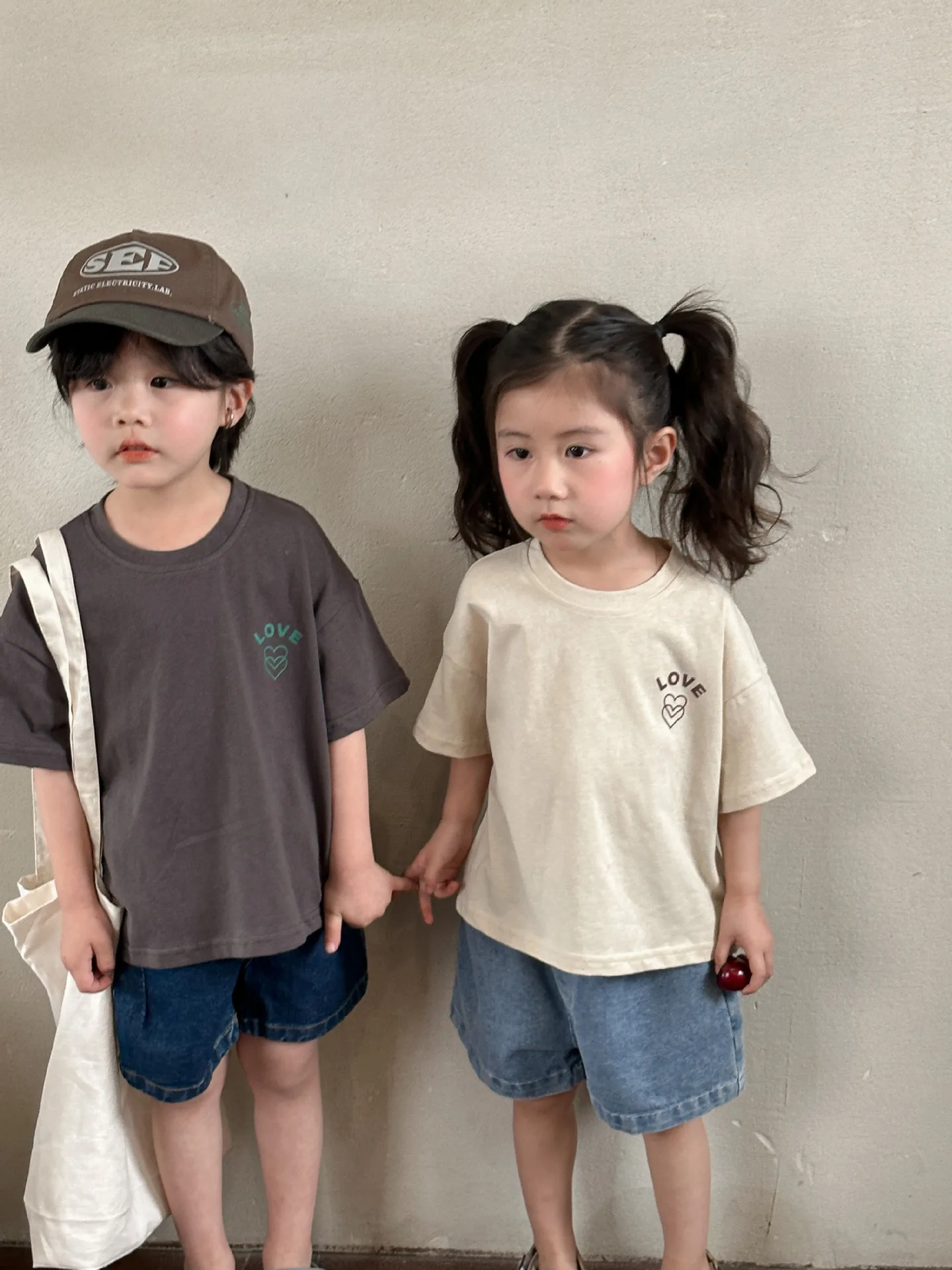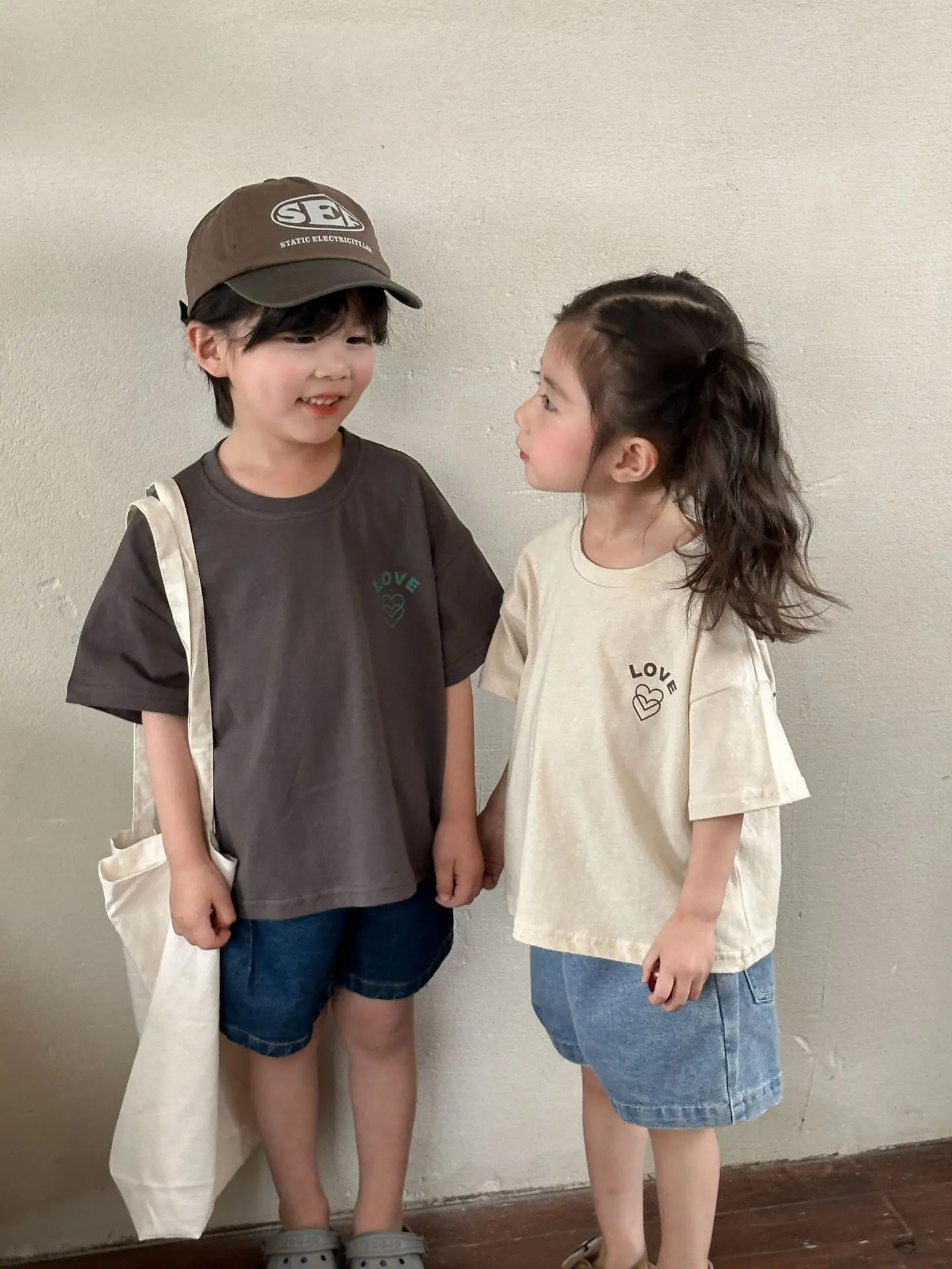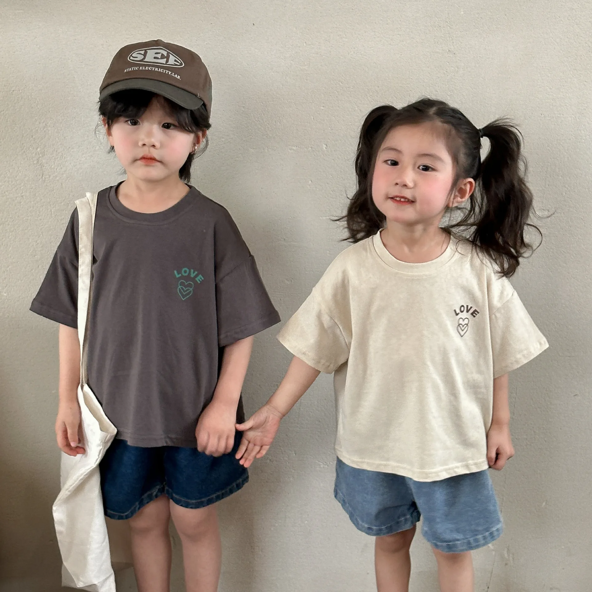 子供たちの夏のカジュアルスタイルにぴったりの半袖Tシャツが登場しました。ハートとLOVEワンポイントロゴがアクセントになっています。涼しい素材で作られ、快適な着心地を提供します。男の子も女の子も着用できるデザインで、さまざまなシーンで活躍します。おしゃれでリラックス感のあるスタイルを求める子供たちにぴったりです。