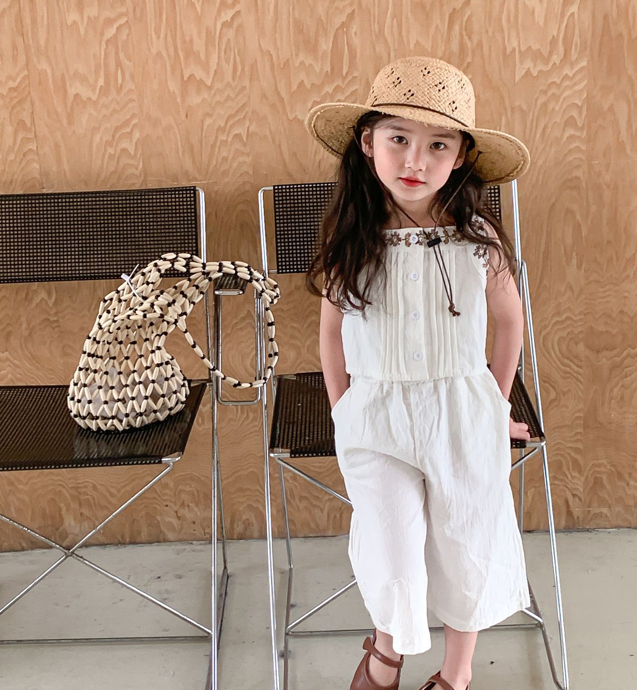 キッズ セットアップ フラワー 刺繍 ノースリーブ ブラウス ワイド パンツ【mh0000794】