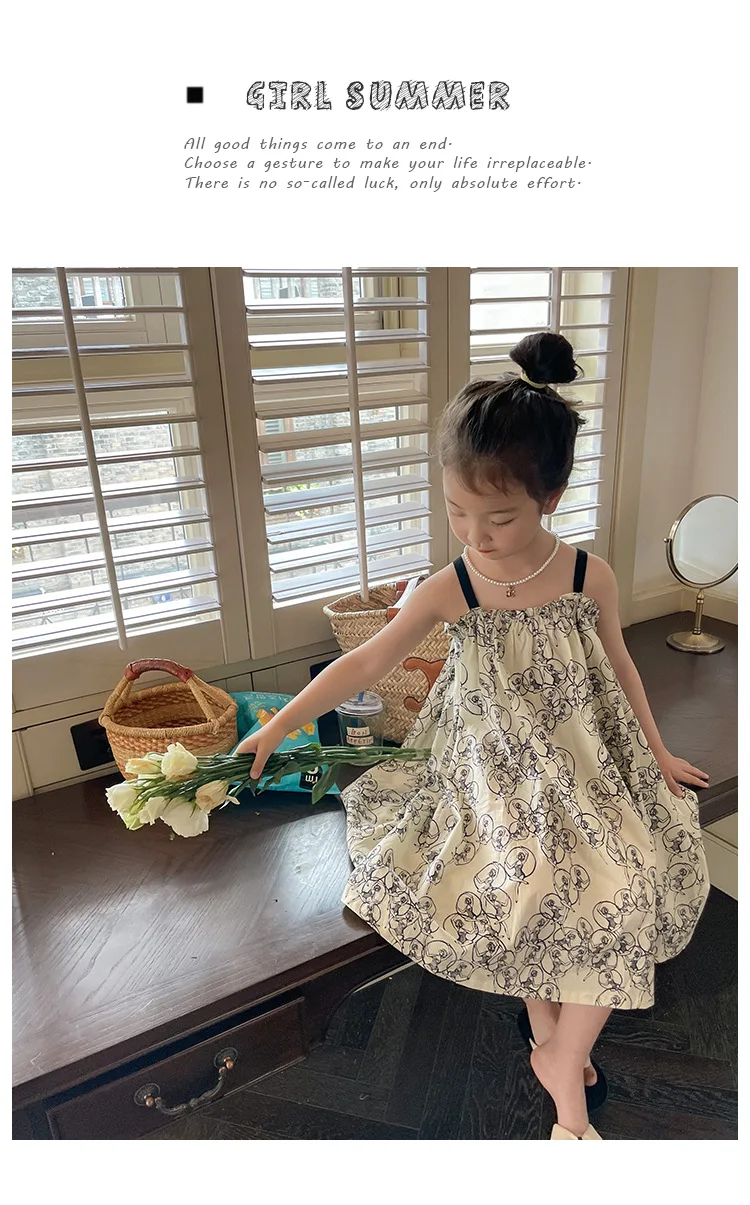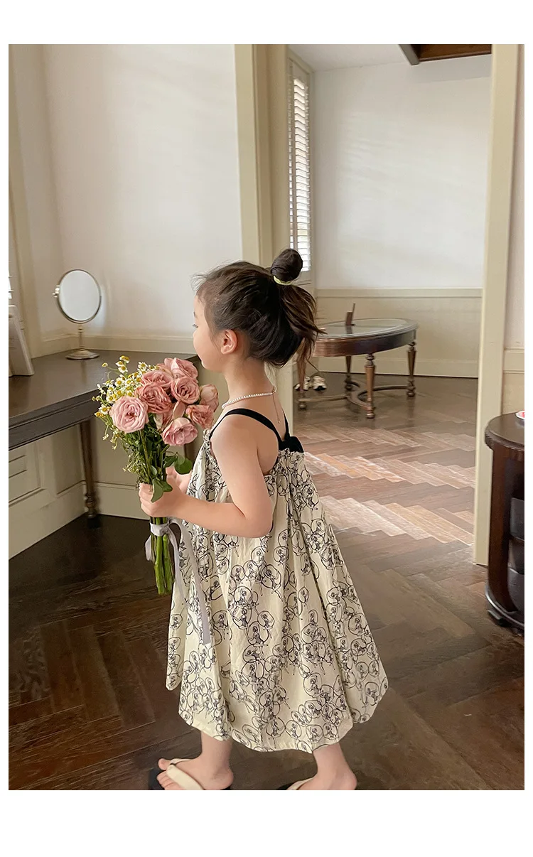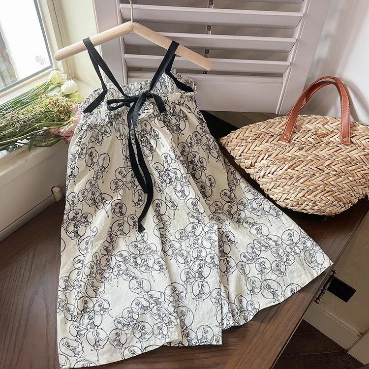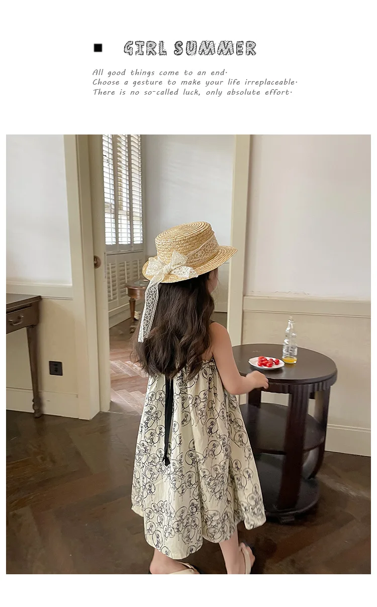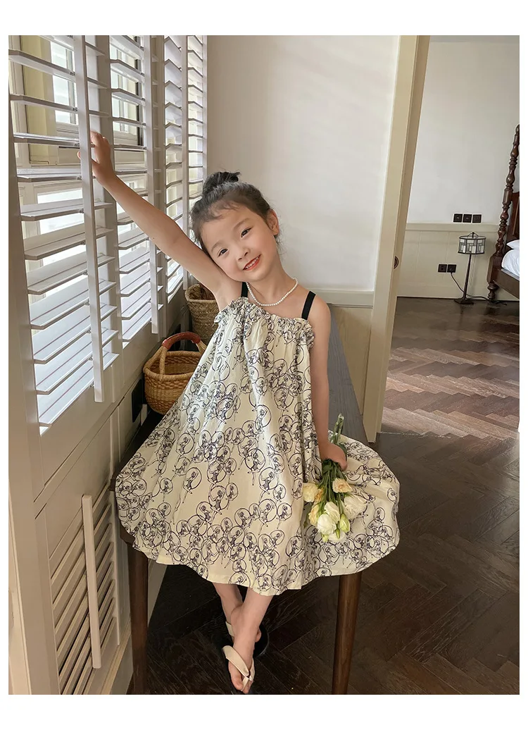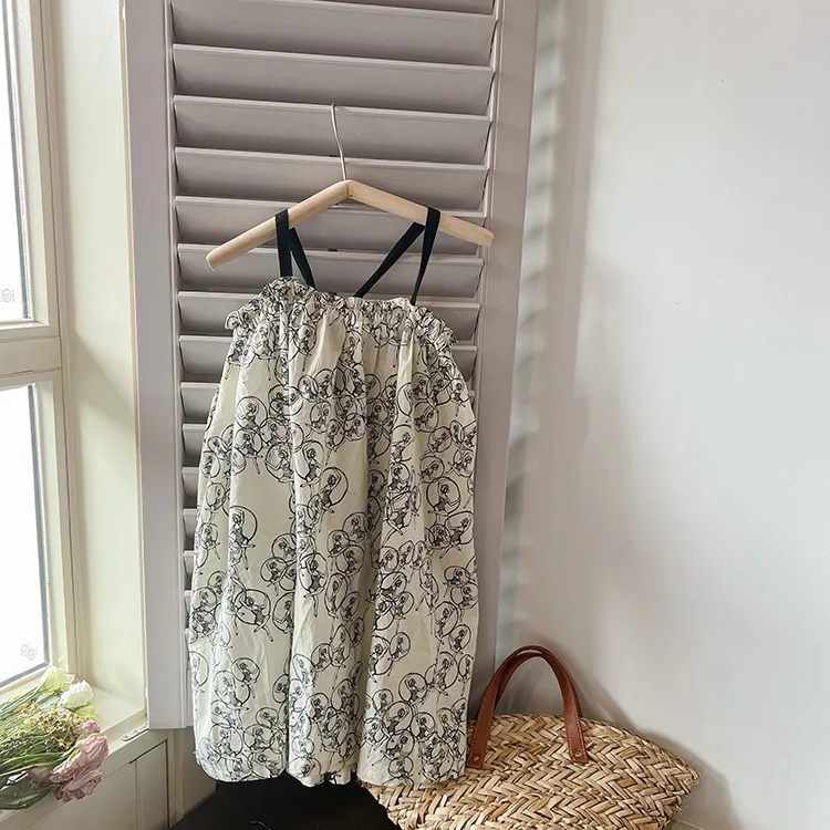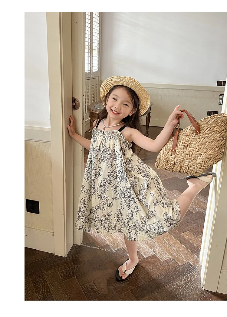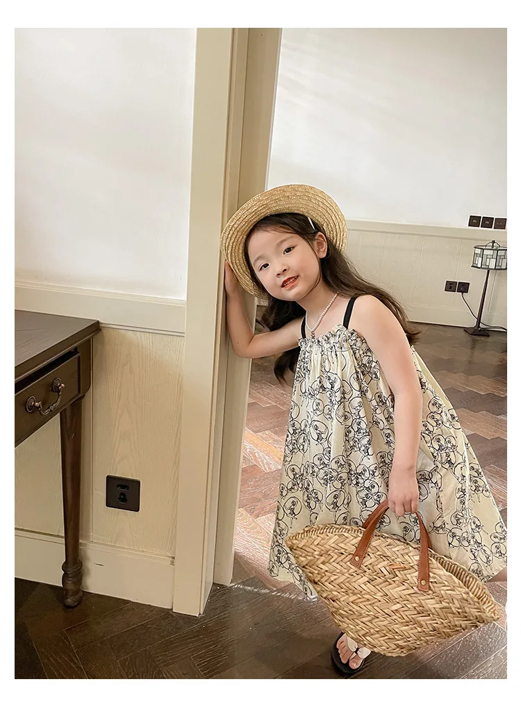 キッズ プリント キャミソール ビーチ サマードレス ワンピース ベージュ ガールズ【mh0002096】