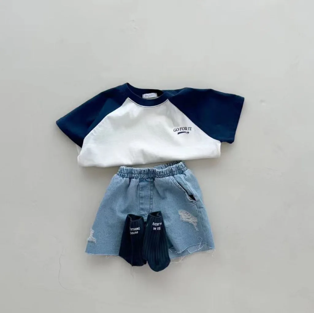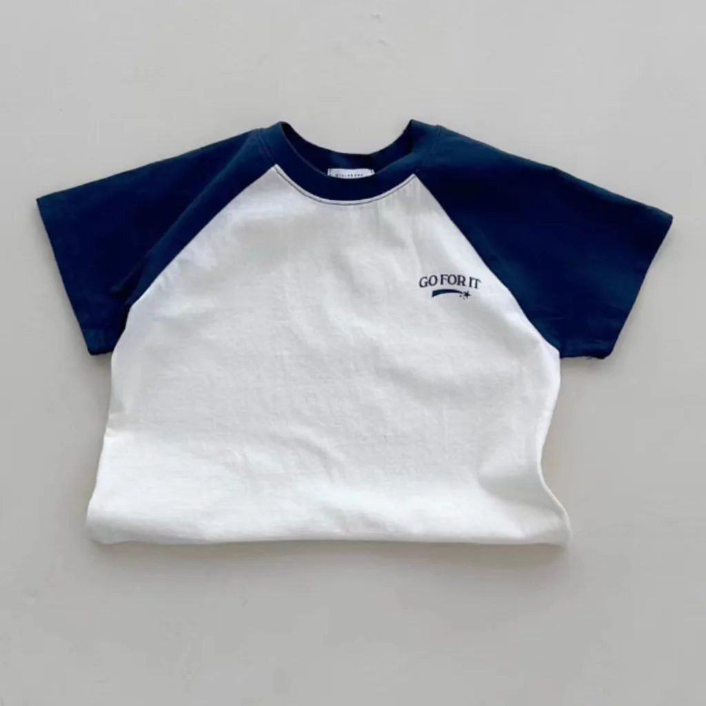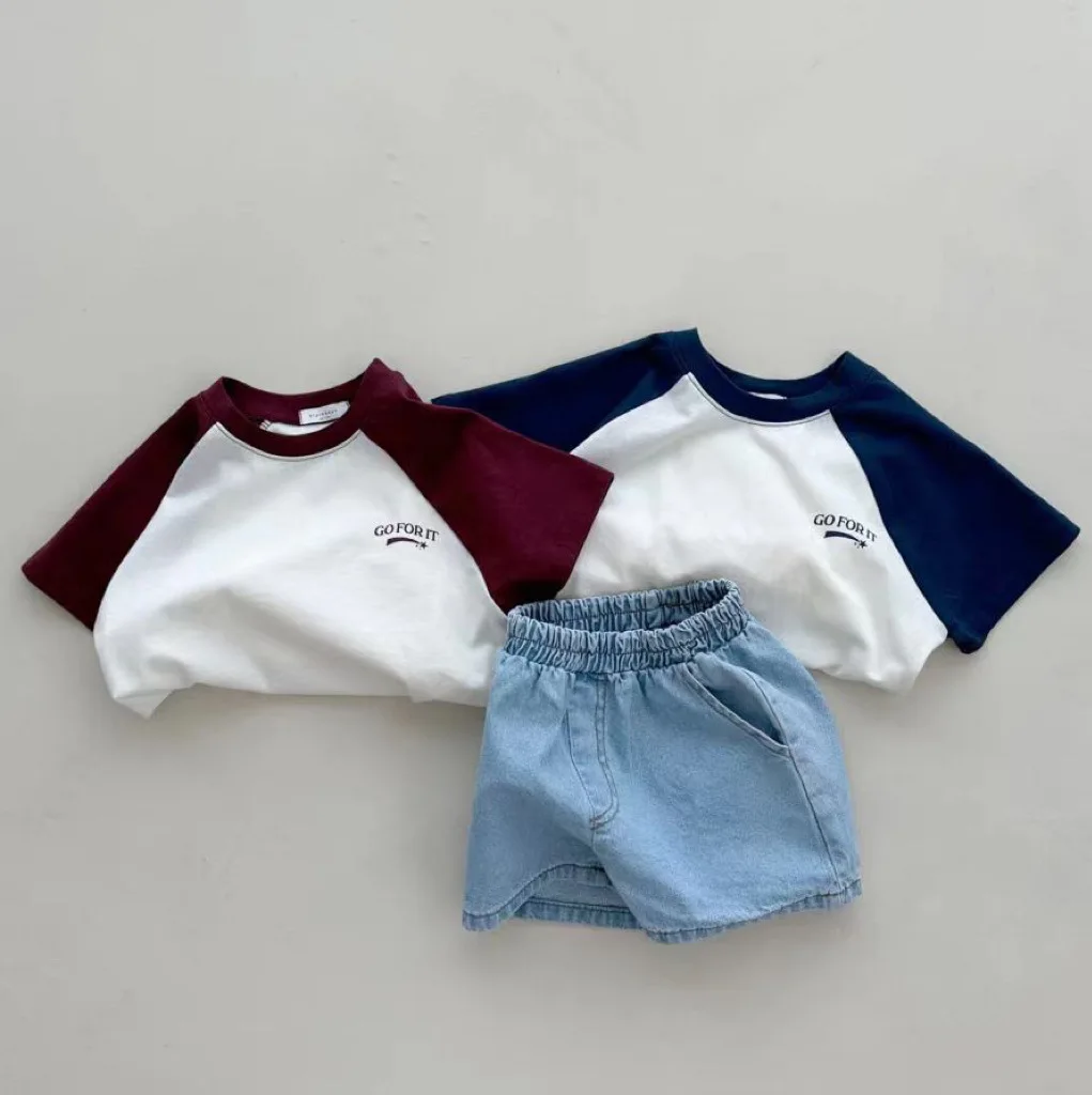 ベビートップス 半袖パッチワークTシャツ ラグラン レターロゴプリント 2カラー【mh0005470】
