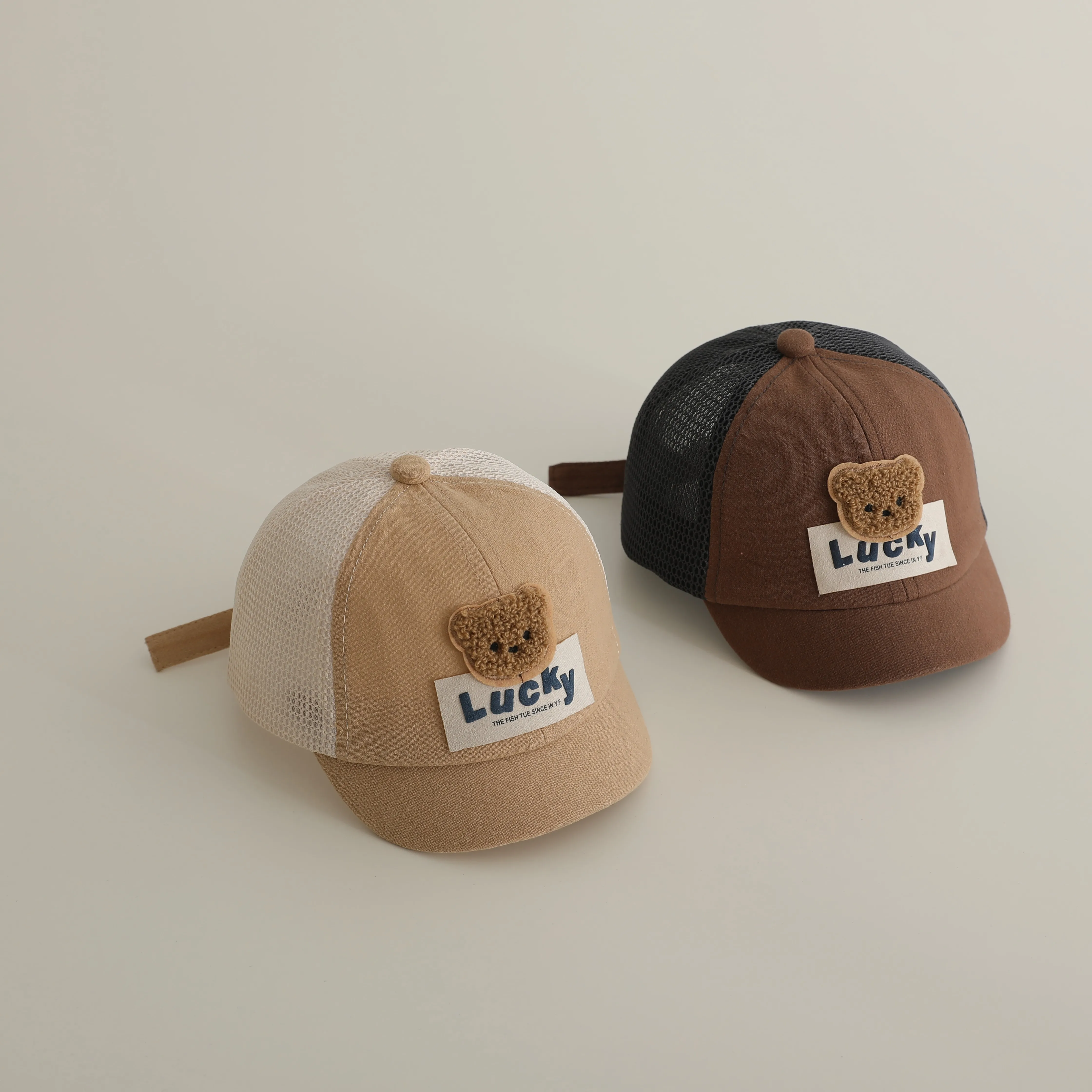ベビー帽子 メッシュキャップ 野球帽 ベアくまワッペン サマーハット【mh0005596】